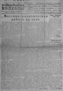 / -г.-*!» f Ч / П р о л ет а р и и всех, стран соединяйтесь; в д ш и ж!&&é asga« . . . . м . - е - . - ""Íí 3$Г<?>1 $Л MSÖ Ъ01Ш*ь S& #?2L £Д;к $.*Л£Ъ V Орган С еверного F K В К П ( б ) и райсовета д - з п та те в трудящихся Новосибирской области Разъяснить широким кол х о зны м ' г’" ; мас сам величайшее значение предстоящего сева, повести и х в наступление за его у сп еш ное проведение—в этом состоит сейчас главная задача шеей массово-политической работы на селе. £ rW £ j ш щ * ® W m W W K i « k . . . w LÖ T A Í I T O J ^ í ^ 1 9 4 8 - - ^ . I № 27 (!@11 ) i i l e s a 1 6 s o n . М а с с о в о - п о л и т и ч е с к а я р а б о т а на с е л е сГеен!н ы м и ¿ ' . • и . ' 0 Б о л ь ш и е пер емены пр о и зо ш л и и н а ш е й деревне за последнее у омя . Н а основе и с т о р и ч е с к и х j р е ш е н и й февральского П л е н у м а л Ц К В К П ( б ) д о сти гн ут гл у б о к и й \ перелом в ра звитии сел ьско г о х о з я й с т в а . О кре п л и , набрались V н о в ы х сил к о л х о з ы , со вхо зы и qn М Т С . В ы р о с л и люди колхозной ^ д е р е в н и . Борьба за в ы п ол н ен ие реш е н и й П л е н у м а р а с ш и р и л а и х п о л и т и ч е с к и й к р у го з о р , подняла и х - и д е й н ы й у ровень . Они еще о тч е т л и ве е с т а л и сознава ть с вя з ь с в о и х интересов с общегосудар- ин т е ре с ам и , с в я з ь тр уд а с борьбой всего советского народа за к о м м у н и з м . “ В послевоенном под'ьеме н а ш е г о еельского х о з я й с т в а особенно я р к о отра зи ла сь р у к о в о д я щ а я , н а п р а в л я ю щ а я и мобилизующая •■оль п а р т и и Л е н и н а — Ста л ина . ТО¿ ^ п р и н и м а я ш и ро ко е н а с т у п - л е в е е за в ы с о к и й у р о ж а й , п а р т и я пр ежд е всего у к р е п и л а свои м е с т н ы е о р г а н и з а ц и и . О н и р а з в е р н у л и о гр о м н у ю организатор- с н у ю и поллтичеед „ •* рабсту ь м а с с а х . М е с т н ы е п а р т и й н ы е орг а н и з а ц и и гл уб о к о к всесторонне р а з ъ я с н я л и р е ш е н и я февральског о П л е н у м а , п о к а з ы в ал и н е т и и х в ы п о л н е н и я , р а з в я з ы в а л и т в о р ч ес кую и н и ц и а т и в у ма с с и н а ш р а в л я л и и х т р у д о в у ю энергию . М о б и л и з а ц и я ма с с на борьбу за о с ущ е с т в л е н и е р е ш е н и й па р т и и еще б о л ьш е у к р е п и л а м е с т ны е п а р т и й н ы е о р г а н и з а ц и и , об о г а ти ла и х н о в ы м о пы том п о л и т и ч е с кой работы в деревне. речь i что [ и н т е р е с а х и с о в е т с к о г о н и к о в и к о л х о з н и ц , идет о ж и з н е н н ы х к ол х о з н о го с т р о я г ос у д ар с т ва , об и н т е р е с а х всего нашего порода. - Т а к же , к а к во в р е м я войны самоотверженный т р у д па п о л я х был н у ж е н для з щ и т ы Р о д и ны и победы г ад в р а г о м , т а к т е п е р ь онн у ж е н для п р о ц в е т а н и я Р о д и н ы . " для с о х р а н е н и я и у п р о ч е н и я мира. К аж д ы и йен равно до Летку ющий тр а к т о р сейчас игр ае т не менее в а ж н у ю р о л ь ,4 чем и гр ал т а н к в военное вр е м я . В п и с ь м а х т о в а р и щ у С т а л и н у к о л х о з н и к и и к о л х о з н и ц ы , раб о т н и к и М Т С и совхозов демонс т р и р у ю т свое неукр отимое стр емление- ' к новым у с п е х а м в борьбе за у р о ж а й . О существление о б я з а т е л ь с т в , в з я т ы х й. соревновании, по з во л и т наш ему сельскому х о з я й с т в у в ы п о л н и т ь - и ие р е в ы - дюлн-ить п л а н т р е т ь е ф года п я т и л е т к и . Н о о бсуж дением ж п р и н я т и е м о б я з а т е л ь с т в не з а к а н ч и в а е т с я . а т о д ь к о Ц ^ '.п - .ъ а е тю я б д е т и плагг; СеГгиТбТ" не может г и одна п а р т и й н а я о р г а н и з а ц и я , ни один коыхп ц и с т и комсомолец на с е ле,Имен но , борьбой з а в ы п о л н е н и е о б я з а т е л ь с т в с