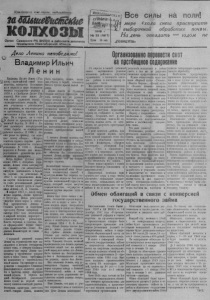 Пролетарии всею стран, соединяйтесь г заШишеЯитснке К О Л ХО ЗЫ О р га н С е в е р н о го Р К В К П ( б ) и райсовета деп у та тов | ^ 8на *0П‘ тр у д ящ и х с я Новосибирской обла сти — с уШугдт б - А.ЛРЁ 1948 г. № 3 3 (Ш 1 7 ) ^ С К А Л ® В се силы на поля! мере С х о д а снега п р и ст у п а т ь к I выборочной обработке почвы. Н а день опоздат ь — годом не догнать. Д е л о Л е н и н а н епоб едим о ! Владимир Ильич Л е н и н Владимир Ильич Ленин (Уль- ~ Т янов)—величайший гений чело- от в м ч е е а ч с е к и с о т г в п о а е , р г в о о о с г с н у о о д в в а а р те с м л т и ь в р а е — б с р о о л о ц д и ь и ш а л л е с и в я с и т з и в я н 1 н 8 и о 7 н в 0 с о к т г ) д . . ал в В С сю и сл м у б с ж и во р ен ск и ю е ю ( ж н и н ы з а н н р ь е од У у. л Л ь е С с н н о е и м н мн д а в д у и ц ч ж а а е с т т н и в и о л и в е , а т з л а не ч в т гв о о р н з е е р о в са о д т н л а о ю к ц р и а Л о т е н . б в н и и о р т ь е а . л р ь е с Н т с и в т о во м в ы т в и а ю л б с р я ы ьм л е ц , а со рс с н л к и и ан м в в сс п С ы р и л а . - Ленин не прекращал револю- ■. ционной борьбы. -В 1895 г. Ле- » нин организует петербургский «Союз борьбы за освобождение р в н а и а л н боч у е е г г х а о а з л е к т л з у а а сс « г а И р » а с . н к и В р ц а у » 1 , . 90 г 0 д « е И г с . о к с р н Л а о е » помогала строить партию рево- > дюционнымхарксистов, готовить *4*’революцию. В 1905 г. Ленин л р в ю е е д р ц с н и т у о в л е н с н н я н ы о м в го д Р в о и с р с ж у и е к ю н о и во е д д м л с . т я ва н р е е п в о о с л ж ю ен ц К и и о е я гд , 1 а Л 90 и е 5 е н р ин в г а . я с п н о о т в р е а у р с п э с е м к л а а и я гир п р р о у е р е в а т о за границу, где развертвыает кипучую деятельность в борьбе за партию, за революцию. В н 1 а 91 п 2 ар г т . ия но б п ол р ь ед ш л е о в ж и е к н о и в ю ст Л а е в н и и т во главе революционной работы в ни Р к К о а с а с Л и п е и р ни е в н л е а р е —1 н 9 о И 1 г . 7 о д В г р . . , уг С п а т о и а с л л и е с н о с а р в а . е т р жения царимз а, Ленин приехал в Петроград. Вождь революции уверенно повел народ к победе. Под руководством Ленина и Сталина рабочие и беднейшие крестьяне России совершили в октябер 1917 года величайишй в мировой истории переворот— социалистическую революцию. В л с о к ла о с с е ф ть о п р р м п а и е в р р и е т ов ш е а л л н ь а о ств к о п — С ер о С в в о о в е е е та т м С . о Б в Н е ы а т родных Коммиссаров во главе с Лениным. С огромной энергией взялся в Л и е д н ан ин ног з о а в стр ис ои то т р е и л и ьст г в о о с е у щ д е асрт н в е а нового типа, в котором хозяином я п н в о и л с т т я ы ь е в т в а ся л св с у а о м и тр х у с н и д а я л ро щ а д х и , хс Л я п е р н о у и б в у н е ж р в е д о а н с л их инициативу в строительстве н р о у в ж о е й ст ж в и е з с ни т . ов О а н ри п щ р е ов м од С ит та в ли с н од мы б бы оль и ше б в р и ат ст ст с в к а ую м п е о ж ли д т у ику нар д о р д у а ж ми нашей страны. С первых же дней Октябрьской революции Ленин ставитна первый план задачу защитысоветскойродины. Основным качестовм советских людей, говорил Ленин, должны н б и ы е ть ст х р р ах аб а ро в ст бо ь р , ь о б т е, ваг го а т , ов н н е о з с н т а ь д б и и н т Л ы ь е . с н я и п н рот в и м в ес в т р е агов со наш С е т й алин р ы ом с щ м с т о и и з в ю о д х а с , л я м и к о о т о т м с т т о в о о г с р я а у е л ч х я а у п ю п о о о т к д е С у ч о е ш с в и е т е х т в н о ск и у й ю в р т у р а р ко у го А д в в о р я д . Самоотверженнотрудиться,быть преданным народу и соблюдать ж ты е В л Л ез е ну ни ю о н б а д ст и с а с н о ц о в и е в п к тс л е к и о н м у у — не н в в а о е р т р од о з я у а . т в н