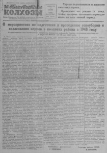 П р о л е т а р и и в с е х с т р а н, с о е д и н я й т е с ь/ о К ОЛХ ОЗ v О р г а н С е в е р н о г о Р К В К П ( б ) и р л й д о в э т » я ¡.- т р у д я щ и х с я Н о в о с и б и р с к о й о б л а с т и i к ( г т а т о в С У Б Б О Т А 12 И Ю Н Я 1 9 4 8 г № 4 7 ( 1 0 3 1 ) Цеяга 15 коз Хорошо подготовиться и провести за го т о в к у корм ов . . 1 Приложить все усилия к тому , чтобы ве-время заготовить корма для скота на весь зимний период. О мероприятиях п о!подготовке и 'проведению; сеноуборки силосования кормов в к о л х о з а х района в 1948 году П о с т а н о в л е н и е и с п о л н и т е л ь н о г о к о м и т е т а С е в е р н о г о р а й о н н о г о С о в е т а д е п у т а т о в т р у д я щ и х с я и б ю р о Р К В К 1 Ц 6 ) от 2 9 м а я 1948 г о д а И 1. Обязать отдел сельского хозяйства, директоров МТС, с к п о о р в н е е ч д т и с о е т в д ь а н те е л п е о п й л о н з о д с н к т е о ь е л ю х 1 оз 0 о п в о и д ю и го н т я с о е в л з к ь а у каждого колхоза к проведению м се о н в о . убо О рк б и еспе и чит с ь ило к со э в т а о н м и у я ср к о о к р у окончание ремонта всех конных сенокосилок и граблей, а также лобогреек с тем, чтобы машины были использованы бесперебойно па сенокошении и уборке трав т д в в и а л т я я м ь х а з с а в т г е о м р к т е с о о с к т в л н и к х о и о х й за М с х п и , Т р л С о о н м с а а и ы . з ш г О о л п т р е р о н г е в а н д л н о п е и с н р т з и и о и е я , н го ео , бх с о е д н и о м уб о о го роч к н о о л г и о чес и т н ва в ен р т у а ч р н я о - вил, граблей, отбойных ков, бабок, брусков и др. молот 2. п пе о ч тр и е т б ь с О о б з ю а я з в з а о а з т т ь . за п А п р н а е т с д о н с н е ы д е х н ат к е о ч л а я ст о е б й р е а с к й г с ж е о е н г о о у р с б у е о ч н р н о о ы у ч б х н о ы ро м к ч о н с м о , г а о б ш р и у н с и к а о м н в в , е а н и та т д р а р я к у уоорки и силосованияформой в сжатые сроки обязать отдел сельского хозяйства, директоров МТС и председателей сельских Советов и правления колхозов закончить полностью сеноуборку и закладку силоса до начала уборки хлебов, для чего: п к к о е о ч л ш а и х ) е о т н з ь е и в я с с р р п о а о с б к т с о а и ч в л и л д о х е о с н о и в 1 е а п 5 н л и а и я н в ю ов н к я к о а р ж с м ' е о д о н б о в е о м , с предусмотрев в них закрепление д с н а е и м н я и ок в и о т с о н з р в ы ы е х н х ья у м к у о и ч с а . о с в П тк л е о а с в н тес з т п а в р е о б н в р н е и ы д г е а х и сеяных трав, тазже полное и г н о с ы п х ол м ь и з а о н ш в в и а е н н н и , т е а с р о я в л , с о е м х ор т е р з с а о е н к н с , о п у о р б р у о т ч р н н о ы о ч х средств и живого тягла; б) в период с 15 по 20 июня п н м р о о в о с в т с е и с т т к е и о м л , хо в ч з т з о а о в и бы м к оп р з р а а о з г в в о е е т р р о к н в у к у е т г ь о к т о о р р в а б н н о и е т е ю у 2 п в о 0 к с и а и жю л д о н о с я м о ; ван к и о ю лх ^ о с з е е н н о е ко п ш оз е д в) обеспечить полное участие л в н а ы д с х к е е н к о с у о и б л л о х о р о с о з а ч н н и ы к в х о с в е , х раб м т о а р т к а у с х д и о м с и п а о л з с ь а о н к б о с г в б т р ы о в т у с , е п в н о п н б о о шы в д у и х и ю р в о и ко в и т х ор п о о р т с и т м е в е п н н е и у н т в н р ы и х х м о е з л р я к й а о и индивидуальную сдельщину; г) рекомендовать •колхозам выделять участки ^ п о к о с о в для уборки, работниками в т м о о р д и ы с и т е ва д п , р о у с г т и в о м ы р и п о о ж л к а н м о я л и е х , м о о к з й н л и ад к ж р о а а и в м б щ в и о о и , т т е к н к а о о в к ки олх в оз т е еч н ен е и м е ог в у с т его с д и н ст я ема п т р и п ч н е н собщественного животноводства; д) с- первых дней ¿еноуборки и силосования кормов обеспечить