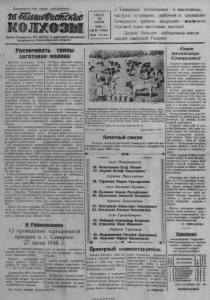 Пролетарии всех стран, соединяйтесь! 7аШыие6итШие КОЛХОЗЫ Орг*н Северного Р К ВКП(б) и райсовета д е п у т а т о в трудящихся Новосибирской области С Р Е Д А 23 ИЮНЯ 1948 Г. № 50 ( Ю Л ) Цена 15 кол. а Товарищ и колхозники и маслоделы, пастухи и доярки, рабочие и служ ащ и е С е в е р н о г о района д о с р о ч н о »ыполним годовой план заготовок молока! Дадим больше с и б и р ск о го масла нашей любимой Родине! Увеличивать темпы за го тово к молока Калининградская область. нм м о о и г л , о о Д ч р н о о о й г й к а а т п о р г к о о о м р с ы о к в шот л п а е р н о с н и о п з с в о т о д и д к и а о р т рм ся г В л а и н ч в с и е о а т з н в о ы х и в о р е а з е мн е р к к № а р о з у н а г ц 1 л 0 е в о н М с т у р д и т и е н о р н и ч о ь с н в . т ы а е нй р З н с а в т ы ы в м а п ч и а е с т к м ыо к я р р р с м е о у п а с п ро ол ву ови п н р о ев й ы м с е и с л яц 1 а 00 э 0 то к г и о л г о о г д р а ам с мре о д в н . и П й ла у н до с й да м ч о и лок м а ол н о а ка фур го аж су н д у а юрст к в о у перевыполняется. На снимке: на одном из пастбищ совхоза № 10 Фото А . Дятлова. П р есск лиш е Т А С С Почетный список Лучших молокосдатчиков С евер ного района вы полнивших годовой план молокопоставок говударству на 10-е июня 1948 года. село П отюканово 26. Колотовкин Crop Фомич 27. Окунев Иосиф Николаевич деревня Николаевна 28. Тарикова Мария Григорьевна село Больш ие -Кулики 29. Куликов Камин Михайлович 30. Кыштымов Алексей Петрович деревня Ал ек сеевн а 31. Плотников Калистрат Алексеевич 32. Питюнова Ульяна Николаевна село Гражданцево 33. Лебедев Александр Егорович 34. Агрызков Иван Иванович деревня Курчавая 35. Ведерникова Татьяна Даниловна 36. Наумова Мария Васильевна Примерный сливкоотделитель бот Т ае о т ва в рищ мо Ж ло и чн ха о р й ева про д м а ы вн ш о ле р н а торых обсуждалось обращение райкома партии и райисполкома. Молокосдатчики тут-же брали обязательства, чтобы Н итппо Досрочное выполнение плана заготовок молокагосударству и б в д о ы а т ч р н а а и б к о в о т с в к е и х ¡м м м а а с о л с л л о о а д к е — о л с ь д н п а о о т й ч ч е и т к п н о р а в о я м л ы р ш з а а ленности нашего района. тово С к це м л о ь л ю ока усил и ени м я а т с е л м а пов ра з й а к г о о м партии и райисполком обратились о н к н и о ц а а в м и с , е к м ра р б к а о б о ч л о и т х м н о и з к н и и ам с к л а з у м а ж г а о и щ то и в м к и о т л р е х а л о й ь з ных организаций сделать июнь решающим месяцем. За июнь выполнить пе меньше 35 центов годового плана, Созд п а р т о ь у н с и л я ови р я ай д о л н я ом доср п о л ч а н п о а го в з ы а п го о т л о н в е о к с т м т ь в о ю л а ок в в а ы зя п и т о ы в л ы н е и р т в а ь бо п т и с к в с и ь о м и м е ас к о л б т а о я . в з а С а р т и ч е е щ л с ь у Сталину. Большинство индивидуальных молокосдатчиков, в т ш о а о р ви н п т ы о е х д л д ь е ф н р ы е ж р х а м л , о и р р о г а а б б н р о и а т щ з н м а е и ц о н к л и и о о й е в чн р о а х й > з о а к р т г о о о о ма партии и райисполкома. с н д и а е 6 тч 6 с и 7 в к о о и и в х нд о з и б а в я в и з е а д р т у ш е а л и л ь л ь с и н т ы в х в в ы п м п е о о р л л в о н о к е й ов т в и а е о р л и в н ь л т н ы а о о с м р ь и у о ,с в й д е ф д а л е ч е и р к а ч м а и д а м л е м о а и л с о ь к и , к а ю о м л н м е х я о с о . т л з а о о м ч - в З н и . н о а - у т ч З д о и * а 20 дней июня МТФ сдали молока на 890 центн. больше чем за 20 дней мая. В дни усиленных темпов сдачи молока государству выполнили годовые планы и продолжают я с з в д н о е в а т а ; в а Б а , т и е ь д м н . о с К в г а о е р , р л х а Би п М а л з а а 