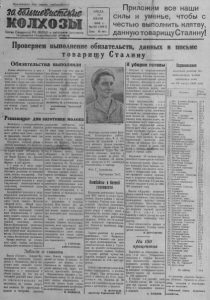 П ролетари и все х стран, соединяйтесь! шМтавистскЬе колхозы О р г * н Северного Р К В К П (б ) и райсовета депутатов трудящихся Новосибирской области СРЕДА 28 ИЮЛЯ 1048 г. № 6 0 ( 1 0 4 4 ) Цева 15 коп. • % у Приложим все наши силы и уменье, чтобы с ч е с т ь ю выполнить клятву, данную товарищу Сталину! Проверяем выполнение обязател ьств , данных в письме __________ т о в а р и щ у С т а л и н у Обязательства выполнили Взятое обязательство в срок и ка ч е с т в е н н о отремонтировать ю м б а И н ы мы в ы п о л н и л и с честью . М н о г о было затра ч е н о нами труда для того, чтобы досрочно и хорошо отремоптиро- в а т ь свои комбайны «Комм ун ар» , но этот т р у д и с к у п и т с я в о -вр е м я у б о р о чн ы х работ. Наши м аш и ны в работе не о т к а ж у т . Комбайны с наб ж ены соломокопнителями и зе рно ул ови телям и , следовательно м ы сможем у б р а т ь у р о ж а й в о время и без потерь. В т е к у щ е м год у весь наш народ обещал то варищ у Ста лину достойно встретит ь 31 -¡о годов- щ в п у В ел икой О к тя б р ь с кой социал истиче ской революции. Мы т а к ж е хотим вложить свой в кл а д , а поэтому берем обязательство н а с в о и х маш и на х у б р а т ь не менее к а к но 2 0 0 гектаров хлеба и с хорошим качеств ом. О С И П О В А М . и ( И Ш А Е В А О . , комб айн еры Т э р т а с с к о й М Т С . Решающие дни заготовки молока В к л ю ч а я с ь в социалистическое | д у альными сда т ч и к а м и , п а ш соревнование с Омской о б л а с т ь ю ' р а й о н продолжает отставать. На к о л х о зы и все т р у дя щ и е с я н а - 2 0 июля п л а н молокопоставок шего района дали слово —досроч- в ы п о л н е н па 0 8 процентов. Есть но в ы п о л н и т ь годовой п л а н еда ч и молока го судар ст ву . Передовые к о л х о з ы района с че ст ью выполнили эти обязательс т в а ,он и полностью р а ю ч к т а л щ - ь но сдаче молока государству . В ч и с ле и х т а к и е кол хо зы к а к : им. Карла М ар к са , им. Демьяна Бедного, «Тр удов ик» «Памя ть Кирова» и ряд д р у г и х . С 1 и ю н я по 1 июля р а й к о мом В К Н ( б ) и райисполкомом был объявлен ’ м е с я ч н и к по усилению сдачи молока го судар ст ву . Р а й ком и райисполком призвали в с е х руководителей колхозов и индив и д у а л ь н ы х мол окосдатчико в к досрочному в ы п о л н е н ию плана молокопоставок. Бол ьшинст во кол х о зов и и н д и в ид у ал ь ны х молокосдатчиков отк л и к н у л и с ь на этот п р и з ы в усилением сдачи молока. Кол хо зы «В е р н ы й п у т ь » «Общий тр у д » , им, Ворошилова, им. К а г а н о в и ч а и д р у ги е в ы п о л н и л и годовой план молокопоставо к и продолж а ю т сдавать молоко сверх п л а на. Первенство по выполнению за да ни я м е с я ч н и ка завоевал Больше- К у л и к о в с к и й маслозавод ( д и р е к т о р тов. Багров ), в ы пол ни в ш и й годовой план молокозагото- в о к на 8 8 , 8 процеп та .В торое место за н ял Федоровский маслозавод. Однако несмотря н а уси лен н у ю сдачу молока го с у дар с т ву п ередовыми к ол х о зам и и и нди ви - т а к и е кол хо зы , которые недопустимо з а т я н у л и сдачу молока. Колхоз им. Жданова, Ново-Трои ц к о г о сельсовета вы пол ни л план в с е й л й я д а я & З Д О п роцен тов к годовому п л а н у , колхоз «Оборона» — п а 12 процеп тов . Плохо р а бо таю т но за го тов ке мол о к а Н и ж н е -Назаровский маслозавод (ди ре ктор тов. Б у х т и я р о в ) , в ы пол ни вш ий п л а н з а го то в ки не м н о го больше 50 п роцеп тов . Основная п р и ч и н а т а к о г о п о зорного отставания за клю чае т ся в том, что р у ководители э ти х и д р у г и х о т с т а ю щ и х кол х о зо