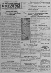 U sffJC sK f / i f - Ls r n u o U lt O L / 1 У О о Ш У Ц / ^ ¿ J ¡ ( ? 1 ¿ 0 ¿ ¿ U 0 П ролетарии всех I стран, соединяйтесь! шШаиеШткке К О Л Х О ЗЫ Орган Северного РК ВКП (б ) н райсовета депутатов трудящихся Новосибирской области СРЕДА 18 А В Г У С Т А 1848 г. № 66 (1050) Дева 15 ьсп. Хлебозаготовки/^боевая, главная задача партийных организаций деревньи / Ежедневный график сдачи хлеба государству— нерушимый закон д л я каждого колхоза Х л е б оз а го тов к и главная задача партийных организаций Состоявшийся 14 августа III пленум Северного райкома ВКП(б) заслушал доклад председателя райисполкома тов. Филичвина о хлебозаготовках из урожая 1948 года.— Самоотвержениым трудом к щ о е л н хозн х и о к р о о в ш и ий раб у о р чи о х жа М й Т , С — в ск ы а р з а а л тов. Филичкин.—Такой урожай дает полную возможность досрочно выполнить государственный илап хлебозаготовок и социалистические обязательства. Б докладе тов. Филич кин и за Н л, ов ч о т . о Тр к о о и л ц х к о о з г ы о П се о л т ь ю со к в а е н т . о в в ск е о щ г е о ука не включились по настоящему в уборку урожая, не организовали з н м а и о г я л о о т т о к ь в о б о л у к х и . оз с а П ры р « е в Е д а д с ю и е н д т ы а г т й р е а л ф п ь и ут к ь п х » р л а е в т б о л о в е . Макаров считает что рожь еще убирать рано, тогда как рожь давно поспела и вот-вот начнет осыпаться. Слабо развертывают молотьбу колхозы Остяцкого и Биазииского сельсоветов. Выращенный урожай это часть д л си е я л т . ь а Е . , с о л T и б ir м o о у л п б о а и д ти о р т а ь е т щ ь и е хл в в е ы о б - в в е б р з у е т д м и у я т с с п к н о о е р ш а а д я ив ч ы а е ст б ь ес у п р е о ч ж ны ая е л м ю о д ж и е , т то б б ол ы ь т ь пот В ер п я р н е а ниях по докладу выступи ло 9 человек. Выступившие то варищи подвергли резкой крити з к а е ци р й аб н о е ту о М бе Т с С пе и чив и ш х и п х арт с о ж р о г е а р н в и е- г в к р и о а т в ф ь , и т к к р о у м д х б о л а в е й о б н й о е с р д о п а в о ч , д и ъ т е н р м а а д к о к т о о л р в х и о о с з з т г н о л и в а , р д н н а е б н е о в и ч н я и ую х вз М я в т Т з ы С аи , х о м р о г п а с н р о и о ц в з и о е а р в л а к и т у с ь ти в ч п ы е о с п в к с о и е л х о з за а б н г я о ы з т а о т о в е б л к е ь а с х с п т . е в ч П и а н т р ь а то г у р л б г а а о с н н р и о к з с е а т ц и ь и с и х о л ц о е и б б а о ялистического соревнования между сельскими Советами, колхозами, бригадами и индивидуально комбайнерами, трактористами, ко сарями, жнецами, вязальщицами и ко в г о о зч п и о к л а о м ж и е з н е и р я н ,ч а т . об Д ы об р и е в з а у т л ь ь с т я а т ты а в н х е о о ж и с з к е т н и д н и н ы к ев а н с о о и й ре к в р о н а м у б б ю о а т щ й ы н и е м к р с а а я ж . д б о ы г К о л о и л к х о о и л з зодного колхоза должны знать как идет работа в другом колхозе. Все средства агитации и че п н р ы опа в ганд б ы орь д б о у лж з н а ы б в ы ы т п ь ол в н к е л н ю и е плана хлебозаготоюк. Пленум и ор о г п а е н р и а з т а и ц в и н й ого п р о а р й тр у о е к н б о а о в в о к а д л о с н тв к а р о е т т у н б п о о а р г р о тш ко а й ющ и и х е лебо д с н д и аче у й б . ор Н ки ас . тал К и ажд р ы е й день промедления грозят больши-' ми потерями ржи от осыпания, поэтому па уборке должны работать каждый комбайн, молотилка, жнейка,косари и жнецы серпами вручную весь световой день. Работать так как Клавдия Ц1и- менпое включение комбайнов л р е у т к а о р в и а й» и , з сж ко и л н х а о ю за ща « я Нац с м ер е п н ом пр п о о в; о,38 га ржа при норме 6,15 га уборку урожая. За недостатки в и Ксения Белова из колхоза им. 