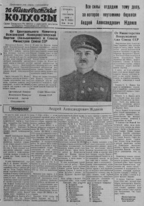 З А Щ О Л Ь Ш Е В И С Т С К И Е К О Л Х О З Ы " f 4 с е н т я б р я 1948 г о д а N 97 1 (1055) ’"Щ 'к ш г я а ш ттшйбшшшвшшашлывташтшшшл Медицинское заключение о болезни и смерти Андрея Александровича Жданова В течение многих лет тон. Жданов А . А . страдал болезнью высокого кровяного давления, с о т к с а л л ю е о р щ ж о и з н о х и м в с ш е о е р с е д о с ц б я е ен . т н я ы ж х ел с ы о м суд а о р в т , ер п и и о Н ни а т ч а а р л н ь о н г и о к Ле у ч п е р б а н в о ле - н с и а я Кремл п я роф П . Е г о р о в . Действительный Член Академии Медицинск Н и а х ук — проф. В. В и н о г р а д о в Член-Корреснондент АкаВ последние 1'оды у негобыли частые приступы груднйо жабы, а д ла е з ч а н о т о т е й м п а а п с р т о а м я л в ы и и ч . л а и О с ^ е ь р п ы т р к ь и щ п е п а н д ос и к л и о ед с о е в и р а з мепетшого сердца йра явлениях острого отека легких. демии Медицинских Наук — проф. В- В а с и л е н к о Кандидат Медицинс Н ки а х ук—- А Ф е д о р о в Заслужен^ А в р а ч А - РСФСР- I Ма йо о в Т р а ур ны й митинг в райцентре 1 сентября в Доме культуры райцентра состоялся траурный м м ят е и е н т л н и я о н й г К , с о п м м о е м с р в у т я н и щ ис е т н в и н ы ч ы д е а й с ю ко п щ й р е е г ж о п с д а я е р в т д р и е е - и о д н т я в щ С е о р и в ж х е е с т н я ск н о о и г г о о пл г б а о о м с р у е ц д н а а н р о за с г т о в д а е п , л а о т , р с и т а о р м т у о а Советской Социалистической Роди ны, члена Политбюро ЦК ВКП(б), секретаря ЦК ВКН(б), депутата Верховного Сокета СССР, генерал- нолковиика товарища Андр е я А л е к с а н д р о в и ч а Жд нова . С большим вниманием участ -; ники митинга слушали доклад секретаря РК ВКП(б) тоз. Ша | кинко о жизни и деятельности пламенного борца за дело партии с Л а е н н д и р н о а ви — ча Ст Ж ал д и а н н а. Андрея Алек 1. Трудящиеся р. центра, как и всего нашего Советского Союза,с прискорбием отмечают тяжелую утрату. Вся кипучая жизнь и п ре л я одот А в л о е р к н с а а я нд д р ея о т в е и л ч ь а ность Жда А н н о д в а д н у и ч ом и н т у е, со с в б л е о у т л ж с ь е к ш н и е и х в ю и л с ю тс д С к е о о й в й етс б к е о п з й а з р а т в и е Р т и о . Светлый образ А. А. Жданова бу о д н н е ы т о х в в л с в е ю о г к д д р е а й уг , ж е и Л щ т е ь а з й . З ? б п о с с л к е ь р о ш д -С е ц т а а с х п л л и м о н и ч с л е к л н о и - го Центрального' Комитета тии (большевиков), ’ парМ о л о д е ж ь артели „Тартасс" х о р о ш о помогает кол хо зу перевыполять норму выработки. бригада Щпшш заненчш убонру В нашем колхзое две полеводче-.. результате со. евж>ва°ия бригада кие бригады. Они соревнуются I гов. Кувакина первой закончила между собой за своевременную,в | у<,0[Жу , ерн№ых а К О Н ГаН. оез потерь, уборку У] 0ЖЗЯ. В колхоз „Красный в ас юг анец “ . • ГЖ Ш 7 > & :Ч'" I "Ъ* * * * С особой теплотой отзываются л к ы ол й хо т з р н у и д к » и , с Ч е е л б ь а х к о о за в р ск т о ел го и с « е В л е ь с м е- г.ета о комсомольски-молодежпой бригаде,прибывшей для оказания помощи в уборке урожая и хле- бовывозке, промартели «Тартасс». Две педели трудится бригада, п м о е д на р . ук В о с в е од ч ст л в е о н м ы э М то а й мак б о р в и а гад С ы е: Борисова Таня, Орлова Шура, Скоробогатова ИоляДНиейдмиллер А со л в ь е в с и т н но а, в Е ы ге п р ол ь ня А ю ле т кс п а о н р д у р че д н о н б ы ро е задания и стремятся ежедневно За короткий срок Мамаков С. вывез на пункт «Заготзерно», свыше СО центнеров добротного т зе а р ет на э , та не б д р о и н г у а с д т а ив и д по н т е е м ри и . но Р ч а ь б ю о . Отдыхают 4 — 5 часов к сутки не боль