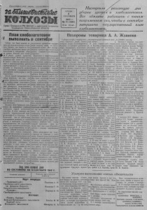 П р о л е т а р и и в се х с т р а н, с о е д и н я й т е с ь ! з & Ш т е £ й с Ш Ь е колхозы Орган С е в а р н о ю РК ВКП (б ) к райсовета депутатов трудящихся Новосибирской области С Р Е Д А 8 С Е Н Т ЯБ РЯ 1048 г. № 72 (1056) Цзва 15 кои. Н а ст у п и л и "решающие дни уборки у роят я и хлебозаготовок. В с е обязаны работать с таким напряжением сил, чтобы в сентябре завершить государственный план хлебозаготовок. е^ ж а в в в аа ст а я в ее е План хлебозаготовок в ы п о л н и т ь в сентябре f с д к ач и С и х е д й С л ч о я а в с е в т с о е в х н , е к т о ч л е б м х о о л з б е н о и е р к в ь о а б в а жн и з о а с й ел б ь ы з а с б к т и о р за е г у й о р ш т о о е ж в е о а к я в . ы и К по а з л ж а н д в е ы е н р й и ш е е д н п е и н л ь е ан з а а у т х б л я о ж е р . ки в уборке урожая приносит большие потери. Почти одна треть зерновых еще стоит на корпи». В п с м к а у р а н я с т и в о с я р т и з г а и а п н о и е в л з и а э ц т т и и о им к й т о д - е в м и л с а ь я с н к с о о а о с в ж р т а и г д я а о н г д и о р о з а л а б к ж т о о о т н м р а а быть подчинена своевременному з б а о в з е а И р г т о ш о т г е о и н в и ок ю п . ерв х о л й еб п оу я б т о и р д к н и евк и и х с л е е н - ^ тября показали, что там, где х о р о ш о поставлена политико-мас- "оная работасреди колхозников, L к г р д о о е е ко с п о а р р р а е т з в в и н е й о р н в н ы а у н е л ие и ор з с г а о ан ц и и вы з а а л п ц и о и с л и т н и е ч ш н е и и с е ;> обязательств, взятых в письме к 5 т в р о о о в ш с а и о р б и и р щ р а с у з к ъ о С я г с о т н ал ен и о о н б у к , о о б м р т а а ам щ В е К н П и г ( д е б е ) Н х о о к ¿^работникам сельского хозяйства, там успешо выполняются планы хлебозаготовок. сов К ет о а лхо п зы е Н вы ов п о о - л Т н р и о л и и цког г о ра с ф е и л к ь а ** хлебосдачи первой пятидневки о м с р е у г н н а т и н я с и б т з ы р ац я и . и т В е и р э р е т и е о т м о с р е и к п а р л о е ь в т н и а о н р й н ь ы па т к р о о в т м . Быковский. Они не обеспечили повседневного контроля за ходом. уборки и хлебосдачи. Секретарь] парторганизации тов. Быковский I слабо ведет массово-политическую р к ст а о в в б и о о д е т м у ит ср р э е а т д б и о о г то о к й о я л в а х и г о и л зн т о а с и ь т к о о р с в н е , и в п . ж С о е л н р е и д у е трудовой дисциплины в колхозах. К те о л л ь хо п з р и а м вл . К е о н м и и я нт т е ов р . на Т , р ( и п б р у е н д а с л ед о а в ), за первую пятидневку сентября только два раза участвовал в| хлебосдаче и сдал всего лишь т 8 п и о д л ц н н е и е н в л т к н у ер п о 9 я в 4 т , ид п п н р е е н и в т н п з о а е г д о р а а н . з и а и да Н п н е а ия в п ы я и к д о ат л е С х л о е ь з кр и е п т м р а а . р в ь л К е а н п г и а а р я н т о о т в р . и г ч а Б а н у и г з л а ( с п ц е р и в е и ) д . с т е. Быковский проходит мимо анти- > государственной практики этих председателей колхозов, которые п в о а д ют вся в к ы и в м о и зк п у ре х д л л е о б г а ами н з а ад з е а р г ж от и о в т р и и а т ч б е е о л с т к ь у и пы с й р су ы ш п в у и а н ю л к о т т к . кр и у О г м л н о о и л с о у с т т и и о с л ч т ь н е н у м ы ю а х агрегатов. Колхозные и территориальные парторганизации в решающие дни уборки и хлебозаготовок должны б н ы и т и ь бо б л о ь е ш вы ев м и и стс п к р о о й вод п н а и р к т а и м и и , л о и р гаиизаторами колхозных масс на борьбу за выполнение социали. стпческих обязательств, взятых в соревновании с Куибышеюким о р р а г й а о н н и о з м а . ци В и ся н р а а ш бо е т г а о ка р ж а д йо ой на па д р о т л - д ж а п ч а е— быт д ь оср п о о ч д н ч о и м н у ена в г ы ла п в о н л о н й ен з и а ю п ш л