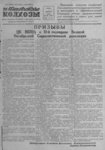 П р о л е т а р и и все х с т р а н, с о е д и н я йт е ев) , за Ш и К О Л Х О З Ы СРЕДА 3 Н О Я Б Р Я О р г а н С е в е р н о г о Р К В К П ( б ) и р а й с о в е т а д е п у т а т о в т р у д я щ и х с я Н о в о с и б и р с к о й обл асти 1Э48 г № 89 (1073) Цева 1 & гоп Труженики сельского х о з я й с т в а I Умножайте у с п е х и соци ал и ст и ч е ск о го з е м л е д е л и я и животноводства! С о з д а д и м обилие продовольствия д л я населения и съшья д л я легкой ыр промышленности\ (Из призывов Ц К В К П ( 1 ) к 31-ой годовщине Великой О к т яб р ь с к о й С о ци ал и с т ическ ой революции). изывы ЦК ВКП(б) О ктябрьской к 31-й годовщине Социалистической Великой революции 1. Да здравствует 31-я годовщина Великой Октябрь- . скоп Социалистической революции! 2. Братский привет народам, борющимся за победу демократии исоциализма! 3. Да здравствует дружбаи сотрудничество народов в мок и 4 р х . ат б и Т о и р р ! ь уд б я е щ п и р е от с и я в все ф х аш с и тр зм ан а ! — Р з а а зоб п л о ач б а е й ду те на а р г о р д е н сс о и й вн д ы е е л з ы амы де сл мо ы кр п ат о и д и жиг в ате б л о е р й ьбе ново з й а в п о ро йн чн ы ы ! й Сп м л и а р чи и в б а е й зо тс н е а ис- - ность народов! 5. Да здравствует- великий Советский Союз—надеж- . м ны ос й т 6 и . оп С н л а л о р т а о в д м а о и в В р ! а ороу и же б н е н з ы о м пас С н и о л с а т м и, Со с в в е о т б с о к д о ы го и Сою н за е , за от ви ст с о и яв к ш ой и м рев з о а л в ю о ц ев и а и н , ия сво В б е о л д и у ко и й н О е к з т а я в б ис рь им ск о о ст й ь С н о а ц р и од ал ов ис н ти а ч ш е е с й Р е о нн д 7 и ы н . е ы С ! и ов п е о ст л к и и т е и в ч о се и к н и ы е ! з Н на е н у и с я т , а о н с н ва оп и о в в а ы й ш те ай о т п е ы с т во В и ел в и о кий Отечественновйойны, совершенствуйте свое боевое мастерство,.крепите мощь Вооружненых Сил советского государства! 1 р *' ан 8 9 . я . юД С а щ л з и ав д е р а р ав у Г б ст е ер в ж у о и ю ям т на С с ш о о в е в е й т е с т к Р кс о о и г д о и е н п ы о С г ! р ою ан з и а чни и ки Г , ер зо оя рк м о С о о х ц иалистического труда—лучшим сынам и дочерям нашей великой Родины! 10. Рабочие и крестьяне, интеллигенция Советского С ни ою е з и а! р В а п зв ер ит ед ие к н н о а в р ы од м но п г о о беда х м о в зяй бо ст р в ь а б , е за за во д сс а т л а ь н н о е в й л ш е и й р п н о о и д д к ъ 1 о а е 1 м в м . н п а С м ш е а л р е т а е й е в д р а и о с в а р т ы л р а ь х б а н н о о ч ы п г и ! р о м ед и б п л ир а р я г а т о б и с о о т й с , н то д иц о ян с ам р и о я , чн и о и н ж к е в у н ы е л п ь р о т а л у м н р и ы и в ш н т и а е х план 3-его решающего года новой пятилетки! х12. Трудящиеся Советского Союза! Боритесьза стро жайш.ую экономию и сверхлпановые накопления во всех отрасляхнародного хозяйства! Снижайте себестоимость д и н и о т й у 1 е л л 3 п у ь . р ч н о ш о Р м с а а т ы б й ь ш о т ч е л т и е р к е н у а н д ч и о а е с с ! т р т и а в б ! о о , т П п н о р и в о ц ы д ы у ш , кц а и й н и т ж е и, ен д е о р п б ы о ы в ч ы у и ш т а е й у х т г н е л и я к п , и ро л у и у г з о ч в ш л о ь е используйте механизмы! Быстрее восстанавливайте и стройте новые шахты! Осваивайте опыт шахтеров, Героев Социалистического труда! Полностью обеспечим топливом потребности народного хозяйства! 14. Рабочие и работницы, инженерыи техники неф тяной промышленности! Выше темпы добычи и пере р н а и б я о ! тки Бо н ль ефш т е и! не Б ф ы те с п т р р од е у е к о т с о в в аи д ва л й я т н е а н р о о в д ы н е ого м х ес о т з о я р й ож ст д в е а ! 15. Рабоич е и работницы, инженеры и техники метал- г л б н е у ы л р й ь г н и п о о с ч т д е 