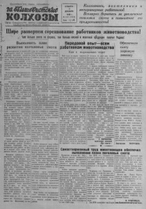 Пролетарии всех ■стран , соединяйтесь! шШтеШшнке КОЛХОЗЫ Орган Северного Р К ВКП(б) и райсовета депутатов трудящихся. Новосибирской области К ол х о зн и ки у з о о т е х н и к и и ветеринарны е работники\ В с е м е р н о боритесь з а у в е л и ч е н и е поголовья скота и повыш ени е его п ро дукт ивн о ст и I СУББОТА 11 Д Е К А Б Р Я 1 9 4 8 г . Л 100 (1081) Цена 15 коИ. Шире развернем соревнование работников животноводства! V Чей больше скота на ферма:, тем больше мясной и молочной продукции получит Родина! Выполнить план развития поголовья скота Передовой опыт— всем ; работникам животноводства Обеспечили скоту оне Ж яв и л в я т е о т н с о я вод о с д т н в о о й в из наш в е е л зущ ра и й х отраслей сельского хозяйства. м л Э х т о о а о з х ч о , н н в й т . о аи е б Ч п о м е р л м б о ее д ол у б ь к д о ц ш о л х и е ь о и ш д е м н п я с а о с к я л н о у о т ч ч й а а и с т н т ь а н и к ф а о ш е м л р а любимая Родина, тем выше буо д з е н т П и о к с б о л л в е а . в г о о е с н ос н т ы о м яни п е ят в и с л е е х тним ко п л л х а о ном и решениями февральского Пленума ЦК ВКП(б) ставилась „з в а и д т а и ч е а —О : б о е б сп щ е е ч с и тв т е ь н д в а о л г ь о ней ж ш и е в е от р н а о з водствав колхозах рсех районов и на этой осноев уже к концу 1948 года превзойти довоенный у г р а о т в о е г н о ь ск п о ог т о а л , овь о я ве к ц р и упно к г о о з р и ок концу 1949 года—довоенный уровень поголовья свиней. с г я о Р п р е о о ш л ст н аю а ое п щ с о о г и о х м л р о а в н ь у е я с н л и с о к е в о и т м е а м ол я о б в д ы л н я с я т е к р т а о . Ряд колхозов нашего района с п к ок ой азываю з т аб п от р ы имер о бол в ь ы ш п е о в л и н с е т н ии плана воспроизводства скота на т ф к т е е о е л л р в и я м до и а с х п м тв . р . о ав м К К л а о е л р н о л хо и п а з ы я н т М и н к а о и г р о кса с , е п л р п ь е х д од о се з д а р р а у тов. Иодряд- ч в и а, кова доб и ил з и а с в ь . МТ п Ф ерев т ы о п в о . л Е н г е о н р и о я плана поголовья по всем видма с л в к и и о с т т и а ь я . в п Х о в о г ы р о о п л ш о о л в и н ь х е я нии у с с к п о е п т х а л о а в на ч д л р о е а н б з и ы колхоза им. Ворошилова. Сегодня публикуется статья ш об их оп т ы е т л е ятн р и аб ц оты рай о о д н н а ой У из сти л н у ь ч и Егоровны Борисовой. Она, за р п м а е я с т т И в и и с л л п к а е о о т л л и б к х о о й о л м з ь с е р ш о е « к р Л ай р у д о а ч в б н у о н т х о ы с с г в о о е т т н а а » те ф л е в я р ы т . Совета д р р е я о п с у т т о е а к т с у о о щ в с е то го я т н р и у г и д од ящ а ж и о и х в б с о с я т уд н и о 8 л во д д е с к в т а о в б п а в колхозах <Луч света», р н и о ж г с о ка и я им к . ом Т м и у м н о а ш », енк и о м . . Б К у о д л « е П хо н а з «Луч света» председатель тов. Лушов), по крупному рогатому скоту годовой план выполнил на 94,6 проц., но овцам на 92,6 п с м о р у в о н ) н а , » ., пл к ( а п о н р л е х в д о о с с з е п д р а о « т и П е з л а в ь р о и д т ж с о т с в в к . а ая к Т р а к у р о п м а ного рогатого скота выполнил на 81,9 проц., но овцам на 53,5 проц; колхоз ш га е н н ) к , о п ( л п а р н едс р е а д з а в т и е т л и ь я им т п . о о в г . ол Т К о и о в м в ь о я - к п р о у лн пн ил ог л о ишь ро н г а атого 67,5 ско п та роц в ., ыа к д о а л те х л о ь з и т м ов . . Бу Е д в е д н о п к о и г м о ов), (п д р о ед с с и е х пор не организовал свиноферму. Б перечисленных колхозах все н т е о а щ г ц е о и П и р в н и е ы и ч п и в о з н ы л а а п н к о е у л н п н и а н е я е н с у К д ко п о л т л а в а а л н . н е а т в ко ор н р и т а т р з е в а л и к ь тия поголовья скота в ряде колхозов объясняется тем, что председате