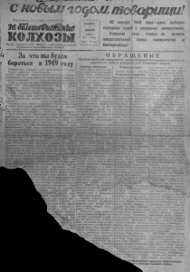 П р о л е т а р и и всех стран соединяйтесь! шШт&испйкие Щ Ш Л 2Ы О рган Северного Р К В К П ( б ) и райсовета депутатов трудящихся Новосибирской области I СУББОТА i 1 ЯНВАРЯ 1048 г. I Л 1 ( 1 0 8 9 ) ? Д а л а 1 5 к с п . 39 января 1849 г о д а— д е н ь выборов народных судей и народных заседателей , Отдадим свои голоса за лу чш и х представителей блока к о м м у н и с т о в и беспартийных! т а м м и i - боро З а ч то мы будем ться в 1949 году ■ЧР С Новым годом, тов арищ и ! С к о л ь ко радостных ч у в с т в , с кол ь ко неугасимой бодрости вкладывается в это слова новогодн е го поздравления! А ведь до О к тябрьс кой революц и и 1 9 1 7 года , миллионы т р у д я щ и х с я царской России встречали Новый г о д с тревогой и стра хом : что несет о н? Н ищ е т у , безработицу, новое горе 7 Ушли в прошлое эти тяжелые времена. Со ве рш ен но иначе обстоит де- , ло сейчас , к о г д а к а ж д ы й новый * аб|)Д п риносит новые радости, ' .ш вые победы на трудовом фронте. Нот и сегодня, наша страна подводит и т о г и м и н у в ш е го года. Мы в 1948 году добились з н а ч и тельных у с п е х о в . ! ) новом 1 9 4 9 г о ду надо работать еще лучш е,еще производительнее! Т а к о й вывод делают т р уд я щ и е с я н аш е го ' р а й - о ш п на меч« н>т слые ьщяьчщд,- и ы е : п л а н ы за что будут .бороты- си в 4 9 4 9 г о д у . ' Работники животноводства обязались обеспечить в 1 9 4 9 году у в е л и ч е н и е общес твенного п о головья с кота в колх о зах не менее, чем на 2 0 процентов, в том числе: коров на 38 п р о ц е н тов. овец па 23 , свиней на 9 4 , лошадей на 18 процентов. Довнести в 1 9 4 9 х о д у средний удой молока на к а ж д у ю корову в колх оз а х не менее литров, н а ч н е м на одну к и л о г р а м м , на к а ж - L ' “ к а к 72 15 я г - 1СЯТ. зTi час шить ной промышленнос ти в э л е к т р о э н е р г и и . Намечае тся большее строительство т и п о в ы х жилках дом ов ,кул ь т у р н о -б ы то вы х помещений,з ернос у ш и л о к , с к о т н ы х дворов, к у з н и ц , к и р п и ч н ы х завод'): и д р у г и х с о оружений. Р а бо тн ики к у л и у р п о - п р о с в е - т и г е л ь н ы х уч р еж ден ий , под р у ководством п а р т и й н ы х о р г а н и заций в 1 9 4 9 году должны до би ться повыш ен и я идей но -по ли т и ч е с к о г о уровня '‘т р у д я щ и х с я и удовлетворения л х р а с т ущ и х к у л ь т у р н ы х запросов. Третий год послевоенной п я т и л е т ки принес нашей Родине большие победы.В четвертом г о ду п я т и л е т к и эти победы долж н ы оы ть ум ножены . Великие преимущества советс кого строя от кры в аю т широки > возможности, а советские люди в повоедвев- Ш Ш р а б о т е п р е т - , ь . ' н п т . э т и Д О З - М О Ж П О С Т И ,В де ! Щ Щ Г ГЩ 1 , Щ К « Г Ь . О г л я н е м с я " на Прожитое ' и добытое в 1 9 4 8 году. Борьба народа, народный труд припекли свои обильные плоды. Л и ш е н и я и ж е р т в ы , понесенные со ве тс ки ми людьми не пропали даром. У ж е позади остались •послевоенные ; т-рудигсТЙ; а щтступаюшпй год обещает мало новью, еще большие у с п е х и . Впереди немало н ереш е нны х задач ,но т а к о г о у ж склада бо льшевики : поработав хорошо с е годня , стре м ят ся еще л у ч ш е работать завтра. Ясность цели, твердость х а р а к тера, настойчивости, умевье преодолевать все и всяческие- п р е п я т с т в и я , бодрость, уверенность, прямота и благородство, советс к и й патриотизм и социалистичес ка я сознательность — вот шшечательные к а ч е с т в 1!, воспи танные п а р т и е й в народе. Эти 1 .честна залог успехов в 1949 надеждой и упованием всё явое человечество обраща- и взоры к Советскому Со- знаменосц