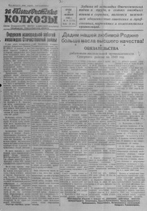 Пролетарии все х стран, соединяйтесь! заШ теЯисЯа&е колхозы О р г а н С е в е р н о г о Р К В К Г 1 ( б ) и р а й с о в е т а д е п у т а т о в т р у д я щ и х с я Н о в о с и б и р с к о й о б л а с т и Окружим всенародной заобтой инвалидов Отчесетевной войны СРЕДА 16 Ф Е В Р А Л Я 1 9 4 9 г . & 14 (1102) Цена 15 б о н. Забота о б инвалидах Отечественной войны и труда, о сем ья х п о гибш и х воинов и сиротах, является важней- шей обязанностью советских и пр оф с о ю з н ы х, партийных и к о м с ом о л ь с к и х организаций. В ряде задач, поставленных решением февральского Пленума в Ц и К тию ВЕН с (б ел ) ьск п о о го подъ х е о м зя у йст п ва раз и ж у и р л м е е у н т о ч и а п ш ю я ом т е о н т щ р и и с у ю и к д л я ю м щ ч к а и и т о х е т л с р е х я л и о , ь а з н л н к ь о и а н к с о о с г в ы б о , о п л р п ь и о ш в о л з о б о а е значение. Они организуются в колхозах с расчетом оказания необходимой помощи инвалидам Отечественной войны, семьям п ст о а г р и е П б л ш р ы а и м к х ти в ч к о е о и с л к н х о и о в з е , ни си ка р м м о е т р ма оп и р п и р ят е и я районного отдела социального обеспечения, по обслуживанию инвалидов Отечественной войны и труда, .семей н г х а о о н в з и н , з и а с к ц и о и р в ю , от п и р к е а д п с у с р с е м с а т п т в а о з р р г а и е и и в л б м а ы ш ю о х и п т о х мо к в о щ о о р и л и колхозников во всех колхозах а р л а ь й н о ы на х , б у а к з р . еп З л а ен э и т е у и р х або м т а у тер п и о - наетошцему взялись колхозники сельхозартели им. 6-го съезда Советов, председатель колхоза т Л т с о к е о в и с л . е х ь в к А в а г К з с р н с . ы ы о з с И о к . в ов в О з 1 а н А 0 и и 2 . м 0 с о И о п б р о . р у , м а б о л л щ и п е р й и е . д ч К с т л е о о е д л в н а . х ч г о а и з м с н л и и и к л 4 и и 40 о 2 т 7 р с у п в б у о л д и е о х й в . т з р е у р д н о а дн и ей де о н т ь Колхозники колхоза «Верный д п с з я ы у о ч т в дн н ь а о е е » й т , к о 1 а п т 8 с о ч с м и а п с о у л щ д и ь в о л з в и х а л и е м х о б т л о е о п м б о с м а в д . о о е щ и т Е х и я ж м т е о -с м р к и у а е - ротам Лушовым. пом О о р щ г и аниз в ован к а олхо к з а е сса «Б в о з р аи ьб м а о » Потюкановского сельсовета, где п м р о е щ дс и ед т а о т в е . ле Д м ор к о а ш сс е ы нко. вз В аимо э п т о о м колхозе собрано вступительных х в о зн зн ос и о к в ам 4 и 42 за ру сч б е л т яи о тр тч у и д с о л д е н н е о й кол 1 8 пудов хлеба и 154 руб. деньгами. к н о и л з х а Н о ц е з и е и пло к « х а В о с т с о ы р о а т я н в е за сл и и м с п о ь я п т о к и м л ощ ет о и к р а г в » а , Верх-Красноярского сельсовета. Т п а и м тел с ь о н б ы ра х ли в н чл ос е о н в ск 5 и 0 х 0 и ру в б с л т е у й и значительное количество зерна. Но не везде серьезно л б и аз сь по к мо с щ о и зд и на н и в ю али м да а м тер в и о а й л н ь о ы н тн ы е и х струда, семьям погибших воинов с и ких сир С о о т в а е м т . ов П — ре Ф д е се д д о а р т о е в л с и кого с , е Н л о ь - во-Елизаровского и Мало-Кара- гаевского не выполнили решения райисполкома о составлении планов практических мероприя т м и я й ну п ты о м оказан в и ы ю ш п е, омощ ка и т , егор уп и о я м людей. До сих пор колхозные з к о а в с а с н ы ы. вза Н и е м к о о п т о о м р о ы щ е и н с е ел о ьс р о г в а е н т и ы составили планы формально, без о р б а с н у С и ж е я к д х р ен ет и а к й р о и лх и о п х з а н р и н т к а и о й в н . ы об х щ о и р х га с н о и б заций Биазинского, Остяцкого, г Ч и ув х аш се и л н ь с с к о о в г е о то и в, нек н о е тор вы ых пол д н р ил уи з т у а и к ц й а и з и а д н л и я п й р с а о к Р з т К д и а ч н е В и с К к я В и ( х к б а ) сс о м б ер в о о з р