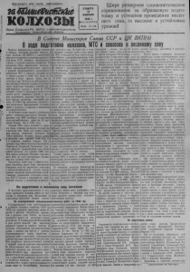 П р о л е т а р и и всех ст ран, соединяйтесь'. заШ ишШ стс&е К О Л Х О ЗЫ О р г а н С е в е р н о г о Р К ВКП(б) и р а й с о в е т а д е п у т а т о в ______ ^ т £ у д я щ и х ^ ^ о б л а с т и СУББОТА 19 ФЕВРАЛЯ 1949 г . №15 16(1103-04) Цена 15 ксп. Ш и р е развернем социалистическое т с н о о е р в го е к в у н с о и е в в а у а н с , и п з е е а ш з н в а ы ое со о п к б р и р о е а в з е ц и д о е в у н у с и т ю е ой п в ч о и е д с в е г ы н о е урожаи! В С овет е Министров Сою О ходе подготовки колхозов, МТС и совхозов к весененму севу Колхозы, машинно-тракторные станции с и ко с г о о вх П о л зы ен , ум вы а п Ц ол К ня В я КП р ( е б ш ) ен и ие пят ф и е л в е р т а н л и ь В планвосстановления и развития нарондого хозя йства СССР, достигли значительных успехов в подъеме сельского хозяйства. В р в е а з н у и л я ьта м т а е те б р о и л а е л е ьн п о- р т а е в х и н л и ь ч н е о с г к о их исп ср ол ед ь с з т о в и высокой организованносткиолхозников, рабонтиков МТС и совхозов весеипий сев к и он у ч б е о н р ы ка в ур б о о ж л а ее я в сж 1 а 9 т 4 ы 8 е го ср ду ок б и ы , ли че з м ав п н р ы о е ш м л е ы т е ео г р о о д л ы о . ги Н ч е е с с м к о и т е р у я сл п о а ви н я еб н л а а б г о о л п ь р ш ия е т й ж ча ай сти зер те н р о р в и ы т х ор к и у и л П ьт о у в р олж в ья ц , е в л а ом лов п о о й у С р С о С Р составил свыше 7 мил иардовпудов и без м н н я а о я л го ог у г о р ек о д ж т о а а с р й т а и н г ос п т д р ь е ов в о з ы е ен с р и н н л о о а г в о ых у д р о о к в в у о н л е я ь н , т н у ы а р й с с р у е о р д о д в н е о н е ь. уве В ли 1 ч 9 е 4 н 8 ие го о д б у щ д е о с с т т в и е г н н н у о т г о о зн п а о ч г и ол т о е в л ь ь я скота в колхозах и совхозах и повышение егопродуктивности. За последнее время намного улучшилась работа машинно-тракторных станций. В прошлом году МТС произвели в колхозах с ц е е л н ь О т с а с к е о н б х ь о о ю л зя ьш й 1 с 9 е т , 4 в 8 е ч н е н г м о ы д х а в в 1 р 9 к а 4 о б л 7 о х т о г з н о а д х а у. 2 и 3 со п в р х о о зах были успешно проведеныозимый сев в вы в х спа к ш ул к ь а ту з р яби. к П ол л х а о н за с м е и ва о в з ы и п м о ы л х не з н ерно н а 106,6 процента. Посеяно озимых хлебов в колхозах под урожай 1949 года на 2.8 миллиона гектаров больше, чем в прошолмгоду. ОднаккоолхозыГорьковской, с Т к а о м й бо о вс б к л о са й т , е Р й яз н а е н д с о к в о ы й п , ол См н о ил л и ен п ск л о а й н , п Т о у се л в ь а озимой пшеницы под урожай 1949 год.а н П я о т д о я з р я о б в и ые па кул 1 ь 4 т , у 6 ры мл т н е .г к е у к щ т е а г р о ов го б д о а л п ьш од е , чем под урожай 1948 года. б с о ко л г Р ь о ш ез и у х м л оз и ь я т , й а е т с с т ы л в и а 1 б 9 м ы 4 о 8 г п л а г р и о т б д и ы а й т н в ь ые о з , н бл а с ч о ас и в т е т и т ел с с к ь е и н л е о ь и сельскохозяйственные органы больше у с зо т д в е в е , л н М ил но Т и м С у вн и у и с к м о р а е в н п х и л о я е з н о о и р ю ви га о н о к и т а з з с а т а ц н а и ю и о ю щ н и н и х о м -х к о о з н л я х е й о о б ходимой помощи в подготовке и проведел з н о у и в и , в М е в с Т е ес н С е н н и и н х е с г о п в о о х с о л е з е в о в а в ы . х н В е р б а 1 ы б 9 л о 4 т о 8 о в г т о р р д е я у м д о е к н к т о н и л а р х ч о о а в ск а о но хо б зя ол й ь с ш тв о е е нн к ы ол х и м че а с ш т и в н од , ра а кт т о а р к о ж в е , с п е л ль о хо были подготовлыен семена, живое тягло и другие материально-технические средства, б ч х о о то з т яй и п с р т и с в в н е е н и л н о ж ы к е х н з и а к ю т у я л у г ь р и т о в ж у а р н а и й в ю но э с п т т о и и с х ев к н с о ы е л л х х ь о с р з к а а о х и совхозах. с л т яе ич т В с ес я 1 ко 9 д г 1 а о 9 ль с г ен т о р 
