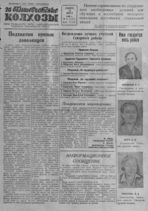 П р о л е т а р и и всех с т р а н, соединяйтесь! заШбше&иапскЬе КОЛХОЗЫ О р г а н С е в е р н о г о Р К В К П ( б ) и р а й с о в е т а д е п у т а т о в т р у д я щ и х с я Н о в о с и б и р с к о й о б л а с т и С У ББО ТА 19 М А Р Т А 1 9 4 9 г . № 24 (1 112) Цена 15 коп. Начнем соревнование по созданию всех необходимых условий для обучения и воспитания молодого поколения, достойного сталинской эпохи! (И з обращения трудящихся Д о вол ен ск о го района но беем трудящимся Новосибирской области). Подхватим призыв доволенцев В начале марта «Советская Сибирь» опубликовала обращение рабочих, колхозников, интеллигенции, советскпх, партийных, комсомольских п профсоюзных организаций Доволенского района ко всем трудящимся Новосибирской области, об организации" социалистического соревнования на лучшую всенародную помощь школе'. Большевистская партия и Советское правительство уделяют исключительное внимание развитию советской школы, работе советского учителя. Глубоко принципиальные вопросы всей политика народного просвещения в социалистическом государстве и в тоже время конкретные практические меры, необходимые для успешного осуществления этой политики, мельчайшие детали деятельности школы и органов народного образования—все это неизменно находится в поле зрения партии, Центрального Комитета ВКЩб). Партия учит наши кадры пониманию того, какое огромное значение для дела строительства коммунизма имеют школа, качество обучения и воспитания учащейся молодежи. Эту мысль ярко выразил в одной из своих речей Сергей Миронович Киров сказав, что «вопрос о школе—это вопрос о нашем дальнейшем движении вперед». Замечательное, благородное начинание трудящихся Доволенского района свидетельствует, прежде всего, о силе и могуществе нашего государства, неиссякаемой творческой энергии советского народа. Организация подлинно народной заботы о нуждах школы, о создании всех условий советской школе и советскому учителю в нашей стране стало традицией. Вот почему призыв доволенцев, одобренный областным комитетом партии, должен быть подхвачен всеми рабочими, колхозниками, интеллигенцией, советскими, партийными, комсомольскими и профсоюзными организациями района, Областной комитет ВКЩб) обязал все горкомы и райкомы ВКП(б) обсудить это обращение на собраниях колхозников, рабочих и служащих предприятий и учреждений и развернуть социалистическое, соревнование между районами, сельсоветами,колхозами и предприятиями на лучшую подготовку школ к новому учебному году. Хороший почпе сделали колхозники сельхозартели им. Карла Маркса, Биазивского сельсовета. В 1948 году, 17 апреля они обратились ко всем колхозникам Северного района с призывом последовать их примеру, в проявлении общественной заботы о школах. Вызвав па социалистическое соревнование вое колхозы района па лучшую подготовку школ, бергульцы показали личный пример в этом деле. Они силами колхозпнш построили новое помещение школы и дали, этим, возможность в сентябре 1948 года начать занятия в светлых просторных комнатах пятого, шестого и седьмого классов. Колхозпики колхоза «Память Чкалова» посдедовалп примеру бергульцев и также к началу текущего учебного года построили новую начальную школу. Колхозники, учителя и учащиеся, с чувством благодарности отзываются о депутатах Верх-Красноярского сельсовета, которых тов. Пещер
