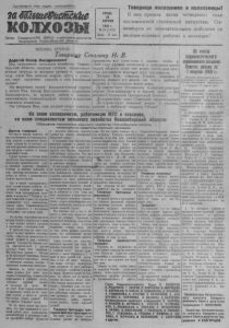 П р о л е т а р и и в се х с?пран , с о е д и н я й т е с ь ! заШбшеШтснЬе колхозы Орган Северного РК ВКП(б) и райсовета депутатов трудящихся Новосибирской области С Р Е Д А 2 0 А П Р Е Л Я 1 9 4 8 г . X 33 (1121) Цена 15 коп. Товарищи колхозники и колхо зницы ! К нам пришла весна четвертого года п н о ам сл е е н в у о е е м нн е о е й з с а т м а е л ч и а н т с е к л о ь й ным пя и ти п л о е б т е к д и а . ми О н з а весенне-полевых работах в к о л х о з а х ! М О С К В А , К Р Е М Л Ь Товарищу Сталину И • В. Дорогой Иосиф Виссарионович! в б е и н Мр н с ы ык , о е й п н е а о р г б е р л д а а о д с в ы т и и к , з и а п с о в е л ы л у с ь ч о с и к к в и о е г с о е у г р х о о о д ж з н я я а й и ст п в в р а ав п и Н р т о о е ш в л о л ь с о с и т м л г п о юр д Ми , у в ы , с е в т шо ! в л ё ы ё р м а с ж е В а р а е д м м е , чн н н о а а ш е ш е е й м с у па б в с о о и л жб ь о д ш ю е и , ви д н с р а т ш у с г к у о к й о и л х п у о а ч з р н и т ы т и е й и и лично Вам, Иосиф Виссарионович , искреннюю благодарность за великую заботу и помощь, оказываемую Новосибир ской области в подъёме сельского хозяйства. Мы обещаем Вам , наш родной отец и учитель, приложить все свои силы и знания, чтобы в 1949 году урожаи колхозных и совхозных полей нашей области стали ещё выше, чтобы наш опыт стал достоянием широких масс трудящихся. Желаем Вам , товарищ Сталин, з д о р о в ь я и многих, многих лет жизни на благо любимой Родины и трудящихся всего мира. Д а здравствует Всесоюзная Коммунистическая п н а и р Д н т а с и к з я о д - р С ( а б т в о а с л л т ь и в шн у с е е к т в и и н й к а о ш в Ц ) е ен и С т о р е в а ё л е т ь б н с о к ы е о й в е ой К п о р м а ш и в т т и а е т б т е . л — ьст Л в е о ! Д а здравствует великий вождь и ■учитель, родной и любимый товарищ Сталин! Ко всем колхозни кам , р а бо тни кам МТС и совхозов, ко всем специалистам сельского хозяйства Новосибирской о б л а с т и Обращение передовиков сельского хозяйства Новосибирской области награжденных правительственными наградами Д о р о г и * т о в а р и щ и ! Сегодня в жизцн каждого из п с ш а ок а с я , и п е од р у п а р и д о с о ж а с в а ть и ши н х и а т э о к т р о о ж л п е х и с о т с в ь зн о м . ы о, З х б а ол в п ь ы о л н я ы х е н н а а м г в р р а у д ч ы е — ны ор п д р е а н в а ите и льс м т е в д е а н л и Советского Союза. Трудно передать словами нашу сердечную благодарность родному Советскому правительству, отцу н учителю дорогому товарищу Сталину за великое внимание к н х р о а о з м б н а , о м г , п о р з о п с а р т о з ы и а м б з о во т к у д о с л т о х в о а з р . н а ы зв м ити х и ле к б о о л с л к у о ч й Г ен д с и е т е , ра в не в к ы в а и с к о д о к й а и но х ,ч к т а о п у б и р ы т о а ж л з а а и е с в т и и о ч н е а п ш н о а е л м й я и х Со и в л е м ю т е с ди д к а о л й н я а м с г т р и р а ? а ! ж н Т д е о а л л т ь а и к к с о ь в в ы о со р н д к а о е оценивается труд земледельца, только наша социалистическая Родина относится к колхозным хлеборобам, как родная мать. По случаю получения высоких наград хочется поделиться с вами в этом письме нашими мыслями и поговорить о весеннем севе. г с р л а и о т в щ ы о В ^ у й — С п с т р о у а о б р л ш р о и л а ж н о т у а м ь й н к г р а о и д е с п у в к д о м о и а ы т е х ь п х д к о о а л н л л я х а х и о ш т з б н о е о в о м а е у р ба од , ном к у арт г о о ф су е д л а я р ,л ст ь в н у а бол и ьше д х р л у е г их культур. Слово свое сдержали. Мы получили урожай с гектара до 24 центнеров пшеницы, свыше 500 центнеров картофеля, около 7 центнеров волокна, больше 7 центнеров семян ль