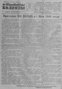 У ролетари и всех стран, о е д и н я ц т е с ы жттевисШМьЬ КОЛХОЗЫ Орган С еверного Р К ВКП (б ) и райсовета депутатов трудящихся Н о во сибир с кой области Труженики сельского х о з я й с т в а ! Умножайте у с п е х и социалистического земледелия и животноводства! Б о р и тесь за у спешное проведение весеннего сева и д р у г и х сельскохозяйст венны х р а б от ! Создадим обилие продовольствия для населения и сырья для легкой промышленности! __________________________ ( И з призывов Ц К В К П ( б ) к 1 М а я 1949 го да ) . ВТОРНИК 2 6 АПРЕЛЯ 1 9 4 9 г . №35 (11.23) Цена 15 е о п. Призывы Щ,К ВКП(б) к 1 Мая 1949 года 1. Да здравствует 1 Мая— день смотра боевых сил трудящихся мира, день братства народов всех стран! 2. Братский привет народам, борющимся за победу демократии и социализма! 3. Трудящиеся всех стран! Защита мира—дело всех ж н и ар г о а д те о л в ей ми н р о а в ! ой Разо в б о л й а н ч ы ай ! те О а б г ъ р е е д с и си н в яй н т ы е е п в л с а е ны силы по н д а борьбу за прочный мир и безопасность народов! 4. Дружба народов Советского Союза,Соединённых Штатов Америки н Англии является лучшей гарантией прочного мира. Да здравствует братский Союз народов Англии, Соединённых Штатов Америки и Советского Союза в их борьбе за мир! 5. Слава Вооруженным Силам Советского Союза, с честыо отстоявшим свою Родину в Великой Отечест- , венной войне! Воины Советской Армии! Бдительно ох- , раняйте завоёванный мир и созидательный шего народа! 6. Да здравствуют советские пограничники т , руд з н ор а к о охраняющие священные рубежи нашей Родины! % 7. Слава Героям Советского Союза и , ш ц е и й али Р с о т д и и ч н е ы ск ! ого Труда—лучшим сынам и д Г о е ч р е о р я я м м на С - о ( 8 . Рабочие, крестьяне и интеллигенция Советского л С н е о о т в ю к а з и н а ! и ! е За Ш за а н р о д е в о ы с р р й а о з ч в м н е о о р е щ ты н в ы в ы а й п й о т л п е н о е д н с ъ и о ё е м циа п н л о а и с р л с о т е д и в н о ч о е е г н с о к н о о х е й озяй п с с о я т р т в е и а в , материального благосостояния и культуры н.шего наро 1) д . а! Трудящиеся Советского Союза! Боритесь :;«* даль нойщий технический прогресс в проыышлекпг из транспорте, в сельскем хозяйстве.' Внедряйте новую технику, совершенствуйте технологию производства! Непрестанно повышайте производительность труда, — о го сно Ю в п у . о Р т а д р о а е л о б ь ч л н и е е н е й и ш я и е ! г р о аб с о н т и н ж и е ц н ы и , я инж це е н не н р а ы и тов т а е р х ы ник м и а . с ’Н со е в у о с - ташно улучшайте качество продукции! Выпускайте больше высококачественной продукции! Ш 11. Трудящиеся Советского Союза! Боритесь за строжайшую экономию и сверхплановые накопления во всех отраслях народного хозяйства! Улучшайте и м с о п с о 1 т л ь 2 ь . з п ов р Р а о а н д б и у о е к ч ц и о и е б и о ! и рот р н а ы б х от .с н р и е ц д ы ст , в, ин с ж ни ен ж е а р й ы те и себе т с е т х о н и и ки угольной промышленности! Повышайте добычу угля, л в т а у е й ч р т ш о е в е — и и Г с е с п р т о о р л е о ь в й зу т й е т С е н о о ц м в и ы е а х л е а и н с ш и т з и а м ч х е ы т с ы ! ко , г Б о о ы с с в т а р и Т е в р е а у й д т а е ! во о с П с п т ы о а л т н н а о ш в с л а ть и х ю обеспечим потребности народного хозяйства в топливе! 13. р т а я б н о о т й ки про н м е Р ы ф а ш б т о и л ч ! е и н е Б н ы о и с с т т и р р ! е а е б В о о ы т с н ш в и а е ц и ы в т а , е й м и т п е н ы ж н е о н д в е о ы р бы ы е чи и н и т е е ф х т п н я е и н р к ы е и е неф месторождения! Внедряйте технически совершенные способы бурения! Бол