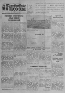 Организуем социалистическое соревнование за претворение в жизнь трехлетнего плана развития общественного колхозного животноводства имеющего огромное з н а чение для дальнейшего подъема жизненного у р овня т рудящ ихся . Пролетарии всех стран, соединяйтесь! шяШшё&иаШие К О Л ХО ЗЫ О р г а н С е в е р н о г о Р К В К П ( б ) и р а й с о в е т а д е п у т а т о в т р у д я щ и х с я Н о в о с и б и р с к о й о б л а сти Развернуть строительство НОВЫ! ТИПОВЫХ скотопомещений СРЕДА 18 МАЯ 1 9 4 3 г . & 4 3 ( 1 1 3 1 ) Цена 15 коп. Х а р ь к о в с к а я о бл ас т ь . Культивация по чвы в к с л \0!е к о м м у н а ' , Х а р ь к о в с к о г о района. Фото В . Х е й ф е ц а . П а р и ж с к а я ( р е сск лиш е Т А С С Сорввноваше МТО на весеннем сев? по состоянию на 16 мая 1949 иода. заним. место Н аз вани е М Т С . процент выполнения плана сева ( I . Северная ■ 4 6 , 2 2 . Тартасская 36,4 : Передор«ки кол хо за ,, У к р а и н е ц “ на весеннем севе В трёхлетием плане развития о х в б о о щ з д н е с о с т г т о в ве сат н п а н р в о о и д г т о у с к я т к и о з в л а н х д о о а г з о ч н а о , ж го ч и т в о и от б с н о ы о вв кратчайший срок удовлетворить растущие потребнстои населения в н тв ы м о х р я и с т е п ь , ро ж п д и о у т р к р т а е а х б х , н , о м с а т о и л та о к л к ё ж е гк е и о у й д м о п о в л р л о о е ч мышленности в шерсти, коже и с д т р в у а Н г . и а х мече п н р н о ы ду е кт п а а х ртие ж й ив и отн со ов ве од тс н л к о о и с в м ь т я и п и р к а р п в у о и п в т н ы ел о ш ь г е о ст н в и о е р м ога р п т р о о с о г т д о у с к п к т о о и г т в о а , т о н е в о л ец ь го ст и в р а а с с в и ш ин и к е р а й п ен и и та я т л р ь е н н б о у о в ю г о о т го р в е с с т е м р м о о е н и р а т с н к и от П ко н а ы в рт х в и о д я в в о с р е о и х в п , р к а к о в о л и ш х т о а е з р л а ь , х с . тв с о вин п а р р и зывают к крутому перелому по о в т о н т о н ш ов е о н д и с ю тву к . об к щ а е к ств ц е е н н н т о р м а у ль ж н и ой о з з а я б д й х а с до ч т и е ва мо , в н р а м а о з р б в и и еш л ти и е и з н о и в с е а е т л к ь ь о с т к о о г р г о л о а й вн н х о о е е в л н и и с К м то о а в л н х и с о е е з л ы ь к с о н к л о а х г ш о о з е н г х и о о к з р о я в а й й с о и т н в а с а п . е и ц ме и ю а т огромные возможности обес- щ яе е ч с е т н в н ен я ного всего ско р т а а стущ х е о г р о оши о м б и типовыми постройками. Основным строительным материалом у нас я з т а в а х л т я оч е н т н а с о ш я . ег л Л о е е с с , ра к й хо о о р н то о а р ш о е в г г п о о о в лн ка е ч к е о с л д т х о в о с а и х м о е з Х е о о т в р с . я ош в о бли ра з з и ве б р о н л у ь т ш о ин ст ст р в о а ит к е о л л ь ство в колхозе им. Ворошилова (председатель тов. Макаров). В прошлом году здесь закончено с к т а ро и ител к ь о ст н в ю о шн ти и п . ово В го т э е т л о я м тни г оду строится скотный двор. Колхоз «Украинец» (председатель тов. п К о ос в е о ) ог за т к е а л н я ч т и н в и а к е а т . У по сп ст е р ш о н й о ку и т д и ет строительство в колхозе ный путь» (председатель «В т е о р в . Тельный, бригадир строительной бригды тов. Куликов). Здесь с н т и р к о О и с и т о с б я о ск е о н т в о н н выы им й й ан т д и и в е п о о р в в . ый кол т х е о л зн я о т м строительстве сейчас обращено на строительство телятников и скотных дворов с родильными л п н п е е о о т ч г м н и е о и т щ п й ь о ен г п л о и л л у я а о ч м н в ш и ь р . у я а ю Э з с в к т и о о с г т т о и о а х я . т р р а Ч о е н б б т н о щ у о б е е ы с т с т т т ь о в р б е е н е н х с о вого ного м п ол ри од пл н о я д ка а и нуж к н он ы тра хо к р то ош ва и н е помещения. Новый типовый скотн