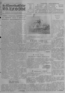 2 8 июня 1 £49 гона З А Б О Л Ь Ш Е В И С Т С К И Е К О Л Х О З Ы № 49 (1137) Партийная жизнь Организованно пронести выставку стенной печати Р а й к о м В 1 Ш ( б ) решил п р о вести во втор й п оловине и ю н я в п а р т к а б и н е т е в ы с т а в к у с т е п н ы х г а з е т , «боевых л и с т к о в » и «молний» в ы п у щ е н н ы х в период п о д г о т о в ки и проведении весеннего сева. Секретари п е р в и ч н ы х п а р т о р г а н и з а ц и й вместе с р е д а к т о р а м и с т е н г а з е т и зав. и з б - ч и т а л е н должны обесп е ч и т ь д о с т а в к у всей в ы п у щ ен ной н и з о в о й печати к п а р т к а б и н е т Р Е В К П ( б ) до 15 и ю н я . П р е д с т о я щ а я в ы с т а в к а с т е п ной п е ч а ти долж н а п о с л у ж и т ь т р и б у н о й для обмена опытом р а б о т ы редколле гий с т е н н ы х г а з е т и п е р в и ч н ы х п а р т о р г а н и з а ц и й по р у к о в о д с т в у низовой п ечатью . Н а ш а п е ч а т ь , в том числе с т е н н ы е г а з е т ы и боевые л и с т к и , является о стр е йш им о р у ж и ем бо л ьш е в и с т с к о й п а р т и и . Одна и з г л а в н ы х задач пе ч а ти - - п о в с е д н е в н а я п р о п а г а н д а п е редового опыта , п о к а з а л у ч ш е г о , ч то есть в наш ем сел ьском х о зя й с т в е . Н у ж н о , чтобы с т е н г а з е т ы к о л х о зо в , МТС, бригад, с е л ь с к и х Советов быстро под хва ты вал и к а ж д ы й н о в ы й п оч ин передовик о в , я р ко и интере но р а с с к а зы в ал и бы о л у ч ш и х лю д ях , о и х т р у д о в ы х подвшах. Но п р им е р у передовых к о л хозов в пашем районе п р о в о ди тся м е с я ч н и к у с и л е н н ы х тем пов з а го т о в о к продуктов ж и вотноводства. Стенгазеты сейчас должны ш и р о к о п о ка з ы в а т ь о п ы т кол х о зн и к о в с ам оо т верж ен ны м трудом об е спечивш их досрочное выполнение обязательств перед государством по молок у и д р у гим прод уктам сельског о хо з яй ств а . Редколлегии с т е п н ы х г а з е т и «боевых л и с т ко в » д о л ж н ы н а у ч и т ь с я п о ка з ы в а т ь к а к и м п у тем передовики добились у с п е х о в , чтобы пример передовиков могли п о д х в а т и т ь д р у ги е к о л х о з н и к и . С те пны е г а з е т ы должны не то л ь к о пропагандировать тот о п ы т , к о т о р ы й у ж е есть, по и в ы с т у п а т ь организаторами внедрен ия этого опыта . Опубликовав з а м е т к у о д о с т и ж е н и я х п е редовика соревнования, редколл е г и я обязана на стой чиво доб и в а т ь с я в недрения это го опыта в работе д р у г и х . За культобслуживание получили благодарность А г и т б р и г а д а Ч еба ков с коп и з б ы - ч и т а л ь н и во время проведен и я в е с е п н е г о сева обслужила х у д о ж е с т в е н н о й самодеятельнос т ь ю все колхозы Ч еба ковского сельсовета . Б ол ьш и нс т во ч ленов а г и т б р и г а д ы - к о м с о м о л ь ц ы . Они г о т о вили доклады и в ы с т у п а л и с н и ми перед т р у ж е н и к а м и к о л х о з н ы х п о л е й . В п р о г р а м м е х у д о ж е с т в е н н о й с а м о д е я те л ь н о с ти , кроме отдельн ы х в ы с т у п л е н и й , была подгото влена и представлена ко л х о з н и к а м пьеса Чехова <Предлож ен и е » . В ы с т у п л е н и е худ о ж е с т в е н ной самодеятельности зрители в с тре т ил и с большим удовольствием . К о л х о з н и к и в ы с к а з ы в а ли желание чаще видеть а г и т б р и г а д у в с в о и х колхозах. 3 0 м ая , бюро Р К В Л К С М членам а г и т б р и г а д ы , комсомольцам Ф ил и м о н о в у , Туровцевой, Р о го вой объявило благодарность . В. БОЛЬШАКОВ. 4. И з у ч а й т е и л ю б и т е с в о й р а й о н Летний отдых сочетать с изучением своего района Строительство к о м м у н и с т и ч е с к о г о о бщ е с 