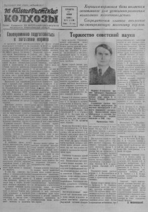 Пролетари и всех ст р а н, соединяйтесь'. заМши&мтсШ Ш Ж Ш М Ш Ш О р г а н С е в е р н о г о Р К В К П ( б ) и р а й с о в е т а д е п у т а т о в ¿ г р у д я щ и х с я Н о в о с и б и р с к о й о б л а с т и Х о р о ш а я кормовая ба за я в л я ет с я основанием д л я успешного р а з в и т и я колхозною животноводства. С оср едот очим главное внимание на своевременную заготовку кормов. С У Б Б О Т А и июня 1 9 4 9 г . К 50 (1131) Деиi 15 san. Своевремен о подготовиться к заготовке кормов В трвх'летнем плане развития О х в о о б з д щ н ст о се в г т а о веи С п о н р в о о е д г т у о к к т М о и л и в х н н о и о з с г н т о о р г о о в жи С и в С о С т с Р о н в о и л н Ц я ы К е й т В ся п К о П ц д ( е ъ б н ) е тр м у а к л ж а ь и з н в а о о л й т и н з , о а в д ч о а т д ч с о е т й в в с а е и м я а е р в р - ти и и государства в развитии сельского хозяйства. ванное на-днях пост О а п н у о б вл л е и н к и о е с г п т о а в т р а о т » в и к и а п х и ре п д р у п о с д р м у а а к в т т и р о т и в е в л а ь е с ж т т и в в а у о в т е н « л 0 о и во ч з д е а н к ем и а е , а м в з а а с г л б о а л т , о и в ж я о а к и й ц ш м и и я е са т д , р ру и с г а и г л о х а д , а ж м и о о в б л о ъ о т новодческих продуктов не менее чем в полтора-два раза. Выполнение этих важнейших задач в огромной мере зависит о я в н а т и . е к Н о е р к у о м д р о о м в о в л в о е о й т й б в а о б з р ы а и з т ы е ж , л и ь к в н а о о к т е но о в т с м о о д с е т с т т о и ли Совет Министров СССР и ЩК В1Ш(б), является в я ем щее бы вр ст е р м о я м ,г у лавн р ы о м сту пре п п о я г т о н с л т а о с в в т и ь о я с т к и о в т н Н а о е с к т о и и т . п о о р в ы ы е шен к и о ю лхо е з г ы о пр н о а д ш ук е го р к н о а я й шю о т е н н а и п я л и а з н и о г в о о д б с а р и е л к в о а с ю о г т о ва д ни к н я о е лх в и о ы с з е н п н ы о о л й с в к а о н т ие н , а а по к лу в г е о с л н о е дн д ое ово с д у я щ т е е с г т о во д о крайнего истощения. В прошлом году колхозы «Северная заря», Остяцкого сельсовета, «Борьба» и «Парижская коммуна» Потюка- п л о и вс п к л ог а о н с з е аг л о ь т с о о в в о е к та к н о е рм в о ы в по п л о н чт и и на-ноловину, что весьма пагубно о н т о р в а о з д и с л т о в с а ь , на осо с б о е с н т н о о яни к и к ж о и л в х о о т з е «Северная заря» и «Парижская к д о е м ж В му ск н о а н т » а а , с . т г о д я е щ б ее ылд в о р п е у м щ я е , н к п о а г да в п с к м и я о о о т е д в и ъ ц о и е е т с м н о н т с в о е р е ш ж л а р и ь е л ш с н в ь к е и о н о н т е о г н н й о о о к в о з н з д х а а е с о д д г т з а о о в я ч т п а й е о у й с в с т т к я в и е в в а м л , о я к р . е о т а т р а з В атом году вдобавок к силосу и сену «каждый колхоз должен иметь еще и корнеплоды. Это значительно облегчит колхозам с л н о и е д п ч е л и р о т ж до а н н в а и д е д ой ой св н м и ы н о м л е о й к к , а ор а и ов д а а м ч п а овы у к в о си е р т его жирность. т о т и р р й о г В н а л н ь ы ы е э з т а ом и д о г с л о е д л ж у ь н с ы кох со о в у зя е си т й с л с к т и и в т е е ь , нн к п ы о а н е р заготовкой кормови этим обеспечить н т м о а о с в т в у ь ю з о и б б м и а н з л и у ь й но и го сто с к о й о з л р д п о м а р в т л о ы ь е ч й н н и у в п я ю о е з р с м к и к о о о о р д ж , б та у т ю о П т в ра о т в т р и у т м д е е л я с ь щ т с и н тв х ы о с х я С и о и в п е а с т р е о т л в и ь я с д к е о т п х р у о е зяйственных органов провести сеноуборку в сжатые сроки, с тем, чтобы сено шего качества и собр з а а т к ь онч л и у т ч ь сеноуборку до начала уборки зерновых. К атому же времени выполнить установленный план силосования каждым колхозом. Передовые колхозы нашего района, им. 