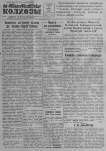 IIр 9лет а р ии всех стран, соединяйтесь'. ж Ш б ш е & ш ж н Ь е КОЛХОЗЫ Орган Северного РК ВНП(б) и райсовета депута тов тр уд ящ и хся Новосибирской области ЧЕТВЕРГ 7 ИЮЛЯ 1949 г. Я 5 7 ( 1 1 4 5 ) Ц е н а 1 5 коп. Организованно провести сеноуборку и выполнить план накопления кормоь —з а д а ч а, которую надо успешно р а зр еш ит ь каждому к о л х о з у д о начала уб орки хл еб о в. Закончить заготоковрмкоув до качалауборки урожая Т р е х л е т н и й п л а н р а з в и т и я о бщ ес т в е н н о го к о л х о з н о г о н совх о з н о г о п р од у к ти в н ого ж и в о т н о водства п р ед у см а три в ае т создание в к о л х о з а х в к р а т ч а й ш и й с р о к п р оч н о й кормовой базы. Она должна о беспечи ть обильное кормление с к о т а к а к летом, т а к и зимой. Исходя из этого, н ы н еш н и м летом к о л х о з ы должны з а г о т о в и т ь гораздо больше сена, чем в п р ош лы е годы. Вр ем я к о л о ш е н и я у зл а к о в ы х и б у т о н и з а ц и я у бобовых р а с т е н и й — н а и л у ч ш и й срок уб о р к и т р а в на ceno. Это время н а с т а ло. Надо п р и с т у п а т ь к м а с совой с е н оу бо рк е и з а к о н ч и т ь её до н а ч а л а уборки з е р к о в ы х к у л ь тур. Н а ч а л и з а г о т о в к у к о рм ов к о л х о з ы В е р х - К р а с н о я р с к о г о сельсовета, Прибелинского , С ев е рн о го. С к о ш е н ы пе рвые г е к т а р ы травы . В к о л х оз е « Н о в ы й п у т ь » работает н а сенокосе 2 с е н о к о силки, в к о л х оз е « Л у ч с в е т а » -3. П л а н з а г о т о в к и кормов доведен до каждого к о л х о з н и к а р а б о т а ю щ е г о в р у ч н у ю и н а к аж д о го м а ш и н и с т а сеноуборочной м а ш и ны . А к т и в н о ра б о т аю т на з а г о т о в ке кормов ч л е н ы сельхозартели «Г ер ой » , П р и б е л и н с к о г о сельсовета. Председатель тов. Борисов, е пе рвого д н я севокоса борется з а в ы п о л н е н и е д н е в н ы х заданий о беспечивая тем св о ев р ем ен н ую и д о б р о к ач е с т в е н н ую з а г о т о в к у кормов. Соверш ен но не пр и с т уп и л и еще к заготовке кормов к олхозы: « Г и г а н т » Б - К у л и к о в с к о г о се л ь со вета, « К р а с н ы й факел» Н ов о - Е л и з а р о в с к о г о сельсовета, « П а р и ж с к а я к о м м у н а » П о т ю к а н о в - ского сельсовета и некоторые д ру ги е . Ру к о во ди тели о т с т а ю щ и х , в заготовке кормов, колхозов, з а б ы в а ю т о воле к о л х о з н и к о в , в ы р а з и в ш и х пр и обсуждении т р е х л е тн е г о пл ан а р а з в и т и я ж и вотноводства, особое стремление в этом году з а г о т о в и т ь к а к м ож н о больше в и т а м и н н о г о сеиа, для к о рм л ен и я м ол од н я к а к р у п н о г о р о г а т о го скота, овец и свиней. От з а г о т о в к и кормов в сроки, пр е д у см о т р е н н ы е в постановлении С о в е т а М ини с тр ов С С С Р и Ц К В К П ( б ) о проведении уб о р ки у р о ж а я и з а г о т о в о к сельхозпродуктов, целиком з а в и си т вы полнение п л а на первого года исторического т р е х л е тн е г о п л а н а р а з в и т и я ж и вотноводства. След ует п о м н и т ь недостатки з а г о т о в о к кормов п р о ш л ы х лет и не д о п у с т и т ь их. Н е л ь з я о т к л а д ы в а т ь н ач ало се н окоше ни я , с с ы л а я с ь н а « н е б о л ь ш у ю т р а в у » . Надо в ы б и р а т ь наиболее л у ч ш и е л у г а и косит ь , к о с и т ь немедленно. Но мало т р а в у во время ск о сить, надо еще п р а в и л ь н о её п р о с у ш и т ь и уб рат ь . Сено из валков в к о п н ы сл ед у е т с в о з и т ь к о нным и или т р а к т о р н ы м и в о л о куш к а м и , которые и с п о л ь з у ю т с я т а к ж е и п р и по дт я г и в а н и я к о п ё н к скирдам и с т о гам. Н е о б х о д и м о скирды и с т о г а х о р ош о уп ло 