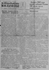 П р о л ет а р и и всех стран. соединяйтесь! ЪйШшмФиапЫЬе колхозы О р г а н С е в е р н о г о Р К В К П ( б ) и р а й с о в е т а д е п у т а т о в т р у д я щ и х с я Н о в о с и б и р с к о й о б л а с т и " ——- " " «V Неустано повышать качество медицинского обслуживания о ра н б н о З а т а я н к и о к н к о о ч н в и ф . л е а р с е ь н Н ц а т и р я ех м д к е н о д е н и в ф ц п е и а р н я е с н к р ц и а и х й и присутствовало 45 человек. Па ней были заслушаны лекции и д ч о е к с л к С а и д е ы л т е н е к м а ци ы л я . е м ч и ебно и -п до р к о л ф а и д л ам ак и тина ф к и он ц ф ир ер ов ен ан ц н и ы и е в с ы п с е т ц у и п а а л л и и сты квали и з д ч и и ц с и л н а ск с о т г а о рше п г е о рс и она с л р а едне р г а о йо м н е а . Лекцию на тему «Трахома и борьба с ней»—читала врач тов. Фалк, «Глаукома» (повышение внутриглазного давления)—врач |т т о е в рия И и стом б и о н р а ь , б л а ек с ци н ю ей» «Д ч и и з т е а н л а тов. Тупикина, о гипертонии (повышение кровяного давления) к — н п ы п в х р а. а з ч аб т К о о р л в о е . м ва е н Н и о я т в х о и — г к о о , т в ов. и уч Ф а о и ст л к н и о и ч ж к - и конференции заслушали доклад пропагандиста *РК ВКИ(б) тов. с Б к а о р й аба с н е о сс в и а и об Сов и е т т о а гах Мин П и а с р т и ро ж в Иностранных дел. Конференция проходила под з б н о а т к н о и м ков повыш се е л н ь и с я ких зна л н е и ч й ебн р ы ах п н с у и л н я у к ж т и к о в а в а ч н е и с и т я в н а е н у а с м т се а е л н д е н и н о ц и г и о я н . ск п о о г в о ы , ш об ед к е о н в З ие а у м д с а и ч л с а и ан ть м ит е а д к р и о н ц н о и т - р н г о с и л к г ь и и х ен за р и а ч с б е о о с б к т л и н ю х и условий в полевых станах и тракторных бригадах. з т о а в р а н т ы ь е в п п о о л ст ев ы ы , х о с б т е а с н пе а ч х О и р т с г ь а а н н и и и х аптечками для оказания первой м н но е о - д п и п р ц р о и с ов н в с о е к т ди о и й т те ь л п м ь о н а м с у о с ю о щи вую р и аб п с о а о т н с у т и . о т я а н рш бо е т н а Н и н ю а ы к о о м б н с е л ф р е у о р ж п е р и н и в ц я а и т н и и и я я был м п и ед о и у р ц л а и з у н р ч а ской помощью колхозников и трактористов в период полевых работ. Во второй половине щ 1 е 9 с 4 т 9 вл г е о н д ы а д в о с л е жны мер б о ы п т р ь ия о ти су я , направленные на повышение д в к а а ос н ч т и Н е а я с т а т к до в и н а а л с м и е и к е л м д в е е и и н ю д ц и и и щ я р н . и о с е к в с о а я т г о ь об в с с л е ужи н ееще на врачебных пунктах.Устранить и р н и е е д й о , п к ус и к ш а е т ч ь ны з м аб и олев и а н н ф и е й кц м ия а м ля и , наладить квалифицированное лечение глазных заболеваний. Улучшение качества медид с ц т и и в т н о е с в л к а ь о т н й ь ос п т о и п м о о в щ т ы р и ш уд ен а б и уд ю е п т у п в р с е п о л и о и с з ч о в и б о т число участников б н о о т , . в А л э ет т н о юю не ст о р б а ох д д у п и . м о о л , е о ыв с х об р ен а Сейчас колхозники заняты на заготовке кормов для скота. В ближайшее время каждый колхозник носвоим способностям будет работать на уборке жая и заготовках з д — я ы й д с й е т л в о е к н с о н е л ы з х о х о н з н н п о и е р . к оду П к о т э о т в о . с м е у л У ь б с к о к у р а о р к ж х о а о ' и т рактори с т , механик или комТшШрдолжны быть мобилизованы на в в р ед е е м н е и н е но у е бо и рк к и ач у е р ст о в ж е а н я н . ое п св р о о е ней В ше у й спешн с о е м льс п ко ро х в о е з д я е й н с и т и вен в н а о ж й кампании—уборки урожая и заготовок сельскохозяйственных продуктов не малую б в ж о ы н т ш ы ни ат к с ь и ыгр к а а р т ч а ь е й с о т н в а м о . ед Н и м е ц у е и с д н т и с а ц к р н и и 