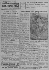 Г р П р о л е т а р и и всех стр а н с о е д и н я й 7Песь! тШшт-М^а К О Л Х О ЗЫ Орган Северного РК ВКП(б) и райсовета депутатов трудящихся Н овосибирской области Усилить темпы ' з а г о т о в о к кормов Совет Министров СССР и ЦК ВКП(б) указали, что удовлетворительное кормовой базы являетс с я остоян « и н е ев с с т т в о и я е щ м ее бы в с р т е р м о я м г у л р а о вн ст ы у м пог п о р л е о п в я ь т я нас т к и о в т К н а о о л с и т хо и п з » ы о . вы н ш аш ен е и го ю е р г а о йо п н р а од и у м к е ют в своем распоряжении л г в а е а т т е н ы т и с е я м сено п к л о а с н н о ы м е уг п од р и е л д . усм Т а р т е р б х и о полное использование естественных сенокосов. Сенокосная пора настала. Однако в ряде колхозов нашего | р т а е й л о ь н н а ые еще ме н р е ы пр к ин м я о т б ы или р з е а ш ц и ии всего трудоспособного ния. Темны заготовок н к а о с р ел мо ев . явно неудовлетворительные. Еще 44 все не ликвидирована вредная практика ожидания «большой -травы» н сухой погоды. Наш район является* отстающим но н за о г в о С т е Н о н о в о в к к о е о си сн б к ы и о р р е с - м к о о в й пло о щ с б р л а е д а д с и а ти. н р а а ш й и о х х к о о з л а х х озов Чан н о е в х с у к ж ог е о пок р о а с й о о в н в а, колно колхозы Чановского района идут далеко впереди наших по заготовке кормов. В этомгодув нашем районе заго товка кормов проводится гораздо хуже чем в прошлом году. Если на 15 июля ло скошено 61 1 5 9 1 48 г г е о к д т а ар бы и застоговано 4827 цент., то в этом году на 15 июля скошено 4603 га, а застоговано всего лишь 286 цент. н щ а ег з Э о а т г о о к т о я о л в в х н о о а к з я н к о у г о г о р р м о о з в п а ро д с д л р у ы я кт в и р а в а н с п о т л г у о а животноводства. С целью своевременной и качественной заготовки кормов Обком ВКП(б) и Облисполком л о л к я б о е ъ м н я 1 ию в В 9 и 4 К л з 9 Щ и аг б о г с т ) о о д 1 в а о 5 и д к е и ка ю д к л н ор я и м к п о о в. п 2 о 5 Р у и а с ю и й вели задание каж ра д й о и м с у полк к о о м лхо д з о у н ни а я пе д р о и л о ж д ны дек б а ы д т н ь ика. до Э в ти еде за н д ы а д о к ш а и ж н З д и а о с д г т а о а ча с к е о н с к о а а к р ж о я с д и о л й в к р и у . ч п н а у р ю тий и но м й а и д ко о м г с о омол а ь г с и к т о к й ол о л р е г к а т н и и в за а ции, п к о а м ж оч ь т п х о р оз в е к о д е с в ед д а к о т о в е р е л с м т я о и м в з б а р п д и а р г н а ав и д л а е е м н , п и з о в й ен з к а ь о я г л о м и индивидуальным исполнителям. д Р р у е а а в з л н в ь е о н р в н а у н ю у и ть е в з с ы о а р ц а и в б а о ы л т с и к о с к т у у и ю ч н ес а к ин о п е д о и к с в о о и с е и укладке сена. Большого внимания заслужя- а в р а т е е т ли поч «К ин рас к н о о л г х в о а з р н д и е ц е ы ц», сель Б хо к з а - з х и ар н о ск в о ой го . с О е н л а ьсо п в р е и т з а ывае М т ар в ии сво З ё а м письме всех косарей мужчин и ж ре е в н н щ ов и а н ни п е а , социалистическое со выкашивать в день на косу по одному гектару травы. Нес мненно этот патриотический призыв должен найти н ва ы т х ь То т т р , н у е г ж к у о т д е р о о н я в и ч с л к и т е о р й т в е в м . о о р и т и - к 'с т л я е и л л к ь и н к о в у е ид ч и е р с с о о тстояние кормовой б х о о т з а а т х ь , б н уд а ет заг н о е то ж вк а е лея к . о б с р а и м з л ы ов р о в а т колзари до зари. Дневное задание на заготовке кормов должно быть выполнено каждым. Не выполнив задания — не уходи с поля! Под таким лозунгом должны работать на сенокосе от старого до малого. Все на сенокос! Заготовить вдоволь кормовдля р н а о с г т о ущего ж о и бщ во е т с н т о в в е о н д н с о т г
