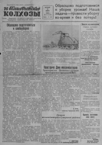 П р о л е т а р и и всек с т р а н, сое д и н я й т е с ь ' . I ыШтеЯъта&е К О Л ХО ЗЫ ' О р г а н С е в е р н о г о P H В К П ( б ) и р а й с о в е т а д е п у т а т о в т р у д я щ и х с я Н о в о с и б и р с к о й о б л а с т и Ч Е Т В Е Р Г 21 ИЮ ЛЯ 1 9 4 9 г . X 61 ( 1 1 4 9 ) Цена 15 con. Образцово подготовимся к уборке урожая! Наша задача— провести уборку во-время и без потерь! 434 > Образцово подготовиться к хлебоуборке з л а ен С и В С ем Р соо С и т о в в е Ц е т К т с а тв В и М К и и П н ( и б с с ) тро о в пос п т С р а о н о ю о в в е д в д о е у к к ни то с и е в л у ь б в с о к р о к 1 х и 9 о 4 з 9 я у й р с г о т о ж в д е а у н я ,с н е ы й п ч х а з с аг п о д р т о о о л ж ж м н а а н о я ие б п ы п т п ь од ро у г в д от е е д о л в е е н к н и о е ю к гл х у а л б в е о н б р о о к е з е аг в у о н р т и о ор во и к щ . а На С д т о али п н ом а: нить «У с б л о о р в к а а то д в е а л о с р р е а а з л о л н , » н . о о е поз ¡ д ¿б ал ра в л во- у в б р о е р м к я е —— в п ы ро и и ггВ настоящее время, когда до начала уборки урожая осталось з ч н о а е в т а е б т л ь о ь л н е о о е с й та 1 в 5 ш п и д од е н с е г я й от , о д в н н к и а и до д к ля и п с о п р к о о о л в н ь е д х е о н зя и Д й ю и с р т е в э к т е т о н о й н р о ы й важ ка н М м е Т й п С а ш н , е и й и. м се е л ха ь н ск и о к и, л п ш и р а с е т д ы з се а д д с а а т е ч л е а ь л с и к е о щ г к е о олхо р хо з а о з з я в, йст п с в р п а о — е в ц ер в и а и а т ь готовность комбайнои,тракторов, молотилок,транспортных средств, з т е о р к н , оо се ч н и о ст к и о т си ел л ь о н к ых с ма п ш р и и н во , да ж м а и , л н о ы б х огр и ее р к у , чн ру ы ч х ных гра г б р л а е б й к , ов,к к о р н ы - т - ц г . ¿шклв^._5<1ЖЕЬ}>в® и - ной тары. с н к и а с з В т а р н о п о в о , с С т ч а о т н ю о о з в а л н е е С н С и м и Р ен С е и е Ц ов К ет В ч а е КП м ( М б и ) з а в т 2 е о 0 с в т н и д ос н т к е и о й мп д к о а л ж ек н д с а о н ч й у а ю л М а Т п С у р б ов о к р ер ки к у у бо п г р р о к о е я г у и н р х и о П я ж р у а о р б я в о . е е р м д о е но ч н н т н ы а ой х ко п м р м б о аш а в нй и ек о н р в ой Т и а с р о д т с р т а у о с’ - ской и Северной МТС, отмечено х н с р п о у р я о з ж в д о я , в д й е д а а с р л е т к ф и в и т е с е а ь к н к т н о ж к н ы в е а а х ч в е и б с ю т р р д в м е а р о м а у о ш г н р Р и и т е К н х е м . о к с В н о е т К м л а П И б ь а с ( т о о й б к б г ) о и , постановление бюро РК ВКП)б) обязало директоров МТС тт. Ятис и тра П н р и о т с ь ку о р т г м ш е н ч а е , нн н ы е е мед н л е е д н о н ст о ат у к с и в ремонте машин. По опыту х ч о а з с о т в у , ю о н с а о ш бе и нн р о у п к р з о о о в н ш о ы д л и ы т х е М ли Т л С, е м к т а о л л з о а прилагали усилий к ремовту простейших уборочных машин, о п п б о о р д л е а е т г л е к а н л е и и ю с г ь ра с б н е к р а о п в к о , о в м ; г б р а а й о б н н л . и ей всец п е р л и о гать В н п а р ш ос и т х ейш ус и л м о и виях убо п р р о е ч н н е ы б м р и е средствами нельзя. Это привдоит к з р у о л ч ь н в т ы е а с х т ь а м м р а , аб к о н т е , з б а л к т а я г г о и п б в р о а и л н я ь и т ш ю н и ы м м уб р п о е о терям урожая от перестоя. В этом году при МТС надо, в б р п л о р ч и о н ж в ы е а р й е к ш у к и о е р м е и м с д с о н и н и и та и со и о з р д г а а т к н ь о и л з п о и р в ч о а е т в с ь е т в т х е о е н з й о н ш в о и . х в К у о б н м о о и р с о к с ч и а н ч и ы ес х д т о в л с у р ж , е н д в ы с с т е в х сер п к ь р о ё о л з с н л о у о и тн п е о ст тр ис еб ь ов к ать пор от учен п н р о а м в у лен д и е й колхозов выполнения их указаний, т б ки а ел й и Д н д о и о в р к л ы о е ж к л е н т х ы о о а р з г о ы р в у е к г о М а м т д Т о ы п С л Н е к к а а т ч и д о а в л р а п а а т р м ь ед и 