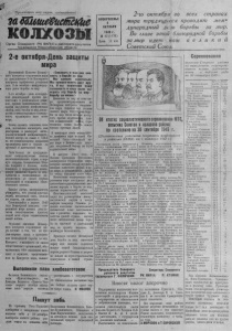 П ролетарии всех empan, соединяйтесь! ttM m é&uëm ââte К О Л Х О З Ы Орган Северного РК ВНП(б) и райсовета депутатов _____ трудящихся Н ово сибирской области 2-го о кт яб ря во всех ст р а н а х мира т р у д я щ и е с я проводят межт дународны й де гъ борьбы з а м и р . В о главе этой благородной борьбы з а мир идет наш в е л и к и й Совет ский С о ю з. В О С К Р Е С Е Н Ь Е 2 О К Т Я Б Р Я 1S4S г. Л 82 (1170) Цена 15 коп. 2-е октября-День защиты мира 06 итогах социалистического соревнование MTG, сельских Советов и колхозов района по состоянию на 30 сентября 1949 г. (Постановление райсовета депутатов т ру дящ и хся ир а й к о м а В К Щ б ) от 1 о кт я б р я 7945 г.) ного Пос к т он оя гр н е н сс ы а й с К т о ор м он ит н е и т ко В в се м м и и р р а по предлоежнию 2-го Всемирного конгресса профсоюзов установил д н е ы н м 2 ь -г 2 д о - н го е о м кт о б я к о б т р я р ь я б б — р ы я д — е з н м а ь е м ж в и д р с у е . н н а а р р о о д д н мш ы о и х с в т , с д п к е р и м х о о ти нс в и тр р к ац о еа и ло й к н ц иа и п л о ь р н н от ы н и ы х в рх в е о ж ф йн и а , против нарушения профсоюзных с н р в а о т о с и б т ю о ь д и д; м т е р е н у ж ь д б д я о щ у р н ь и б а х ы с р я о за д м н м и а ус с ю р о с д, л е и м в д о а с р к е г о мир Ч а т . обы оценитьзначение этого дня, достаточно посмотреть как р р ч е и е а с а к г л и и и р й с о т в и л а ч а е л ге ск р и и ь й р в е о а аг н г и т л р и а у д е в е т е м с ок и р С м Ш а п т е А и на все усиливающееся движение трудящихся масс в борьбе за прочный и длительный мир. к в м а у а ю п ю и Ч т т е о а г ч о л е п г т р с о е о т с д и л п ь ч ь о к е д с С о к с о в и т е у х д н ю и е щ с н т и е р н п а е н н р ы е , х д к в Ш п л п р а т е и с а р с н ы итов Америки и Англии, чтобы р п о о д м но еш е ат д ь виж и е п н а и ра е л бо и р з ь о б в ы ать за вс м е и на р, р п о р п и р б и е я г т а и я я к м—д в о сево с з а м м о ы ж х ным груб м ы е х п ст р в о О е в д н н о н а а к к ц о и о г й ом л и а не ге н и р и с ь я ка . ж им е п ни ер я иал о и б с щ то е в убеждается, что усилия иростых людей, желающих мира, нельзя ни скрыть, ни замолчать. Состоявшийся в апреле 1949 р г та о о т д н о а н м и В к с о е в с м оп и м р р и о н р т ы и а й в я ле в к н и о л н ия с г я ресс п р р е о з с у с т л т ы о ь х людей всех стран поджигателям новой войны. « С м е л о с т ь и е щ е р а з с м е л о с т ь в борьбе з а мир. Мы с у м е л и с п л о т и т ь с я . Мы с у м е л и п о н я т ь д р у г д р у г а . И мы в ы р а ж а е м н а ш у г о т о в н о с т ь и н а ш у волю выи г р а т ь э т у борьбу з а м и р - борьбу з а ж и з н ь ! » ре, Дви п ж р е о н д и е е мо з н а стр м и и р р ов в а о нно вс е ем м н и а В ко с в еми м р и н р о а м , о К х о в н а г т р и ес л с о е все сто с р т он р н а и н ы б з п н е ы о а м в т н ь з о п г а п о о д р м ж о ши т и р и а га в р т а ст . е а л а г л е р С й и т е о с а с р к и о т в в н о и н н и |н ы и н к х ы о и , в б ы с о п с т р л р т ь у а е мящихся снова залщгь землю кровью простых людей. г в о е В тс д к а в и в и й ан ж г не а С и р я о де ю и з э д — т е о т н г а о в д е е в л ж и с н к ен ы и й а й ро С д о о п н о л д о о т в, м н и е р о а дол и им б ы е й зоп б а а с р н ь о е с р ти па п п а у р ти о поджигателей войны. В августе 1949 года, в Москве проходила Всесоюзная конференция сторонников мира, которая явилсаь новым крупным б л в р ы о к о л н В а м н м д с и и о е е к ж м р с о а о в д ю с у и з о м н н в и е а у ар с т я р с т о а к д а к о а н п г о м о о о н и с в ф л л н е у в р е а ж с р н е е и н о а г д л ц о а а и я м д в д р и с д е р у т е л а ж о у . д ж а е л н ь и н я ей н ш ар е о го до р в аз в вер бо ты рь в б а е ни з я а д м в и и р