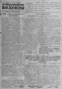 эхоигтоид I П р о л е т а р и и всех стран, со еди н яйт е сь! ыШ теШ тские К О Л Х О З Ы рган Сеэерно го P H ВКП(б) и райсовета депутатов трудящихся Новосибирской области ВОСКРЕСЕНЬЕ 9 ОКТЯБРЯ 1849 г. & 84 (1172) Цена 15 коп Ш и р е р а з в е р н е м предоктябрьское социалистическое соревнование з а досрочное выполнение обязат ельст в перед Р о д и н о й и образцовую подгот овку к з и м н е м у содержанию скота! Выше знамя предоктябрьского соревнования Советский народ ведет деятельную подготовку к встрече а великого праздника—32-ой годовщины Октябрьской Социалистической революции. На предприятиях промышленности, на транспорте, на социалистических стройках, на колхозных полях с огромным политическим и производственным подъемом развернулось предоктябрьское соревнование за досрочное выполнение^шана четвертого года послевоенной сталинской пятилетки. Это патриотическое движение стало поистине всенародным. Миллионы советских людей с честью держут свое слово. Взятые ими обязательства социалистического соревнования претворяются- в большевистские дела. С заводов и фабрик, с колхозных полей поступают радостные вести о производственных достижениях. В нашем районе, благодаря самоотверженного труда колхозников сельхозартелей «Вторая пятилетка», «Новый путь», им Карла Маркса и других выполнивших государственный план хлебосдачи досрочно и продолжающих сдавать хлеб сверх плана, имеется тоже свой вклад в общее дело укрепления могущества нашей Родины. Успехи в полеводстве открывают перед колхозной деревней новые огромные возможности в развитии общественного продуктивного животноводства Наша задача состоит в том, чтобы умело использовать эти возможности ДЛЯ увеличения скота на колхозных фермах я дать стране в изобилии продукты животноводства. Наступает самый ответственный период для животноводов. Колхозные фермы накануне зимы. В условиях Северного района надо много и хорошо потрудиться, чтобы обеспечить общественному скоту теплое содержание зимой. Отлично поняли ответственность за содержание общественного скота председатели правлений колхозов «Верный путь», им. Карла Маркса, им. Кагановича, им. Ворошилова и других, своевременно организовавшие ремонт и подготовку скот'опоме- щений н обеспечившие скоту изобилие кормов. Однако подготовка животноводческих помещений к зиме в нашем районе проходит неудовлетворительно. Вновь построено 5 конюшен, отремонтировано— 16. Скотных дворов подготовлено—22, телятников —19, кошар —15, свинарников —11, по это далеко не обеспечивает скот колхозов теплыми помещениями гга зимний период. В районе организовано 53 строительных бригады, в них занято 207 человек. Но в ряде колхозов строительные бригады используются не по назначению и подготовкой животноводческих помещений к зиме совершенно не занимаются. Колхозники нашего района должны поддержать инициативу членов сельхозартели им. Карла Маркса, обратиршихся с призывом ко всем трудящимся района включиться в предоктябрьское социалистическое соревнование в честь 32-ой годовщины Октября за отличную подготовку животноводческих помещений к зиме, за досрочное выполнение своих обязательств перед государством по продуктам животно- нодстваи пополнение колхозных ферм. Правления колхозов и парторганизации должны свое внимание сосредоточить на мобилизацию колхозн