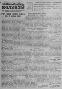 П р о л е т а р и и вс е х с т р а н , с о е д и н я й т е с ь! заШтеШшнке КОЛХОЗЫ О р г а н С е в е р н о г о Р К В К П ( б ) и р а й с о в е т а д е п у т а т о в ______т р у д я щ и х с я Н о в о с и б и р с к о й о б л а с ти I 1 ; В ОС К Р Е С Е НЬ Е 27 НОЯБРЯ 1 9 4 9 г . 3*98 (11 8 6 ) Цена 15 кон. Учителя, учительницы! Улучшайте учебно-воспитательную р а б о т у в школе. Боритесь з а высокую у с п е в а е мость и сознательную дисциплину учащ и х ся ! Ш К В П И — » — » ■ I I ■ I И — | |Л Н Г М 1 1 И П Ш М Г Г1 Т И Ш I I II ■ ! ■ ■ ■ ! ■ ■ ! ■ I I I И Щ И | И - Ц | Г| П 1 Г | Т IV I I I I— | | - п I II I. . . . . . ■ - | | - *. . . . . . . . . . . . . . . .-. . .в. т т | - Итгои преовй чевтретиучебного года в школах рйаона За культурный о т д ы х спаоиСш учительнице тов. Захряпиной Текущий учебный год начался под знаком дальнейшего повышения качества обучения в школах, неустанной, повседневной борьбы за прочные и полноценные знания учащихся. Начало учебного года было ознаменовано переходом ко всеобщему обязательному семилетнему обучению детей. Б нашем районе в этом году дополнительно было открыто три семилетиях школы. Перед партийно-советскими организациями, шкoлavн и педагогическими коллективами;района стояла задача—привлечь всех детей школьного возраста к обучению в школах. Эта задача в основном выполняется. Проверка выполнения планов всеобуча детей показывает, что большинство партийных организаций, сельских Советов и учителя школ добрэсо- ' Честно отнеслись к выполнению закона всеобуча. Больше-Куликовский,Федоровский и Прибелинский сельские Советы хорошо подготовили школы к учебному году и охватили в основном всех детей, подлежащих обучению. Однако, еще имеются в районе отдельные руководители сельсоветов, как Гражданцев- ский, Чебаковский и Остяцкий, которые недостаточно серьезно отнеслись к подготовке школ и выполнению закона всеобуча. В Гражданцевском сельсовете иеобучается в 5-м классе 14 детей, не организован подвоз продуктов питавия учащимся; школы отремонтированы неудовлетворительно. Итоги работы 1-й четверти показывают, что уже в некоторых школах района наблюдается отсев учащихся, так в Ударнинской школе—2-е детей; в Останинской-»-3 учащихся, в Остяцкой—2 и в других школах. Перед партийными и советскими организациями, руководителями школ и всех учителей района стоит задача—полностью осуществить закон всеобуча в Этом учебном году а- не допускать случаев отсева учащихся из школ. Наряду с выполнением закона всеобуча перед школами и органами народного образования стоит и другая серьезная задача—всемерно улучшать качество обучения в школах, повседневно бороться за прочные и полноценные знания учащихся. Эта задача требует от учителей, руководителей школ и отдела народного образования серьезного отношения к постановке учебно-воспитательной работы, к совершенствованию методов обучения и воспитания детей. Нельзя забывать, что школы района закончили прошлый учебный год с большим количеством второгодников. Если на осень было оставлено по району 201 человек, то осенние испытания сдали только 54 учащихся, а остальные осталась на 2-й год поэтому борьба с второгодничеством остается центральной задачей для учительства района. Закончилась первая четверть и началась вторая. О чем говорят итоги 1-ой четверти? По сравнению с первой четвертью прошлого учебного года в большинстве школ района в этом году значительно улучшилась успеваемость