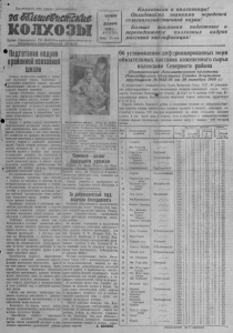 П р о л е т а р и и все х с т р а н , со е д и н я й т е с ь \ н ке КОЛХОЗЫ Орган С еверного Р К ВКП(б) и райсовет а депутатов трудящихся Новосибирской области ЧЕТВЕРГ 1 ДЕКАБРЯ 1849 г. $ 9 9 (1 1 8 7) Цена 15 коп К о л х о з н и к и и к о л х о з н и ц ы ! Овладевайте знаниями передовой сельскохозяйственной н а у к и ! Больше внимания подготовке и переподготовке к о л х о з н ы х кадров массовой к в а л иф и к а ц и и ! 1 Подготовка кадров врайоннойколхозной шклое ной Сего к д о н л я хоз н н а о ч й инаю ш т к с о я ле з . анят П и о я дго в тов р к а е йон и воспитанию колхозных кадров массовой ■квалификации партия и правительство уделяют большое внимани . Хорошо обученные кадры, знающие н т ю св и о щ о ч м е у е ю с у к д к у е р р л ю е о о п л , л ь л е п и н в н р и а и о в и ю р и г л а ь п н н к а и о о р з л т а п х и ц о о и и н з , о о и н в м п , н а г о в ю р - а щ х д ю о а и з т л е я ь й н с е т р й п в е ш о е ш л н е и м а л р в и а и з т с в и т и и и т ч и е о и с б к щ о э й е к с о т н д в е о е м р н е н и в к о н г и и о , в и пр д к о а у д л л у ь ь к н т т е у и й р в ш ы н е о м го со р ж ц а и и з а - , вотноводства. Однако, в районе вопросу подготовки и п в м о е а р й н е и п к о я в д . а г Р л о а т и й о ф в и и к с к и п а о ц л к и к о о и л м , хо м з и а н л ы е о х г у о де к о л т а д я д е е р л т о ся в се м л а ь в с с с н к о о и го хозяйства не занялись по-настоящему в х о о п зн ро ы с х ом п к о ад д р ог о т в овк в и и р п а е й р о е н п н од ой готов к к о и лх к о о з л н ой школе. Только сегодня начинает занятия школа, несмотря на то, что районный комитет партии в октябре еще принял специальное решепие по подготовке и п он ер н е о п й од к г о о л то хо вк зн е ой кол ш х к о о з л н е ых и ка о д б р я о з в ал в р от а д й е л сельского .хозяйства райисполкома не поздвее 15 ноября начать занятия в районной колхозной школе. дел Это се п л о ь с с т к а о н го овле х н о и з е яй б ст ю ва роРК (з В ав К . П( о б тд ) е о л т о м т. Усатов) не выполнил и занятия, из-за г н р о г е о о п в о т б о о д о м в г р к а о у с у т д с о о о в и в в л о а е й н н п и н е я о р к , е е в п т в а о и о л д - и г в о ф р п т и е о о к м м в а к е я ц у щ и н е и е к н и о н я ч л а е х ч о р а е з и з т н ы ы уч р . х е а П б й к н о о а о д н д ную колхозную школу должны пройти более трехсот человек. тий П н р ы а е вл о е р н г и а я низ к ац ол ии хоз с ов овм и ес к тн ол о хоз с ны о е тде п ло а м р сельского хозяйства должны подобрать лучших, передовых людей колхозов для обучения в районной колхозной школе. Районная колхозная школа уже с большинством колхозов д в а о т р е ы л . и О к д о н л а х к о о зов и , ме к ю ак тся т. от Б д з а е а т л к а ь л л н ю о ы в ч е — ил к п а о р л е д х д о о с г з е о а «Нацмен пролетарий», х х с о м о з з о а а тр и я « м К . н р а а К сн а н ы г е а о й н д о н в о н и к а р ч ц а а м т , н ен ы т » е . т , . Л Б е п к у с р о н г е т л и д о е к р у е о п ы в в р е —— еж к к д о о н е л л е ния не хотят заключить договоры, и тем о са н м н П ы о р м й е , д к с о е н л д е х а о т з х е н о л о т и й ят ш к г к о о о л т л х о е о в . з и о т в ь , к з а а д к р л ы юч в ив р ш а и й е договоры с районной колхозной школой, должны немедленно перечислить деньги л н е а ни с я чет к ш о к л о х л о ы зов, сог п л е ас р н в о ичн д ы о е говор к а олх П оз р н а ы в е п с м е а е д р н а т н т и о е й л н е о ы й б е ес к о п о р е л г ч х а и о н т з и о ь з в а , ц я и в п и к о , у дл д н е о а ж лж а з щ н а ы н и я х т с и в я о в е п в р п р е е е д р вую очередь подготовке и переподготовке н н в и о м э й С а т е т ш о й ь к ч м о а к у с л у ч ,
