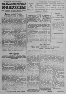Пролетарии всех стран, соединяйтесь! 1аШте$иж скЫ К О Л ХО ЗЫ О р г а н С е в е р н о г о Р К В К П (б ) и р а й с о в е т а д е п ут ат о в т р у д я щ и х с я Н о в о с и б и р с к о й о б л а с т и Товарищи молокосдатчики! О р г а н и з о в а н н о проведем месячник усиленных темпов сдачи молока госуд а р ст ву . С д е л а е м и ю н ь решающим в досрочном выполнении годового плана. ЧЕТВЕРГ 25 МАЯ 1950 г. ¡№41 (1233) Цена 15 коп. Дадим нашей Родине больше м о л о к а и масла Колхозника сельхозартелей им. Карла Маркса, им. Кагановича, «Верный путь» и им. Демьяна Бедного обратились ко всем мо- л во о м кос о да п т р ч о и в к е а д м ении район м а ес с яч п ин р к и а зыс 1-го июня по Сое июля 1950 года усиленной сдачи молока государству. Сдать за период м то е в ся г ч о н д и о к во а го не пл м ан е а не —е в 3 от 0 пр к о а ц к е у н ю задачу поставили перед собой инициаторы месячников в честь первой Сес ии Верховного Сове-) та СССР. Райисполком и бюро райкмо а ВКД(б) одобрили инициативу колхозников о п р о в е д е н и и месячника и седателей хозов, ных ор с г ек ан с р и е е л т за ь а ц с р о и о й в е б е й я т з о ал в, и пар п т к и р о е й д л провести общие собрания колхозников и с с у х д о и д т ы ь гра п ж у д б а ли н, ку н е а мы к е отор с ы е х го о д б н я о с г я о б с ч р у н а д и щ к а е р н у свт и си у я л и е к н а в н ж к о л й д ю ым ч с и да ть ч х и с оз я яй м в с о т л в о м о к м е а рай Д о л н я а. увеличениянадоя молока, райисполком о ти р и ган р и е з к ов о а м ть енд п у и ю од в к т р о ж р а а м й р к к к у о ие м ск п д о н а т и р а с л т в ы ос е р у ж е т е х о ск чн о к ш у р е ат ю н н н у п о ю й ас д ть о б й т у р ку ав и о к й о т р , р о е в к х . р -ч у е г Председатели сельских Совет га о н в и , з с а ек ц р и е й та с ри аг п и а тк рт о и л й л н е ы кт х ивам ор и с о о б в я о з -р на а ы зъ ш я и с р ни ок т о ел р ьн аз у в ю ернуть ра м бо ас т у среди населения за досрочное выполнение плана сдачи молока д к у ак ал Д ь о н к ы о м л н и х а о ч з а с а л д м а и ат , чи т м к а ес к а я м ч и н и и . к и а нди н в а и д о во всех колхозах организовать лагерное содержание скота, у т д о с у р т к ы т р е и а в н н м и о е с т т ш ь и а . ю вс т С е д п н е ов л е а ы д т о ш ь с е т и н ат и ю ю к н и ь , пр р к е о о шающми месяцем в досрочном в с ы т п а Н о в л е к с н ма о е м н н и м е и о н л н о о о к б а я . за эт т а ель и с н т и вп ц о иа п ти о в а найдет горячий отклик среди модокосдатчиков нашего района. Она проходит под лозунгом: «Дадим больше молока и масла нашейлюбимой Родине!» Поддежр ивая инициативу по проведению месячника райком п ю а т рт в и с и ех и м р о а д й о и к с о п с о д л а к т о ч м ико п в р р из а ы й в о а н а Припять активное участие в этом патриотическом дело—досрочного выполнения своих обязательств по молоку перед государством. Честно отнестись *« своему обще б с е т д в и е т н ел н я о ми мудо в лг с у оц и иа в ли ый ст т и и ческ п ом о соревновании с трудящиимся Куйбышевского района. ОБРАЩЕНИЕ колхозников сельхозартелей им. Карла Маркса, им. Кагановича, „Верный п у т ь “ , им. Демьяна Бедного ко всем колхозникам,колхозницам,рабочим и служащим Северного района ДОРОГИЕ ТОВАРИЩИ! с в т од и и П ч т е о е с л д к ь о с й т р в у о к м о п в а т о р д о с т в т а и в р о и и м щ ,по а д С к т о м а м л у м д и р н у ы н а м и , с в н о е о в г рш о ет а ск ет с и т й в ал ы и п н н о с а л р к н о о е г д н о ие у п сп я п е т о ш и сл л н е е о в т о н е е з н г а о пла М н ы а. , колхозники сельхозартелей им. Кагановича, «Верный путь», им. Карла М