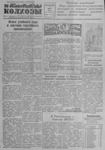 Пролетарии всех стран, соединяйп.есь! К О Л Х О ЗЫ О р г а н С е в е р н о г о Р К В К П ( б ) и р а й с о в о т а д е п у т а т о в т р у д я щ и х с я Н о в о с и б и р с к о й о б л а с т и Итоги учебного года в системе партийного просвещении Бо л ьш е ви с т ск а я партия всегда бились организованного оконча- придавала большое значение ния учебного года в рс зул ьтапропаганде маркси зм а-л енини з ма, «Нужно признать к а к а к с и о м у , — учит товарищ С т а л и н ,— что чем выше политический у р о в е н ь 'и марксистско-ленинская сознательность работников лю бой отрасли государственной и па р тийной работы, тем выше, плодотворнее сама работа, тем эффективнее результаты работы, и наоборот,— чем ниже пол итич е с к и й уровень и ма р к си с т ск о - лени нска я сознательность работн и к о в , тем вероятнее срывы и провалы в работе, тем вероятнее измельчание и вырождение самих работников в дел я г -кро хо - боров, тем вероятнее и х перерождение». К о мм у ни стич е ск а я партия в е дет громадную работу по идейному вооружению н а ш и х кадров, .по пропаганде идей марксизма- ленини зм а среди ш и р о к и х масс т р у д я щ и х с я . Работа по идейно-теоретическому восп и танию коммунистов и беспартийного а к т и в а п р и н я ла в наш ей стране широкий размах. Системой партийного просвещения охвачены миллионы к омм у ни стов и беспартийного актива. В ны н еш н ем учебном году, в отличие от прошлых лет полит и ч е с к а я учеба в системе п а р т и йно го просвещения ведется более о р г а н и з о в а н н о . . Системой партийного просвещения в н а шем районе было охвачено более 3 0 0 коммунистов, 72 комсомольца и более 9 0 б е спа р тий ного советско-колхозного а к т и ва. Большинство пол и ти ческих ш кол и к р уж к о в выполнили свои учебные планы в установ ленные сроки и провели и то го вые занятия. Итоговые з а ня т ия помогли за крепить слушателям полученные знания, выявить у с п е х и каждого слушателя в учебе и определить, где каждый к омм у н и с т будет з анимать ся в новом учебном году. Хорошо и организованно окончили учебный год слушатели политшкол Чебаковской территориальной парторганизации (пропаганди ст тов. В и г и л я н - ский, секретарь т. Б ы к о в а ) , парторганизации колхоза « Б о е вик» (пропагандист тов. Г л а - маздин, секретарь т. Назарюк); к р у ж к о в по изучению Истории В К П ( б ) : в с. Б и а з а (п роп а ган дисты тт.Кемелев и П у т и н , с е к ретарь т . Иванов),в с.Останинка (пропагандист тов. Кириллов, он же секретарь парторганизации), в Ново-Троицкой парторганизации (пропагандист тов. М у хина , секретарь т. Бы к о в с к и й ) . Пол и тш ко л а и к р у ж к и , в ы ш е у к а з а н н ы х парторганизаций.доте партийного отношения к этому вопросу секретарей парторганизаций и пропагандистов. За н я т и я проводились на высоком идейно-политическом уровне, был установлен си ст е м а т и ч е с кий контроль за посещаемостью и учебой слушателей. Слушатели этих политшкол и к р у ж к о в тт. Миронова, К а за н цева, Иванов, Язйков, Белая, Любашина, Бы ков с ки й , П у ч к о ва, Гл у щ е н к о , А ник ин , Д ь я ч у к , Залинп а и друга.» :хорошо у св о или пройденный материал, п р и обрели необходимые на вы к и р а боты над к нигой. Ка ж д а я партийная о р г а н и з а ция располагала всеми необходимыми условиями для того, чтобы организованно вести п а р тийную пропаганду, /полностью выполнить учебные пл аны п о литшкол и к р уж к ов . К сожалению, отдельные политшк