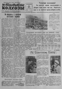 П р о л е т а р и и ес.ех с т р а н, соединяйтесь^ заШтеШтсШ К О Л Х О З Ы О р г а н С е в е р н о г о Р К В К П ( б ) и рай с о в е т а д е п у т а т о в _______ т р у д я щ и х с я Н о в с с и б м о с н о й о б л а с т и Не медлить с началом заготовки кормов Сокет Министров СССР и ЦК с н ж В т и К а в и 1 я е 1 н ( « б и н О ) ы з х в п а г р о п п о т р в р о е и ов д д н е о у я н к к т и т о о и м в с у е п в б л о о ь с с р 1 т к к а 9 о 5 н х и о 0 о в у з л р я г о е й о д н но о у г с » о ть п ж од и о ч в б е о е р с т к н п и е о ч в ва е о н ю д и т с я тв о а с о о б б к щ у о е р ю с м т в а в а м е ж и н с с П т т а в а о р ва т н т и и р я е еб и у п ю с р о о т в и е з л т в и с о к к д о в с е и т д ва ир п о р к в о а ав р т м и ь о т в о е т л в ь Колхозах. низ П а е ц рв и и и ч н н а ыше е го пар р ти ай й о н н ы а е вм о е р с г те а с агитаторами, л р е а н з и ъ й яс к н ол и х т о ь зо к в олх о ч о б л я з е з н н а и а н м ы к и ам ш п и п о р р о с а к та в о - новление'СоветаМинистров СССР ж и гр а а Ц я м К м и у В з К п а П р го о ( в т б о е ) в д , е ок н э и т я у с у е бо б ль о е с р в к к у о и ю хо у з п р я р й о о ственных продуктов в 1950 ГОДУ- нит Н ь е , об ч х т о о ди в мо це п л о я д х робн п о о р о а щ з р ъ е я ни с я г з о а тов п о е к ре с в е ы н п а о а лн з е а н к и ла е д п к л и ано си в ло з с а а р п е о к лн о е м нн е у дн ю ует к ся олхо к з о н л и х к о а з м а и м р з а а бо вы ту , за уборку сена и силосование кормов сверх установленных норм д п н ро е и О й зв б в е од с д и п в е т о ч ь й и н т н о ь м ачи р с а л з о м е б е н щ р и е е е . с т т р вн у е д н о ы й с с к у о да С т р е с к к т р о в е р е т н м а а н р м о ь и й — Ц ' К д в е а л ж о н В о б К с о П т ль и ( . ш б) ой Н г . оС. с Х к р о у го щев н о а блас п т л но е г н о уме к М ом ос и к т о е в та ВКП(б) говорил: «Уборку сена надо начинать своеврмеен о. В т ш е а е н ж н и н а я о . , н . а ч . т л о З у б а г ы а с х ж т а р т а в ы в е а п с е б р р ы и ок л о и д а уб ц с о в к р е о ки сена надо так же бороться, как и за сжатые сроки уборки х чи л т е О ба п к . о о з с да ит т ь ь с не убор се к н о о й , — а это су з х н у а ю т мщ р ы е а с е в т у в ц , а е э н и т н о ы а з р ы е о а м ч п а и т и т т с а е т п н л о е а. т ь е н С р ы е я н е т о ь до с в л а е жно иметь запах цветов». Важнейшая задача каждого правленияколхоза, председателя и в к е о р в б н о р у д т иг ь св а т д о к и в о а р с т ь ь а б с у я нем т у р е к а д в а л з . е а н н н Н и о а е д м о р т р а о у з варища Хрущева о том, что травы должны быть скошены на лугах в период цветения.А сейчас уже настала такая пора. Травы на лугах цветут. Сейчас л н у о ч г П ш о р и к о е о яв рм с л р а я о я к и з и а в б и з о т аг а ту о м т и о н о в б н к о и г у о к в р с е е е п т н л оч е а. н х и оз и а ко и р м м . ово К й ал б и а н з и ы н , а ч и ле « ны Пут к ь олк социализму» по - настоящему развернули мов, где зал с о и ж л и о л с и овани п е о 3 к 5 о -4 р0 тонн силоса за первые два-три дня работы. А колхозы им. Крупской, «Красный Октябрь» н н не и ос я т т , ь н о ю о ль и ко и н н н в е е ен н п т а о а ч д р а г л о ь т и о и вил с с и и и л л о о с с о п н в о ы а л е траншеи. л м м е о о в т в О в ой т о б р с ы т и б а т т в а е ь а з ль н ы н и н е о я е я в в д л с о з о я л е а с ж т т г н о с о я о я то н . и в е г ке Н л а е в к у н к о д ы о р о м р в препятствиемк быстрому росту поголовья скота и повышению его продуктивности. з д я а й н Р и ст я а в й а п он о д н о ы в с й е и л л, от с п д о я е в л а ти н д и с н ю е е л в ь н с ы и к е о с г е о з х н а о о кошению каж эму колхозу. Эти з н щ а ы и д м а к и н а и ж со я д д бр ым ол а ж ни н п я ы м ра и в б л ы е к т н ь о и л е х м