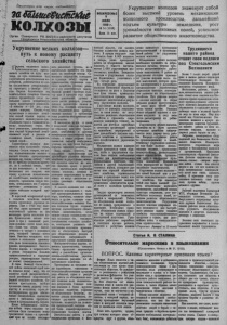 ^Р ? ./1е1паР ии всех стран, соединяйтесь•! заШбше&итские К О Л Х О ЗЫ Орган Северного РК ВКП(б) и райсовета депутатов трудящихся Новосибирской области ВОСКРЕСЕНЬЕ 9 ИЮЛЯ 195 0 г . Я 54 ( 1 2 4 6 ) Цена 15 б о н. Укрупнение колхозов знаменует собой более высокий уровень механизации колхозного производства, дальнейший подъем культуры земледелия, рост урожайности колхозных полей, успешное развитие общественного животноводства. в&з Укрупнение мелких колхозов— путь к новому расцвету сельского хозяйства П я х н оз ск о и в, х е н с х р о а е б о в с з п я о т у д й в т е ь с н т м н в с и и о л н ч ц л а и е и с а о к л н п и и о х у з в т м ь а к м р е е к б л о с ы к т л л о ь и м р г м е у л в у о б п п р о о е о ч р с т а л е о й е в м ш д о , с р и т о м р в т а и у в р я н е м в о в о з л н о р ю а к е ч ц т в н и я о ы о б л н м р ю н е ц ы п и м о он с 1 п н в 9 е о о 17 года. Партия большевиков под водительством товарища Сталина з р во а е е ш д в и а а л н ч а и у я п т р р о у л в д л е н т а е а с й р ти ш ск у о ю й ис р т п о е о в р с о и л л е ч ю е ц ск и з у и а . ю з « ы В ва т е е т чени т е овар 8 и —щ 10 Ст л ал е и т н ,— ,—у -м к ы а о с с т у в щ е ес н т а в ш и е л й и в стр с а ел н ь ы ском пере х х о о з д яй о т б с ск у т р о ья ж м н у у с , а к з о н г к о о о г л о с х т о р з и о н я н о д м к и у в с и о д ц у с и а т а л р л ь о и н ю с о . т - и кр ч е е Э то б с ш т ы а в я е л н а н с р ы т е а й в ры ол й с ю т ц р б о и у я й р , ж л у в и за к н в д ы и е й д р и е р х в о о н в з е я ав й и с ч о е з с Х д ки а а й р вш ак а с т я т е р р о н и й» о з . в у ы я й в , ели с к о у ц ю иали ж ст и и з неннуюсилу колхозногостроя, т то о д вари к щ олл С е т к а т л и и в н иза г ц о и в и ори о т к , аз ч а т л о ся ме в высшей степени прогрессивным методом не только потому, что о я н н, не но тр и еб о о с в о а б л ен р н а о зор п е о н т и о я му к , рест ч ь т о он дал возможность в течение нескольких лет покрыть всю с м м т и о р ж а н х н о о с у з т я ь к йс р п у т р п ва и н м м ы е м и, н и и и т м ь к ею о н л щ о л в и е у м к ю и тив т в н е о ы х зн м и и к ч у е , ск и и с е поль д з о о с в т а и т ж ь ен вс и е я ' а и грон д о ат ь д ст у р к В а ц н и е к и о . р п о об тк ол и ь й ше ист то о в р а и р ч н е о ск й ий п ср р о о к в сельском хозяйтсве нашей с р во т е й м р е ан н сб ыы о . р п У р з о ж е и р е з н о в а шл п 1 и р 9 е 1 в о 0 ы гр с о г и м о л д н у ые д в о а п р л е е о волюционный уровень на два д м р о о и в с л л . л о и П а р в р о д и а т з р в и т о р д и с с с т т в а о по м л и о х л в л и л о и но о пк й н а ов р п в а у о з з а, с л н т ь е и н ч — а н -в б и о о к л л е а о е —в к ч н е ч а м е — т п ы оч р в т е т и р с о в е д , п в о о л е о , п в о ш и д н с е о р о л й раза, сахарной свеклы—почти с х в т о д з в в а н о о е г . д о а В л и ы а с в с о о о к з в м а хо о я з ж т н н о о о в г с а о т р ь нос п п т р о ь в о ы из с к в и о о т д л ь с ур то о я в н е и н я ь н м а а р т о е д р а иаль и но с г о о сред б о л т а о г ч о и с т о ь в руках государства большие продовольственные и сырьевые резервы,гарантирующие страну от всяких неожиданностей. в но а й В п в ок о го й а д н з ы ал ы к в о с В л е е м х л о у и з к н о ы й м й и О с р т тр у еч о , й ч ес т с т о н ве о о н н являетсясамой жизнеспособной, самой устойчивой общественной в ф е о т р с м к о о й е сел к ь р с ес ко ть го янс х т о в з о я , йст г в лу а б .С о о к о п м д р о а е о р д т ст а ве в н р н у ж о и е е нн с к в ы о о л м е х м о у т з р н у о р д о м о д у м но с м т у р о о б г ю е о с , с п с у а е чивало бесперебойное снабжение с н а т р и в м я и П и е о и в м с о л й и и е н п ы р п о н о м а б с ы п 