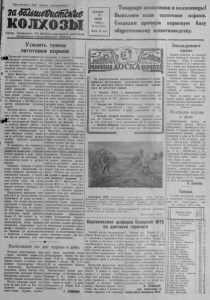 Пролетарии всех стран, соединяйтесь! ^Шш^иетсКЬе колхозы О р г а н С е в е р н о г о Р К В К П (б ) и ра й с о в е та д е п у т а т о в тр у д я щ и х с я Новосиби рской о б л а с ти Усилить темпы заготовки кормов ф г^кТрехлетоий план развиитя об- lfЦ)C н во о т т в н в e о ы в н п о н д о с л o т н г в е o а н м п л о и р ж о ш д е ь т укт п б и р ы в и т н ь ог у ус о с л п о ж е в ш и ии с з о ы зд С а в о н в и е к т о я л М п хо р и о з н а ч и н х с . о т й ров кор С м С о С в Р ой и б Ц аК ВКП(б) в своем постановлении «О проведении уборки урожая и заготовок сельскохозяйственных продуктовв 1950 г.» уделяют особое внимна ие выполнению п ча ла ла на у з б а о г р от к о и вки уро ко ж р а м я о . в Б д о о льш на ое д т зн а ае а т ч М с е я н и и ни е с м т в е р х о а п н в о и и ст за а Ц н ци о К в и л В е К н Н и з и ( а б го ) С т п о о в р в к и е и ю н ко ы т р х К м у о о в л у с . х г е о о б з д я ы ий, н до а о с с ш т о а б е т е г о н ч о н н о о ра в йо с н н е а ы но н и е к м о ш е с - ,м году, в связи с укрупне- го * , ем кол с х ел оз ьх ы оз н а а р ш те ег л о ей. р К а р й о о м н е а эт з оа этот год приобрели значительное з к ш а о и м л н и . ч в е Б с з т о а в л го о ьш то у с в ю е к н е оу к п б о о о р м р м о о о щ ч в ь ны д х о к л о ж л м н х ы о а оказать машинно - тракторные станции. К сожалению, все имеющиеся возмжо ности колхозы нашего района не используют. Сеноуб<ь р зо о в чны в е ра м б а о ш ту ин н ы е в вк р л я ю де чены к . олх Н ое используются также и ручные литовки. л н к ве я о е е т в н о О о т в с и д с и я н и о л т п в е о у н л л ж ч е ы ш а и й н м д е а а г к н о о и т л с е о т х е р р о н м з а о н о в о к в о з е о о с к ш м т о о е я и т н в о и и с я р в е ы л ы л п ь хр у с я о у ч о в л шей погоды, тогда как трава уже полностью созрела и погода в н п о о к П л о н р с е е в дс п е п о д о зв л а н о т л о е й я л е ь т м п е р р р а аз е в . л ве е р ни ну я ть к с о е л хоза им.б-гр съездаСоветовтов. я П щ ри ем ем у н , ик ч о то в з н н е ач п и о т ня сво л е п в о р - е н м а е с н т н о о приступить к заготовке кормов. Сенокосилкив ход не пущены. Из 230 человек трудоспособных на заготовке кормов работают только 57. Это говорит за то, что в колхозе, руководимом т. Приемниковым, низка трудовая д ж и ен сц и и е пл с ин с а ен . о А ко н с а ом лгои и чно в е ко п л о х л о о з е им. Жданова, где председателем т. Харитонов, 4 сенокосилки до сих пор не работают, хотя они исправны и лошади в колхозах вполне работоспособны. н хо е зо Ч н в т а о ч « а д О вш у бо м и р й а о ю на е т » щ пр е т е о д в с с . ед е а С но а те к п л о р и с ы а г , к и о н л , и им. Крунской т. Блинов,который н це а нт 10 го и д ю ов ля ог в о ыпо п л л ни а л на едв з а аго 1 т п ов р к о и грубых кормов, скосив 7 га. м п о о в л Н н е к е у ин д к о е о в л п ле х л т о а з в н о а а р х и с т н и е л а о л ш ь с е н о г в о о ан и и д р я ет а к й о в он р ы а . з У а с х ло в в е и ро й я п т о н г о оды од во ин в ка с о е вы х е, кол т х е о м н ки е м ещ ен е ее до мно в г ы и п е о к лн о е л н хо и з я ы д п а л л а е н а закладкисилоса. Если 4 колхоза и н з ия, 31 та в к ып 9 ол к ни ол л х и озо пл в ан как си , л и о м со М. ва о - лЬтова, им. Тельмана, «Новый путь», им. Буденного, «Борьба за мир», им. М. Горького, им. Калинина,им. Жданова и им. г н 6 о и - г л о Н в и р а с е д м ъ е о е е г з з н о и д н а а з т и а ь С го н , ов т а ч е п о т т о о в о л в к о ч и в а к и о с н н р т у е м ь . о в л в у ы у ч п ш ж ол е е упущена колхоазми. Сейчас его н м е о й ж ш н и о м н т ав р е у р д с о т м а , т и ь зо тол д ьк ня о в уп д о ен р ь работаяот зари до зари. к ви а д м С и и е р й о с в 
