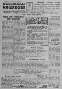 П р о л е т а р и и всех с т р а н, с о е д и н я йт е с ь ! заЩишеЯитскЬе КОЛХОЗЫ О р г а н С е в е р н о г о Р К В К П ( б ) и р а й с о в е т а д е п у т а т о в _____ т р у д я щ и х с я Н о в о о и б и о о к о й о б л а с т и ЧЕТВЕРГ 10 АВГУСТА 1950 г. №63 (1255) Цена 15 коп. Х л е б о р о бы Северного р а й о н а ! Развернем социалистическое соревнование за быстрейшее проведение у б о р к и урож ая . Б удем убирать х л е б всеми средствами, при любой погоде. К о л х о з ы „ В т о р а я п я т и л е т к а “ и „ Н о в ы й п у т ь “ п е р в ы м и к с д а ч е х л е б а г о с у д а р с т в у Убирать хлеб в любую погоду всеми средствами о с н т а в К е о н в н л с х ы т о у й з а ы и п л е и и рио М в д ТС с с а н е м а л ы ш ь й ск е о г х о о о т з р я в а й ет й ственных работ. Многое сделали колхозники и колхозницы для того, чтобы вырастить хороший урожай. В н ы и р к а о щ в е э н т н о ы т й уро у ж си а л й ия до м л и же к н ол б х ы о т з ь убран во-время и без потерь. Нужно помнить указапие тов. С зо т н а н л о и е на и , о ч н то а у н б е ор л к ю а б —ит дело жда с т е ь .' «Убрал во-время—выиграл.Опоз- д э а т л ом в у се у й б ч о а р с ке— во п в р с о е и х гра к л о ». лхо П за о х л д о о , лж ч н т о обы быт н ь е т о а ж к ид п а о я ставле х н о о ро д ш е и х солнечных дней убирать хлеб в любую погоду. Промедление в о г ж у и б д и а т ни м и но хо иг р е оше со й тни по и годы тыс п я о ч и пудов хлеба. Публиукемые сегодня сведе ния о сдаче хлеба государству колхозами «Вторая .пятилетка» (председатель колхоза тов. Оси д В п а е о т р в е х ) л , - ь Кр « а к Н с о о н л в о ы я х р й о с з к а о т п г о о у в т . ь» с Ш ел а ь ( т п с о р о х е в и д е н с т е ) а свидетельствуют о том, что там, где по-настоящему, с первых дней уборки, несмотря ни на какую погоду, развернулась борьба за хлеб, там налицо и успех. Для тех, кто стремится во-время убрать урожай, кто в з п е а р т о с т н т о в и ,ч е к н т с н я об ос ы г т л и у д б з о о а с к р и о с ч у м д но ь ч бу р у а вс с у т ч р в о и о т ж м а а о т я ь т , с го я да Т с а н к е г м я о о с в г у л у д я т а е р т с и т с в я о д п о м о лж м н е н и х ы к о а й к у . а б я ир п ат о ь и сдавать хлеб госудраству все колхозы вашего района. Однако многие руководители колхозов все еще ждут когда созреет хлеб на всех массивах, когда устанвоится ясная солнечная погода. Ведь только расчетом н яс а ни хо ть рош т у а ю кие пого ф д а у кты м , ожн к о ог о д б а ъв колхозе «Красный Октябрь» (председатель колхоза т. Багров) н б н а а е й в в н с к а е л , м ю не ч м с е м а н с о с ы т и р в в я е р н а с б а о о з т т р у о ле , а ч 3 т и о р т о к р ж о е ь м буется мобилизация всех сил на уборку. В колхозе «Новая жизнь» (председатель колхоза т б но . у е ю Бе т» з л е о рн к) о ко т м в о о б т а ж й е у ны ж в е . се е Н 3 щ а е д м н о я л « чо п е л р н о е жит непросшу енным и не с ч д а а т н ь н яс ым д . ождю Ст , оил к о ак то в лько кол н хо а е з и щ м е . ны Каг в а с н е ови уб ч о а ро б ч ы н л ы и е п р р а е б к о р ты а, тт. Миронов, Быковский, Буг- л ко еев П н р а в а и х в д о и и р м л о н о ь ш о у р п ю а о с с ч п т и у ог п т а о ы д ю у в т . аю ко т л о х л о ь з ники колхоаз им. Молотова (председатель колхоза т. Пин- тюков). В дождливую погоду они о з н ы р у г ю в а а . н ю и т С зо ж в в а а т л у м и ю ал у с е б е н р о п ьк р а и м ку е и х с л р е н о о б ж п а и в ь р к с у в и ч я и ставят в суслоны. При такой с ж в я я а з я Д к и е ля в н о о е - н б в и ы р п е ст м л р р у я ор е ч й ш а и ш с е т е а б й п е ю з р т у . о б п в о е о р т т к е р и и рь ва у ю н р е о тобходимо принимать все меры. Нельз