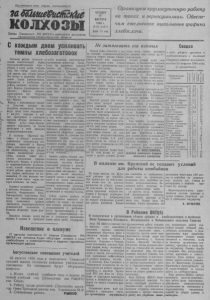 л П П рол етарии всех ст р ан, соединяйтесь! шШмш&исйшфе колхозы Орган Северного РК ВКП(б) и райсовета депутатов трудящихся Новосибирской области ЧЕТВЕРГ 17 АВГУСТА 1 8 5 0 г. Л 65 (1257) Цена 15 коп. Организуем круглосуточную р а б от у на т ок а х и зерносушилках. О б е с п е чим ежедневное выполнение графика хлебосдачи . Ъ j )) L ж ж С к а ж д ы м д н ем усиливать темны хлебозаготовок Колхозы района вступили в самый ответственный период сельскохозяйственного года,— с н у б т е е б в й з о у р . п з к о у а Н т д е е а и р т ч ь и с - , д с и а е к й ч а д ч к у о а с с х р л у о е ч б б н б о а о о р е л к е а е г в о у п с ы р у о п о д ж о ч а а л е р я т нение плана хлебозаготвоок. Первенство в хлебосдаче по р м а я й т о ь н К у и з р а о н в и а м » аю (п т ре к дс о е л д х а о т з е ы ль « т П о а в. Иволин), «Память Ленина» (председатель тов. Чикунов) «Борьба за мир» —председатель тов.^ Мишин. с д в я Н о е п д а у р у с т т я ^ и д с к м д у о о л а с ч хо м у п е з е д ы х р л , е л е д н е о н б в а ы и к м к о г а и т м о о и р с ы у т д е е и м ра м п с е а т ю в м т н и у е . к о 7 н ол е х а о в з г п ы у р с и т « а с В , т т о у р п а п и е я л рв и ы п к м я и ти х л ле ет в б к ос а» д р а а ч и й е «Новый путь»—Верх-Красно- ярского сельсвоета, но темпы хлебосдачи в этих колхозах неудовлетворительные. т к я о б м В р б ь а » й к н о е и л р х ы « оз В а т к о х о р м а с я о « м К о р л п а ь я ц с т ы н ил ы е й т т к о О а в » к . Лебедев Анатолий и Виктор б См я ык о , б в я ы за п тл о е н ь л с я т я ва в , зят н ы а е н у а бо с р е к е урожая, намолачивают столько хлеба, сколько печить выполнение может граф о и б к ес а х т т е л е е л н бо ей е с , р д а а п з ч л в и о о х . р о о й О т д л н и а в м к о а о е с , ™ со в в р о р у - е п к з о о у л л в и о ь д т т и и ат п д к ч о о о а е р ё в л с о т н , е ко с я я г е с й р к т о у а р ся п г а ф р . и и б л о о к В т о з а ы с х ь э л т п е о и б с р х н р о ч е а с и д к д и о т а л о ч х к з к о о а и е з л х р н а х . х н е о , з а с в н к о ы и о з Срывают выполнение заданий в колхозах Остяцкого, Потгока- новского, Федоровского, Ново- Елизаровского сельсоветов. Чем и но н с ы ти м, ка в к ыпо н л е н п е о н н и и я мание г м ра ва фи ж к а хлебосдачи, веразворотливостью руководителей сельсоветов и к т о ы л . х Б о о з л о ь в шу о ю бъяс п ни ом т о ь щь так м и о е гл ф и ак б ы оказтаь в вывозке и просушке хлеба колхозам шефствующие ш в о а р к л г о о а л н ы из б а ы ц т и о и в. д р ир а е й М ц кт е а о н ев р т у с * р ко а м . у с , С р л ед е з н д а е в о й . п р о ай тр ко е м б хо с з о о ю м зу т т . —. Ер З е ы м р е я е н в о у в , у, Р З ай а- готзерно—т. Рытоув оказать действеннуюпомощь колхозам, а в до а с х н т . е оя с н ч В и и е е д т ь а и ьтся н х а ле ш б у е б—ф о а в р м се к и н у а е н р г а о од д с н о л о л о е жны быть мобилизованы все с во и д л и С ы т л . е е л д е у й ет ко п л р хо е з д о у в пр о едит т ь ом, ру ч к т о о хлеб сдавтаь нужно с первых дней хлебоуборки, ежедневно выполняя доведенный график. ций З , ад с а е ч л а ьс п ик а х рт С и ов й е н тов ых ор с г о а ст н о и и з т а в нит т ь ом н , е ч до то ст бы атки нем и ед о л р е г н а н н о из у о с в т а р т а ь действенное социалистическое б со ай ре н вн е о р в о а в н , и р е або к т о н л и х к о о з в ни с к у о, ш в и к л о о м к , машинистов уборочных машин, в п о о з лн чи е к ни ов е зе г р р н аф а и за ка усп х е л ш еб но о е сда в ч ы и . М по о л б н и е л н и и з е ова в т з ь ят в ы с х е о си б л я ы зат н е а льс в т ы в, за выполнение уборки урожая к 10 сентябряг-гхлебрзаготовок к 1-му сентября.“'' г т а е н л
