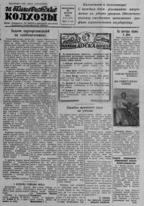 П р о л е т а р и и всех ст р а н , со ед ин яйт е сь/ КОЛХОЗЫ Орган Северного РК ВКП(б) и райсовета депутатов _____ трудящихся Новосибирской области________ Задачи парторганизаций на хлебозаготовках Состоявшийся на-днях пленум Северного райкома ВКЩб) об суждая ход уборки урожая и хлебозаготовок в колхозах района, в своём решении отметил, что уборка урожая и сдача хле ба государству колхозами района идёт крайне медленно. Отставание в уборке и хлебосдаче получилось потому, что многие председатели колхозов до пустили вредную раскачку. С первых дней уборки в косовицу хлебов не включились все уборочные машины. В ожидании просушки зерна ^ в снопах не организовали сразу же обмолот и хлебосдачу. В результате в колхозах необслуживаемых МТС допущен большой разрыв между косовицей и обмолотом. В колхозе «7-й съезд 1 Советов» (председатель т. Мо- сиявич) по итогам на 15 августа скошено 31 проц. уборочной площади, а хлебосдача только 0 ,8 проц. к годовому плану, в колхозе им. Буденного (председатель т. Гламаздин) уборка, по этим же итогам, составляет 25 проц., а хлебосдача 1,8 проц. Такое же положение и во многих других колхозах. Комбайны, из-за поломок и других технических неисправностей, большое количество времени простаивают, а директора МТС т. Ятис и т. Проскурнин все ещё не избавились от вредных и отсталых настроений, до сего времени не приняли надлежащих мер к тому, чтобы комбайны во всех колхозах р а ботали бесперебойно полный световой день на полную мощность. Первичные партийные организации сельских Советов, кол-^ хозов и МТС не создали нап-1 ряженности на уборке урожая] и хлебозаготовках, не развернули массово-политическую работу и социалистическое соревнование между колхозами, полеводческими и тракторными бригадами, комбайновыми и молотильными агрегатами, среди всех колхозов и механизаторских кадров. В принятом решении пленум потребовал от Райисполкома, сельских Советов, первичных партийных и комсомольских организаций, директоров МТС, председателей колхозов, немедленной ликвидации вскрытых недостатков и поставил конкретные задачи. Задача партийных организаций, сельских Советов,колхозов, МТС, каждого коммуниста в отдельности, сейчас состоит в том, чтобы но-настоящему, по- большевистски включиться в борьбу за досрочное выполнение планов уборки урожая и хлебозаготовок. Надо немедленно включить в уборку урожая все имеющиеся в колхозах уборочные машины, ликвидировать в колхозах разрыв между косовицей и обмолотом. Для чего организовать двухсменную и круглосуточную работу простых и сложных молотилок, сушилок по просушке зерна и добиться выполнения ежедневных и пятидневных заданий по сдаче хлеба государству каждым колхозом . ' Необходимо завершить строительство врытых токов, сушилок и складских помещений, организовать дополнительные помещения и приспособить сооружения для воздушной очистки и просушки зерна. Надо коренным образом улучшить массово-политическую р а боту среди колхозников и механизаторских кадров. Шире популяризировать достижения передовых комбайнеров, машинистов молотилок, машинистов уборочных машин и других колхозников через стенные газеты, боевые листки и по радио. Проводить с ними читки газет, беседы, совещания. Необходимо создать нормальные бытовые условия колхозникам и механизаторским кадрам на уборке урожая и хлебоз