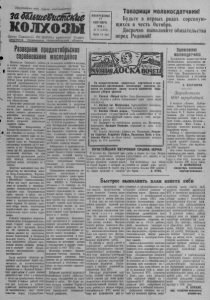 врез; с т р а н, с о е д и н я йт е с ь ] teffimeSucMatoe колхозы О р г а н С е в е р н о г о Р К В К П ( б ) и р а й о н н о г о С о в е т а Депутатов трудящихся Но восибирской о б л а с т и Развернем предоктябрьское соревнвоаине маслоделов Маслоделы Северного ра йона в начале т е к у щ е г о года взял и н а себя обязательство досрочно Щ в ы п о л н и т ь годовой п л а н пр ои зводства масла и к к онце года дать стр ане ма сла с в е р х плана . Сейчас среди работников мас ло дельной п р о м ы ш л е н н о с т и с н о вой силой ра зв ер ты ва ется предоктябрьское социалистическое с о р е в н о ва н и е . С большим п о д ъе мом т р у д я т с я ма слоделы, с т р е м я сь подтвердить делами в з я - “ тые обя зательства. Н а с т у п и л и реш аю щ и е дни з а г о т о в о к молока и пр оизв одства масла . Долг к аж д о г о с д а т ч и к а молока, каж до го за г о т о в и т е л я и ра б о тника маслозавода пр илож и т ь у с и л и я к т ому, ч тобы обесп е ч и т ь досрочное вы п олнение годово го плана. Р а б о т н и к и Федоровского и Б о л ь ш е - К у л и к о в с к о г о маслозаво- # дов обязали сь к 1 ноября 1 9 5 0 г . в ы п о л н и т ь годовой план по в ы работке масла. Н а 1 9 се н т я б р я годовой п л а н по Федоровскому маслозаводу вы полнен н а 87 п р о ц ен то в, а по Б о л ь ш е - К у л и к о в с к о м у н а 8 5 процентов. Задача п о с т а в л е н а н е л е г к а я , но п р и п р а в и л ь н о й о р г а н и з а ц и и работы в с е х з в ен ь е в з а г ото ви те л ь но й с и с т е м ы можно вы п о л н и т ь её с ч е с т ь ю . Досрочно вы п ол н и л и свои о б я з а т е л ь с т в а по за г о т о в к а м моло к а Н о в о - Е л и з а р о в с к о е , М ор о зо в - ское, К у р ч а в с к о е , Томиловское и М и х е е в с к о е с л и в к о о т д е л е н и я . С е й ч а с о ни ве д ут з а г о т о в к у м о л о к а от к ол х о зов и и н д и в и д у а л ь н ы х мол око сда тч иков в счет б у д у щ е г о года. С в е р х п л а н о в а я сдача мо л ок а и з а к у п его у к о л х о з н и к о в имеет большое з н а чение в пр о довольствен ном б а л ан се с т р а н ы . И з молока; с д а н ного с в е р х п л а н а , маслозаводы вы р аб а ты в аю т для с т р а н ы до п о л н и т е л ь н о м н о г о т ы с я ч пудов масла. У с п е ш н о за ве рш ае т молокоза - г о т о в к и Н о в о - Е л и з а р о в с к и й с е л ь совет. Годовой п л а н вы п о л н е н здесь н а 9 9 , 7 п р о ц е н т а . П очти н а 9 0 процен тов в ы п о л н и л и годовое за дание по з а г о т о в к а м мо лока Б и а з и н с к и й и О с т я ц к и й с е л ь с к и е Со веты . Р у к о в о д и т е л и 9 т и х сельсоветов у д е л я ю т з а г о товкам молока должное в н и м а ни е и с ч и т а ю т своей о б я з а н н о с т ь ю кон тролировать р а б о ту за г ото ви тел ей . Среди колхозов п е р в ы м и з а кон чи ли выполнение с в о и х о б я за т е л ь с т в п о м о л о к о п о с т ав к ам к о л х о з ы им . К а р л а - М а р к с а , и м . Во рош и л ов а и « К ра сны й ф акел». Они п р и с т у п и л и к сдаче молока а в а н с о м в счет 1 9 5 1 г . и продают в з а к у п н а пр ио б р ете ни е ж м ы х а . Однако в н а ш е м районе есть еще ря д к о л х о з о в и и н д и в и д у а л ь н ы х мол ок о сда тч ик ов плох о в ы п о л н я ю щ и х свои о б я з а т е л ь с т в а перед г о с у д а р с т в о м . К о т с т а ю щ и м о т н о с я т с я к о л х о з ы , и н д и в и д у а л ь ны е с д а т ч и к и Н а - з а ро в с ко г о , Чебаковско го и С е верного с е л ь с к и х Советов. В э т и х С о в е т а х г о д о вы е з а д а н и я молокопоставок едва доходят до 5 5 - 6 0 пр о ц ен тов . Т а к и е цифры говорят за то, ч т о руководители э т и х с е л ь с к и х Севетов и к олхо зов мало уделяют вн и м а н и я ж и во тно вод ч еским фер