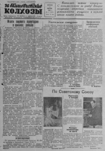 Пролетарии в с е х стран, соединяйтесь; заШте&аМснЫ КОЛХОЗЫ Орган Северного РК ВКП(б) и районного Совета ь депутатов трудящихся Новосибирской отпасти Ч Е Т В Е Р Г 11 Я НВ А Р Я 1951 г . № 4 ( 1 3 0 1 ) Цепа 15 к оп . Кончились зилшие к а н и к у лы. С новыми силами за у ч е б у ! Вт о р о е полугодие отметим повыш ением у сп е в а ем о ст и у ч а щ и х с я в каждой школе нашею района. Итоги первого полугодия в школах, района Повседневная забота сове тско го правительства, к ом мунисти ческой партии и лично товарища Сталина о развитии соци ал и сти ческой к у л ь т у р ы и народного просвещ ения приносит с каждым ^_ г (Щ )м все новые у с п е х и . Перед школами наш е го района, к а к и перед школами всего Советског о Союза, во весь рост встала задача — решительно у л у ч ш и т ь чество учебно-воспитательной аботы. К аждый учитель н а - а л ь н ы х и с та рш и х классов ерсональво отвечает за высо- ое качест во своей работы, за успеваемо сть всох у ч а щ и х с я свое г о класса , предмета. ® * уЧ 1 г о г и первого полугодия 5 1 9 5 0 - 5 1 у ч ебно го года показали, в * ч то в ш к о л а х н а ш е го района 5Г не всё благополучно. Закон о всеобщем обязательном об учении осущ еств лен недостаточно. От- сев за первое полугодие состав- л яе т больше 2 0 у ч а щ и х с я . Т о л ь к о по Северной средней ш кол е отсеялось 7 учени ков. Там , где у ч и т е л я боролись за прочные и гл убокие з н а н и я дете й , там ре зул ь та ты оказались хорошие. Полней успеваемости добились начальные школы : Т а х - тамет ьевская (зав школой тов. Н е кра сов ) и С у р г у т о в с к а я ( з а в . о школой ю в . И в к н в а ) . Это зна- / ч и т , что работ1хЬ-4еи б р а к а и добиться высоких нокатзателеи ' У чит ельское совещание I С 'у ч а щ и х с я и желания к реодолению трудностей в учебе. В о т де л ь н ы х школах в е тре / ается вредная п р а к т и к а колл е к т и в н ы х , дополнительных зан я т и й , к о торы е с н и ж а ю т роль у р о к а — основной формы о р г а н и зации о б у ч е н и я и воспитания детей. Мало уделяется в нимания планомерной, целенаправленной внекла ссной и внешкольной работе, к а к одного из в а ж н ы х ме р о п р и я т и й , направленного на повышение кач е с т ва у ч е б н о - в о с п и та т е л ь н о го процесса. В районе немало учи те л е й тв о р ч е с к и рабо тающ их в процессе о б у ч е н и я и воспитания. П р и мером м о г у т с л у ж и т ь у ч и т е л ь ница н а ч а л ь н ы х классов Федоровской семилетней школы тов. П о хлебина , преподаватель К он с т и т у ц и и и немецкого я з ы к а Сс- та н и п с к о й семилетней ш к о л ы тов. Кохтенкова, учительница н а ч а л ь н ы х классов Б иа зинской семилетней школы т. Масис, у ч и тел ь ни цы т т . Алексеева я Таболова из Северней средней школы. / К сожалению, не все р у к о в о л дителв школ и з у ч а ю т в деталях ] систему преподавания уч и те л я ^ 1его приемы и методы. Не обобщ а ю т и не внедряют ц ен ны й передовой о п ы т . Деловую помощь учителям о ж е т к а ж д ы й у ч и те л ь , " ^ к а ж д а я о ка зы в аю т кустовые методические объединения. Но они до с и х пор не работают при Ново- Т роицкой и Прибединской сем и л е тн и х школах и Северной ш к о л а . Далеко не т а к обстоит дело по остальным школам района, В Остяцкой сем плетней школе (директор т о в . Чадков) у с п е в а е мость у ч ащ и х с я 7 3 , 7 проц. Б Останинской (директор тов. К и р и л л о в ) — 6 6 про ц . , в Образцов- с к о й на ч а л ь н о й ¿заведующий школой тов. Подборный) — 66 проц. и в Северной средней ш к о ле (директор тов. М а е в 