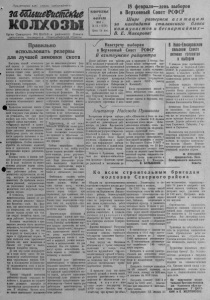 Пролетари и всех стран, соединяйтесь; "ЗйШ ы ис^ит снЫ КОЛХОЗЫ О р г а н С е в е р н о г о Р К В К П ( , б ) и р а й о н н о г о С о в е т а д е п у т а т о в т р у д я щ и х с я Н о в о с и б и р с к о й о б л а с т и В О С К Р Е С Е Н Ь Е 11 Ф Е В Р А Л Я 1951 г. 36 13 ( 1 3 1 0 ) Цена 15 кои. 18 февраля— день выборов в Верховный Совет Р С Ф С Р Ш и р е развернем а г и т а ц и ю за кандидат а сталинского блока к о м м у н и с т о в и б е с п а р т и й н ы х— В . Е . М а к а р о ва ! Правильно использовать резервы для лучшей зимовки скота □ г О 3 ' Наступил самый ответственный период в проведении з и мовки скота в колхозах. Животноводы строят свою работу на фермах так, чтобы наиболее успешно закончить стойловый период и подготовить скот к пастбищному содержанию. Наступивший 1951 год кол хозные животноводы начали иод знаком широкого развертывания социалистического соревнования за выполнение годового плана развития общественного ж и во т новодства. Правления колхозов вместе с ооветспециалистамн с первых дней т е кущего года должны б ы ли установи ть, что еще надо колхозу для того, чтобы в ближайшее время выполнить по- с.ТЕВленную партией и пра ви тельством задачу о трех летнем плаве развития животноводства. Необходимо учесть все возможности прироста поголовья и н е достающее количество скота з а контрактовать. Особое внимание обратить на состояние кормовой базы н правильное, экономное расходование кормов работниками ферм. Зимовка скота в нашем ра й оне проходит неудовлетворительно. В ряде колхозов з а период зимовки допущен падеж скота, оотехнические и ветеринарные работники района н е достаточно осуществляли, до сих пор, контроль за содержанием ж иво тны х . Ие требовали выполнения указа ний, направленных на укрепление кормовой базы, вследствие чего допустили перерасход кормов. В основном, успех развития животноводства зависит от л ю дей, которым доверено колхозное богатство— скот. На фермах, где животноводческие кадры закреплены, нет те куче сти , у с п е х и гораздо лучше чем там, где кадры меняются часто, где люди работают безответственно. Бо л ьш и м недостатком в проведении зимовки скота является небрежное, бесхозяйственное расходование кормов. До сих пор ва фермах не приступили к з а парке и сдабриванию кормов. В ряде колхозов сено продолжают бросать под ноги животным и больше его уходит в навоз, нежели поедается скотом. До сих пор плохо и с п оль зу е т ся в корм скоту силос. Не в ы полняются зоотехнические п р а вила чередования кормов. Сей час в большинстве колхозов с к о т у скармливается сено, а на к о нец зимовки останется только с и лос. Однако старший зоотехник районного отдела сельского хо зяй ства т. А г р ы з к о в не осущест вляет должного контроля за пра вильным расходованием кор мов. В колхозах бывает мало не знает настоящего положения дел на животноводческих фермах, больше отсиживается в к а бинете. Подготовка животноводческих кадров на к у р с а х трехлетнего обучения колхозников проводится крайне -неудовлетворительно Из 18 зоотехнических курсов при колхозах работают с перебоями только 10. Остальные сущ е ст вую т формально. Не все зооветспецпалнсты серьезно от носятся к порученному им делу — обучению колхозных животноводческих кадров. Заведующая курсами тов. Бердоносова не обеспечила повседневного контроля а не потребовала регул ярно го проведения занятий по о б с ч е т » колхоз