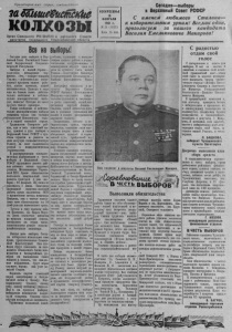 П р о л е т а р и и в с е х ст р ан , с о е д иняйт ес ь ! заШ тевиеШ ке КОЛХОЗЫ Ор ган С е в е р н о г о Р К В К П ( б ) и р а й о н н о г о С о в е т а д е п у т а т о в т р у д я щ и х с я Н о в о с и б и р с ной о б л а с т и С е г о д н я — выборы в Верховный Совет РСФ С Р С именем любимого Ст а л и н а— к избирательным у р н а м ! В се ,к ак оди н , проголосуем за нашего кандидат а В а с и л и я Емельяновича М а к а р о в а ! ВОСКРЕСЕНЬЕ 18 ФЕВРАЛЯ 1951 г . № 15 ( 1 3 1 2 ) Цена 15 к о п . Все на Сегодня день выборов в Вер- х оввы й Совет Р о с с и й с к о й Советс к о й Федеративной С о ци ал ис ти ч е с к о й Р е с п у б л и к и . Выборы в наш ей стр ане — радостное всенародное то р ж е с тво . «Это, — говорит то варищ С т а л и н , — действительно всенар одны й п р а з д н и к н а ш и х рабоч и х , . н а ш и х к р е с т ь я н , наш ей и н т е л л и г е н ц и и . Н и к о г д а в мире еще не бывало т а к и х действите льно свободных и д ей с тв и тельно дем о кр а ти ч е с ки х выборов, н и к о г д а ! История не знает д р у го го т а к о г о примера» . Т а к и е свободные я д е й с т в и тельно демократические выборы возможны то ль ко под солнцем ^ С т а л и н с к о й К о н с т и т у ц и и , то ль ко в наш ей советской стране. Трудящиеся Северного р ай о на , к а к и весь с о в е т с к в й н а род, п р и ш л и к дню выборов в В е р х о в н ы й Совет РСФСР с ч у в ством гордости и радости за свою м о г у ч у ю с оц и ал ис т ич е с кую Р о д и н у , за свои выдающиеся у с п е х и в к о м м у ни с ти ч е с ко м строительстве . В разверн увш ем ся социалис тическом соревновании в честь выборов в В е р х о в ны й Совет РСФСР тр удящ и е ся наш его рай о н а добились н о в ы х тр удовы х у с п е х о в . М е х анизаторы Т а р т а с - с к о й МТС брали обязательство в ы п о л н и т ь к в а р т а л ь н ы й план ремонта тр а кторов к дню в ы боров— 18 февраля. И х слова не ✓.л. р а з о ш л и с ь с делом. Благодаря проводимой политико-массовой работы среди к о л л е к т и в а МТС н п р им е н е н и ю метода и н ж е н е р а Ковалева, ови с ч е с т ь ю в ы п о л ни л и свои обязательства на 1 0 дней ра н ьш е намеченного срока . Готовы к севу к о л х о з ы имен и К а л и н и н а , им. Карла М а р к са. Здесь полностью доведены до н у ж н ы х к о н д и ц и й семена, п о с тав ле но н а о тды х тя гл о , з а к а н ч и в а е т с я ремонт сельскох о з я й с т в е н н о го и н в е н та р я . Настал день выборов. Сегодн я избиратели и с пол ь з ую т свое п раво , предоставленное С та ли н с к о й К о н с т и т у ц и е й . Они сво- ’■ бодео б у д у т голосовать за к а н дидатов с т а л и н с к о г о блока к о м м у н и с т о в и б е с п а р т и й н ы х , дов е р я я им вы п о л н е н и е своих н а к а з о в и надеясь, что о н и , н о вы е и з б р а н н и к и , будут верно с л у ж и т ь народу, к а к у ч и т вел и к и й Сталин. Верность п ар ти и с о в е т с к и й народ олицетворяет в бе з гр а н и ч н о й любви к Иосифу В и с с а р и о н о в и ч у С та ли ну , своему о т ц у , своему любимому у ч и т е л ю . К а к и н а п р о ш л ы х выборах, Избиратели повсеместно в ы д ви н у л и то варищ а Сталина своим п е р в ы м всенародным кандидатом. Труженики колхозных полей, выборы! рабочие, с л у ж а щ и е и и н те л л и г е н ц и я н а ш е г о района с и с к л ю чительным воодушевление* и единодушием отдадут свои г о лоса за л у ч ш е г о с ы н а нашей Родины — заместителя Министра Государственной Безо пасности— Василия Емельяновича М а к а рова. Био графия кандидата в деп у т а т ы Верховного Совета РСФСР Ва силия Емельяновича М а к а р о в а— наглядное свидетельство дух
