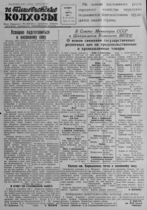 П р о л е т а р и и в с е х с т р а н , с о е д и н я йт е с ь ! тШыие$исШс(&е КОЛХОЗЫ О р г а н С е в е р н о г о Р К В К П ( б ) и р а й о н н о г о С о в е т а д е п у т а т о в т р у д я щ и х с я Н о в о с и б и р с к о й о б п а с т и _ Успешно подготовиться Отеческая ской партии о дальнейшем ганизационно-хозяйственном у к реплении колхозов вдохновляет колхозное крестьянство на самоотверженный труд. В минувшем, 1 9 5 0 году валовой урожай зерновых культур превысил уровень довоенпого 1 9 4 0 года. Больших успехов в повышении у рож ай ности добились колхозы и н а шего района в 1 950 г. Высокий урожай имела сельхозартель «Вторая пятилетка». Получение высокого урожая позволило колхозам досрочно рассчитаться с государством по зернопоставкам. Но успехи достигнутые в прошлом году надо прочно закрепить , и в текущем году у м ножить Для этого необходимо каждым колхозом выполнить план зимних агромероприятий. Однако, в большинстве колхозов нашего района, семена не доведены до посевных кондиций. В сельхозартелях им. Молотова, «Память Куйбыш ева», им. К а гановича семена не очищены от сорняков, имеют повышенную влажность, и тем не менее, это не беспокоит и руководителей колхозов и колхозников, несмотря на то, что весна уже не за горами. Предстоящей весной вся п л о щадь зерновых к ул ь т ур должна бы ть засеяна только сортовыми семенами. Колхозы, не имеющие сортовых семян сейчас обязаны начать обмен. Семена должны бы ть обязательно протравлены. Барабинский сельхозснаб имеет в достаточном количестве ядох и м и к а ты , которые следует заблаговременно каждому колхозу завезти. Громадное значение в у с п еш ном проведении весеннего сева имеет качественное выполнение ремонта почвообрабатывающих' орудий. Колхозы «Борьба за мир» и им. Калинина уже з а к анчиваю т ремонт. Е с т ь полная уверенность, что эти колхозы весенне-полевые работы начнут без опозданий и проведут их в лучшие агротехнические сроки. Но далеко не во всех колхозах подготовка к весне проходит удовлетворительно. В сельхозартели им. Кагановича, им. Тельмана и некоторых дру гих все еще идет раскачка в про ведении подготовительных работ к весеннему севу. Заде рживается ремонт сельхозинвентаря. В отдельных колхоза х недостает к о н н ы х плугов , тогда к а к в д ру г и х есть излишки их. Е щ е с осени районный отдел сельского хозяйства дал указание правлению колхоза им. Буденного при обрести плуги в колхозах Больш е-Куликовского сельсовета, од нако до сих пор плуги не доставлены. Медлить с подготовкой к весенне полевым работам нельзя. Быстрее надо закончить всякую подготовку, чтобы встретить весну во всеоружии. •Недостаточно уделяют в н и м а ния колхозы на вывозку наво за и сбора золы для удобрения своих полей. Недооценка этого мероприятия снижает получение урожайности. Недопонимают р у ководители колхозов и колхо з ники, что растениям необходимо питание, которое и содержат в себе местные удобрения. Наш е му району отпущены различные минеральные удобрения, но колхозы пока не выкупили и не вывезли ни одного килограмма. Особенно важным условием, обеспечивающим успех проведения весеннего сева, является широкая механизация работ и умелое сочетание работы машин МТС с другими средствами производства самих колхозов. При заключении договоров М Т С с колхозами обе стороны должны по -хозя й ски подойти к установ лению объемов работ выпо
