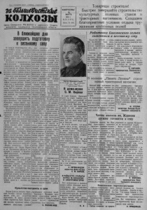I¡ р о л етарии всех стран, соединяйте* '»'. эеШше&ис/панке колхозы Орган С е в е р н о г о Р К В К П ( б ) и р а й о н н о г о С о в е т а д е п у т а т о в т р у д я щ и х с я Н о в о с и б и р с к о й о б л а с т и Товарищи строители! Быстрее завершайте строительство культурных полевых станов и тракторных вагончиков. Создадим благоприятные условия отдыха т р у женикам колхозных полей! ВОСКРЕСЕНЬЕ 25 МАРТА 19Ы г Д0 25 (1 322) Цена 1Ь коп. В ближайшие дни завершить подготовку к весеннему севу IV пленум Новосибирского обкома ВКП(б) осязал партийные и советские органы обеспечить завершение комплексной подготовки к весепиему севу в каждом колхозе нашей области к 1 апреля. Включаясь в предмайское социалистическое соревнование, поддерживал вызов колхозппков сельхозартели им. Карла Маркса по подготовке к весеннему севу, колхозы нашего района повысили темпы подготовительных работ. Большую долю весенних полевых работ в нынешнем году будут производить машинно-трак- торные станции района. Ремонт трактиров и прицепных орудий и обоих МТС закопчен. Обеспечены МТС и горючим. По ощущается недостаток мехапизатор- ских кадров. Отдельные правления колхозов не посылают на подготовку и переподготовку трактористов и прицепщиков. Во время весеннего сева недостаток обученных кадров явится тормозом в своевременном выполнении производственных заданий. Неудовлетворительно проходит в колхозах ремонт рочвообраба- тывающих орудий, сбруи и транспортных средств. В колхозах «Победитель» и им. 7-го съезда Советов ремонт сельхозинвептаря выполнен немногим больше чем на 50 процентов. До начала весенних полевых работ остались считанные дни, а некоторые председатели колхозов совсем не занимаются вопросом сбора местных удобрений. Мало вы- везе.чо нав оза на поля, недостаточно собрано золы для подкормки озимых посевов. Недооценивают значение минеральных удобрений. Всего несколько колхозов— «Вторая пятилетка», «Путь к коммунизму» им -Карла Маркса и им. Ворошилова оформили по- лучеоне и выехали в Барабин- ский сельхозспаб за минеральными удобрениями. Получение высокого урожая на полях колхозов нашего района—главная задача, которой необходимо уделить наибольшее внимание. Этой задаче надо подчинить все возможности Колхозники, в тесном содружестве с агрономами, должны обеспечить достойную встречу весне и провести полевые работы на весеннем севе в лучшие агротехнические сроки и с высоким к а чеством. Для успешного проведения весенних полевых работ необходимо создать культурные бытовые условия для работающих в ноле механизаторов и колхозников. В каждой тракторной бригаде иметь благоустроенный вагончик, для колхозников—культ \ [■ныи полевой стан. Райком ВЕН(б) и рай исполком в своем постановлении обязали заведующих отделами сельского хозяйства т. Блохина, колхозного строительства тов Мансурова и всех председателей колхозов вашего района организовать строительство тиаовых передвижных тракторных вагончиков и полевых станов. Однако темпы строительства культстапов и тракторных вагончиков весьма неудовлетворительные. Только в трех-четырех колхозах—им. Карла Маркса, «Память Ленина», им. Жданова начинают развертываться работы по строительству. Но работа тормозится из-за отсутствия гвоздей. Магазины сельпо не имсеют в продаже такого необходимого товара, как гвоздя.Правления кол