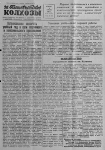 Пролетарии вс е х стран, соединяйтесь! зеШте&истя&е КОЛ ХО ЗЫ О р г а н С е в е р н о г о Р К В К П ( б ) и р а й о н н о г о С о в е т а д е п у т а т о в т р у д я щ и х с я Н о в о с и б и р с к о й о б л а с т и Организованно закончить учебный год в сети патрийного и комсомольского просвще ния У ч е б н ы й год в сети п а р т и й н о г о и к ом сомольского просвещ е н и я приближается к к о н ц у . С 15 апреля в к р у ж к а х и п о л и т ш к о л а х н а ч н у т с я итоговые з а н я т и я , а с к о м м у н и с т а м и , с а м о с тоятельно и з у ч а ю щ и м и — з а к л ю ч и те л ь ны е беседы. П ом н я у к а з а н и я великого С т а л и н а о том, что па р т и й н ая п р о па га нд а я в л я е т с я о чен ь в а ж ной и о чен ь ответственной областью пар т и й н ой р а б о т ы — п а р т и й н ы е о р г а н и з а ц и и на ш е го р а й она проделали большую работу по у л у ч ш е н и ю р у к о во дст в а сетью партийного и комсомольского просвещ е ни я . В о м н о г и х п а р т и й н ы х о р г а н и з а ц и я х у с п е ш н о з а к а н ч и вается у ч е б ны й год полным в ы полнением у че б но г о п л а н а с х о рошим усвоением и з у ч е н н о г о м а териала. Т а к , к р у ж о к по и з у ч е н и ю « К р а т к о г о к у р с а и ст ории В К П (б )> , первого года обучения , при И ов о -Тро и ц ко й т ерриториаль ной п а р т и й н о й о р г а н и з а ц и и ( с е к - ретарь тов. Таров, пр опа гандист тов. М у х и н а ) з а ко в чи л и и з у ч е ние семи г л а в и с е й ч а с повто ряют и з у ч е н н ы й м а т е р иа л , г о т о в я с ь к ито говым з а н я т и я м . З а к а н ч и в а ю т п р о гр а м м у к р у ж к и по и з у ч е н и ю « К р а т к о г о к у р с а истории В К П ( б ) » н р и О с т а н и н - скоп т ерриториальной п а рти йн ой о р г а н и з а ц и и ,где с е к р е т а р ь т . К и ри ллов, он же пр о п а га н д и с т , и при п а р т о р г а н и з а ц и и р а й п о т р е б с о ю з а — се кр е тар ь т. Поджуна с. Б л и з к и к з а в е р ш е н и ю у ч е б н о го года и ведут у с и л е н н у ю подг о т о в к у к и то г о вы м з а н я т и я м к р у ж к и по и з у ч е н и ю « К р а т ко г о к у р с а и с т о р и и В К П ( б ) » при Ф е доровской территориальной п а р т о р г а н и з а ц и и ('секретарь т. К а л м ы к о в , пр о па га нд и ст т . И о х л е - б и н а ) , при па рти йн ой о р г а н и з а ции Северной средней ш к о л ы ( с е кр е т ар ь т , П и н ч у к о в а , п р о п а г а н д и с т т. М а е в с к и й ) . П о л и т ш к о л ы при Ч у в а ш и н с к о й т е р р и т о ри ал ь н ой п а р т о р г а н и з а ц и и , к о л хоза «Бо рь б а ' з а м и р » . У с и л е н но г о т о в я т с я к и т о г о в ы м з а н я т и я м и комсомольские п о л и т к р у ж к и по и з у ч е н и ю к р а т к о й биографии II. В. С т а л и н а . Однако та кое положение не во в с е х п а р т и й н ы х и комсомольс к и х о р г а н и з а ц и я х . В п о л и т ш к о л а х при Прибелинской т е рр и то ри а л ь н о й партийной ор ган и з ации ( с е к р е т а р ь т. М и х а й л о в , п р о п а г а н д и с т т. А н а н ь е в ) и при п а р т ор г ан и з ац и и З а г о т з е р н о ( п р о п а г а н д и с т т. Н о р к и н ) вы полнили всего л и ш ь по л о ви ну пр о граммы . А в к р у ж к а х по и з у ч е н и ю биографии И . В . С т а л и н а при п а р т и й н о й ор ган и з ации к о л х о з а « 0 б - щ и й труд» ( с е к р е т а р ь т. В е р е т е н н и к о в , он же п р о п а г а н д и с т ) и при к ом сом о л ь ск ой о р г ан и з ации колхо за им. К а г а н о в и ч а ( п р о п а г а н д и с т т. Б л о х и н а ) не и з уч и л и и полови ны программного м а те риала. Т о в а р и щ и Вере те нников и Блохина потеряли ч ув с т во о т ветственности за порученное им почетное дело. Надо н а с т о й ч и в о добивать ся , чтобы про грамма з а н я т и й 