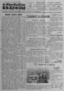 Пролетари и всех стран, соединяйтесь! шШтеШтг&е КОЛХОЗЫ Орг ан С е в е р н о г о Р К В К П ( б ) и р а й о н н о г о С о в е т а д е п у т а т о в т р у д я щ и х с я Н о в о с и б и р с к о й о б л е с т и бюджет нашего райоан Ч Е Т В Е Р Г . 26 АП Р ЕЛ Я 1951 г . Л5 34 (1331) Цена 15 коп. Т р у д я щ и е с я С е в е р н о ю р а й о н а ! Б орит есь за досрочное выполнение районного бюджета в 1951 го д у ! Своевременно рассчитывайтесь по обязательным финансовым плат тежам! На днях 3-я сессия районного Совета депутатов трудящихся рассмотрела и утвердила государственный районный бюджет на 1951 год и итоги исполнения бюджета за 1950 год. В цифрах бюджета выражена мудрая политика коммунистической партии и Советского правительства. Бюджет нашего района призван обеспечить новый мощный подъем социалистической экономики, еще более повысить культуру и благосостояние трудящихся. ^ Общий объем государственног о районного бюджета в этом году составит по доходам 5322 тысячи рублей и по расходам 5322 тысячи рублей, в том числе бюджеты сельских Со- Еетсв составят доходную часть 1241 тысячу рублей. Бюджетом предусмотрено двести шестнадцать тысяч рублей на проведение культурно-просветительной работы. Это даст возможность еще полнее удовлетворить культурные запросы населения. Забота о повышении благосостояния и культурного уровня трудящихся, является в нашей стране делом первостепенной государственной важности. «Мы хотим, — говорил товарищ —Сталин на XVIII съезде парт и и , — сделать всех рабочих и всех крестьян культурными и образованными, и мы сделаем это со временем». Указания товарища Сталина успешно претворяются в жизнь, это видно из того,что только по нашему району сеть школ непрерывно увеличивается. На 1951 год предусмотрено средств на народное образование 2984 тысячи рублей,, или на 56 процентов к общему районному бюджету. Для подъема сельского хозяйства и развития социалистического животноводства предусмотрены ассигнования по бюджету на текущий год 842 тысячи рублей. Это даст возможность специалистам полеводства и животноводства добиться наилучших результатов на полях и фермах колхозов. В 1950 году отлично справились с выполнением сельского бюджета ряд сельских Советов нашего района. Например, Би азинский сельсовет (председатель т. Абрамов, налоговой агент т. Боровский, председатель финансово -бюджетной комиссии т. Свиренков) выполнил доходную часть бюджета на 109 процентов. Чувашивский сельсовет (председатель т. Васильев, налоговой агент т. Голубева, председатель финансово-бюджетной комиссии т. Васильев) доходную часть бюджета выполнил на 103 процен та. Председатели этих сельсо вётов хорошо справились с финансированием на социально культурные мероприятия и другим расходам, систематически выполняют планы мобилизации денежных средств. Однако, наряду с этим, в нашем районе по мобилизации денежных средств не все благополучно. Райисполком и рай- финотдел еще не добились полной ликвидации недоимок по обязательным платежам с населения, в частности, по сельскохозяйственному налогу и налогу на холостяков, одиноких и малосемейных граждан. Особенно недостаточно занимаются устранением этого пробела такие сельские Советы, как Ново-Троицкий. Больше-Куликовский, Остяцкий. Это говорит о плохой работе налоговых тов и председателей указанных сельсоветов но сбору государственных платежей с населени