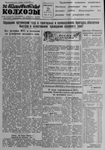 Пр олет ар и и вс ех ст ран , соединяйтесь! ?аЩте$исМШ& К О Л Х О ЗЫ Орган Северного РК ВКП(б) и районного Сове та депутатов трудящихся Новосибирской области ВОСКРЕСЕНЬЕ 13 МАЯ 1951 г . №38 (1335) Цена 15 коп. Труженики сельского х о зя й ст в а ! Настали решающие дни весенних полевых работ. Используйте все резервы для у ск ор ен ия сева. Орбзацово организуею труд в тракторных и полеводческих бригадах, обеспечим быстрое и качественное проведение весеннего сев!а Все резервы МТС и колхозов на ускорение весеннего сева В этом году колхозы нашего н н м к р и и и а о й я я е ж о н н е с о в г а р с е о т о с р я е к а м в н и с н и . п е л о М г у л у о ч а с а шш п га е и и с юш н е е т н в н а о а о г г - в о т р с и р е о а м т .п з к е и р а т х в о о н в е р и е р н в ч д ш ы е о е з с е е с с ю т т т в ан о ц в и к и о д л в х е о о б с з с м о л в е у . н ж ы Т и . р в а а С к ю р т е т о д р и ы б т о р р л а а ь б к ш о т и т о а н р л н п и е ы с р х т е и б ч о б е й р с и н к г у о а ю е д с р о а р р б а е о з в т в н у е о р в н т а у р н т а и о к е то з р а с о о в б ц , е и з с а а экономию горючего, за высокое качество пахоты и сева. Образцы самоотверженного труда показывают тракторные б н л р о о и в в а г а а , д Т ы ар К т т о а т н с . д с р к К а о т у й е л н ь к М п о и Т н С и а и Ци и т р т у . Р к о Ш и м н и а а Северной МТС. К 10 мая эти бригады выполнили договоры МТС с колхозами. Отдельные трактористы из той и другой МТС хорошо работают, выполняя н и н и яя я п Л , е ю в р э е б и к в о с о ы в п н н р п о о а м о в л я н н о т я с р я т г у и о д р с я ю м т с е в ч с н я е о е н и ы н м и е а аш со з и п а х н о д р ы л а а я . х п в а а х л а ь р щ и ики на и жи се в я о л м ьщ т и яг к л и е . , Л б у о ч р ш он и о е из них занесены на Доску почета. Но как бы ни были велики успехи отдельных тракторных бригад и пахарей на лошадях и б ро ы в к а а ть х, т о е ни н не е д м ос о т г а у т т ки, ко к м о п т е о н р с ы и е имеются еще в ряде тракторных и полеводческих бригад. м ющ и Р и у а м с с л и п о с о в я л и а о я г т м а и я у , сл в н о с и в е ч и е м й м ин тр е н о е а б к х т о о о т д р л и н и м ы ч ы а х бригда тт. Кульпина и Романова, Шилова, Кондратенко и Цыру- к т х а о и ю з н а т а х , т « р п Н а о к о т в п о а р р я е н ж ы ж н е е и м з о н у тр ь» я п д , л ы о б х р о в иг р к ад а ол б ир о т д . ир Ан т и . л Н ин и , ко и л м ае . в М и ол и о м от . ва, Ж б д р а и но га в а Тартасской МТС. И тракторный отряд № 9 Северной МТС. Трактористы тт.Гриц Л.и Дов- в гу ы л х ев р И а . бо с т пер с в и ы ст х ем д а н т е и й ческ п и ол н е е выполняют норму. Тов. Гриц на тракторе СХТЗ при норме 8,40 гектара едва вспахивает по 2,70 г р е и к з т у а е р т а. лю Т д а е к й ая ,ка р к аб н о е та же х л а а р ю а щ кт и е х использовать технику па всю н м и о е щн в о е с с т е ь н , не т г о о рмоз се я в щ а их в пр л ов у е ч д ш е и е агротехнические сроки. Плохо проводят работы на в з е ы сен р н а е й м она с . ев В е о к т о д л е х л о ь з н е ы и е м к . о Ж лх д о а т н о о в в л а ен и н м о е й лось зе н м а ли 10 П О мая гек п т о а д р г о о в посеял же колхоз только 46 гектаров или 16 процентов плана. Почти также обстоит дело т в вс ор п к о о а м ш лх к о и и з з е п 2 о 0 с и 7 е м я . но г М е т к о о т л а л о р т ьк о о в о ва, 72 в в е и с к н л о о и 15 процентов к плану. Отстают колхозы ный факел « » П , обе и д м и . те М ль . », Гор « ь К к р о а г с о , в в ы а по от лни 1 в 2 ш д и о е 16 пла п н ро в ц е . с К е р н о н м е е го то се г о, в этих же колхозах,и в колхозах «Новая жизнь», им. Тельмана, т к « и о Б я в о а р п ь с о б л а у аб хо о з д а у пр м з о а 
