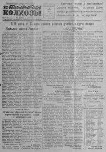 Пролетарии всех стран, соединяйте св! заШтеРиешКке КОЛХОЗЫ О р г а н С е в е р н о г о Р К В К П ( б ) и р а й о н н о г о С о в е т а ___д е п у т а ' т Н о в о с и б и р с к о й о б л а с т и Е О З К Р Е С Е Н Ь Е ИЮ 3 НЯ 19ё1 г . & 44 (1341) Дева 15 коп. Сдатчики молока и заготовители! Сделеам месячник усиленной сдачи молокарешающим в выполнении наших обязательств перед государством! 0 10 июня по 10 июля прицеп активное участие в сдаче шока Больше масла Родине Трудящиеся нашего района вместе со всем советским д л о и м св кр о е й пк тр о уд п о о в т о р й уди в ли кл сь ад и в в н н а д е р е с о л о выполнения пятилетиего плана. С ря е ч й и ч м ас в с е т с р ь ем н л а е р н о и д ем охва д ч о е с н роч г н о о выполнить ные партией и зада п чи ра , ви п т о е с л т ь а с в т л в е о н м на 1951 год. Грандиозное строительство, развернутое- в нашей стране, т п р р е я б ж у е е н т но о го т с т о р в у е д т а ск н и а х в л се ю х де у н ча н ст а - ^ к ч н а е и х с к к о о в р г а о б го о р т о ы с д о . а рев П н л п о а в м д а я н ер и с е я о в ц н и и ал т р и р а с у з т ж г и о е в т р и ы ае з е м тс а о я . бр в аз с ц ё ы яр с ч о е вет и ск д ог аё о т п в а с т е ри н о о Колхозники сельхозартелей им. Карла Маркса,«Память Ленина», им. Ворошилова и «Общий труд» проявили инициативу и обратились с призывом ко всем к в б о е о с ч л т х и и м озн с и ик с а л м уж и ащ к и о м лхо р з а н й и о ц н а а м, п р р а о 10 июня по 10 июля м ло е к ся а чни г к осуд у а с р и с л т е в н у н . ой К с о д л а х ч о и зни м к о и этих сельхозартелей призывают в течение месячника сдать не менее 30 процентов годового плана поставок молока. Исполнительный комитет Се- ^ верного районного путатов трудящихся Сов и ета б д ю е р о р д ц а и ен й а и к т и о и м в а у к В м о К л е И с х я ( о б ч з ) н н и и к к о а о в добр о и ус л и п и л р е и н о н н в и о е й д с х д а о т а з е ч о л и в е , й м с о с л е е л о к ь к р с е а к т и а и х р о е б й я С з о а в л е и т п о е в р п , в р и е ч д к н с о ы е л х п р га а а н н р и т и з и я а й ц н и ы й х ко и л п х р о к о з о в н м е и с с к о ти о м в ол о ь б с щ и к и и е х сх с о о о р д б ы г р м р а е а щщ ж е е д н н а о и н е , , в на к на о н ш то и е р х о й е о р б с а е су й г д о он д ит н н ь о я й п г о о а б зете, и включиться в месячник усиленных заготовок молока государству ■ каждым колхозом, каждым индивидуальным зяйством. н в и ер з Д а и о ц т и ь ю 10 во л и а в ю г с е н е р х н я о к г 1 о о 4 л 5 х 1 о с з о а д г х е о р д ж а о ан р п х и г р о я а о скота на выпасах, выявленные н н е и д т Д о ь с л . т я ат у к в и ели н ч е е м н е и д я ле п нн ро о дук у ти ст в р н а о с к н т о и р и з м о с к а к в у т о ь та в , к в о ор ж в о с а в е р х ко с к е в о о л ж в х р е о е с з м к а о х я ш , е о ш р п г ю о а д й травой. Пастьбу производить круглые сутки и доить коров 3 раза в день. Райисполком и бюроРК ВКП(бД о в б е я т з о ы в, ва с ю е т кр п ет р а ед р с е е й дате п л а е р й ти с й е н л ы ьс х о и в к е о р м н с у о т м ь ольск м и а х ссо о в р о г - а р н а и з з ъ а я ц с и и й ит р ел аз ь - пую работу среди населения за участие в провееднии месячника, з д к у а о а п л о д ь с о н т с а ы р в о м о ч к и но с е д к а о т в л ч ы и хо К п з & о а л М м н и и е . ни и е инд м и о в л и о Поддерживая инициативу ' по проведению месячника полком н райкам ’ В ра К й П ис ( б) со своей стороны призывают всех молокосдатчмков ’ района принять активное участие в э н т о ом о п т а н т е р с и т о и т с и ь че к ском общ де е л с е т , вен ч н е о с м т у долгу я в н ы ик х а п 3 ос 0 тав п о р с к о д ц а м е т н о ь л т о о за к в а п п г 