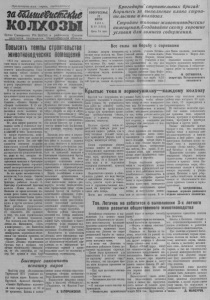 П ролет арии вс ех с т р а н, соединяйтесь! заШбше&истсние КОЛХОЗЫ Орган С еверного Р К ВКП (б ) и районного С о ве та депутатов трудящихся Новосибирской области Повысить тейпы строеилт сьтва животноводческих помщееинй 1951 год является решающим годом в выполнении трехлетнего плана развития общественного животноводства. Главная задача сейчас состоит в том, чтобы в текущем году обеспечить выполнение, каждым колхозом, задания но развитию и росту продуктивных животных и птицы. В социалистическом соревновании за досрочное выполнение трехлетнего плана хороших успехов добились колхозы «Путь Сталина», <Память Кирова» и «Вторая пятилетка». К 15 июня в этих сельхозартелях план поголовья скота выполпен по В фермам. Сейчас колхозы принимают серьезные меры но разведению птицы. Но, если вопрос развития поголовья скота и отдельных колхозах стоит в центре внимания правлений и всех колхозников, то вопрос строительства помещений для скота еще далеко не на первом месте. Все еще мало уделяется внимания созданию нормальных условий содержания животных. Строительные бригады недостаточно укомплектованы, но, даже из тех, которые недоукомплектован!^ зачастую, правления колхозов и бригадиры полеводческих бригад отрывают людей на второстепенные работы, не связанные со строительством. За все время весеннего сева в колхозе им.7-го съезда Советов из 10 человек, членов строй- бригады, работало только 3. Бригадир строительной бригады колхоза «Новая жизнь» тов. Пашалов во время весенних нолевых работ также не занимался строительством.Члены бригады были отозваны на вывозку зерна и другие посевные работы. Мало работали строительные бригады колхозов Ирибелинско- го сельсовета. Это приводит к тому, что план строительных работ в колхозах срывается. Ряд колхозов,как«Вторая пятилетка»,им. Кагановича, «Путь к коммунизму», им. Калинина и другие начали строительство свинарников, коровников,телятников без типовых проектов, по старым образцам. В колхозе «Память Ленина» строительная бригада еще в прошлом году начала строительство свинарника, но эта постройка, до сих пор, без крыши и пола. Сруб портится. Свиньи находятся в неблагоустроенном помещении. Правление колхоза не проявляет должного беспокойства о завер- шеоии начатого строительства. Между тем, в колхозе изготовляется хороший кровельный материал—финская стружка. Но в дело его еще не используют. Построена кузница тоже без типового проекта. Правления колхозов мало проявляют заботы об организации подсобных предприятий, хотя к этому есть все возможности. Правильно поступили колхозники сельхозартелей «Красный Октябрь», «Борьба за мир» и «Путь Сталина», организовали у себя производство кирпича. Остальные артели не думают о дополнительном доходе колхозу, но у них с }спехом можно было бы изготовлять финскую стружку, черепинуБольшая доля вины в неудовлетворительном ходе строительных работ в колхозах ложится на отдел сельского и колхозного строительства райисполкома (зав. отделом Мансуров). Мало он требует от правлений колхозов и бригадиров строительных бригад выполнения планов. Не контролирует выполнение взятых обязательств в социалистическом соревновании строителей редко бывает, п а местах строительста. Перед партийными и комсомольскими организациями и правлениями колхозов сейчас стоит неотложная з