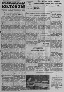 П р о л ет а р и и всех стран , соединяйт есь! ыШтевистШ а КОЛХОЗЫ Орган С е в е р н о г о Р К В К П ( б ) и р а й о н н о г о С о в е т а д е п у т а т о в т р у д я щ и х с я Н о в о с и б и р с к о й о б л а с т и Выполнить постановление V пленума Обкома В К П ( б ) Р а йон ны й п а р т и й н ы й а к т и в 18 и ю н я заслушал доклад с е к ре та ря Р К В К П ( б ) тов. Коробейн и к о в а «Об и то г а х V п л е н ум а обкома ВЕС ( б ) » . К о м м у н и с т ы п р и н я л и а к ти вн ое у ч а с ти е в обсуж д е н и и доклада. В п р е н и я х в ы щ и п л и 17 человек. Народный судья тов. Х а - р у з и в а подвергла к р и т и к е о т дельны х р у к о в о д я щ и х рабо тн и к о в , плохо ра бо таю щ и х над по выш е н и е м своего и д е й н о - п о л и т и ч е с к о г о у р о в пя . «Товарищ С тал и н у ч и т н а с , — г о в ор и т тов. Х а р у з и н а , — что м а р к с и с т с к о - л е - ~ н и н с к а я н а у к а обязательна для ^ больш евиков . Но вот к о м м у н и с т тов К у р о п о в , н а ч а л ь н и к Северной кон то ры Связи ,н е работает над п о выш ен и ем п о л и т и ч е с к о г о у р о в н я . Это приводит его к серьезным ошибкам в работе с к а д р а ми. Он д о п у с к а е т недооценку в ы д в и ж е н и я ж е н щ и н н а о т в е т ственные п о с т ы , не считается с предложениями к о л л е к т и в а » . — К р у ж о к по и з у ч е н и ю « К р а т к о г о к у р с а » истории В К П ( б ) , — сказал тов. Иванов, се кр е т а р ь т ерриториальной п а р т о р г а н и з а ц и и Б и а зи н ско го сельсовета, — полностью з а к о н ч и л п р о г р а м м у , но к р у ж о к п о в ы ш е н н о го т и п а , под руководством в н е ш т а т н о г о п р о п а г а н д и с т а т о в . П у т и н а , работал неудовлетворительно. В к р у ж к а х и п о л и т ш к о л а х н е х в а - тало у ч е б н ы х пособий. Я много раз обращался в отдел п р о п а га н д ы и а г и т а ц и и Р К В К П ( б ) , ч т обы приобрести л и т е р а т у р у ,н о и там не ока зал и п омощ и . Д и р е к то р Т а р та с с кой МТС тов . Я т я с рассказал о том , что к о м м у н и с т ы М ТС во время з а к о н ч и ли п р о г р а м м у в к р у ж к е по и з у ч е н и ю « К р а т ко п ф к у р с а » истории В К П ( б ) . Хорошо з ан им а л и с ь комм у ни сты шоферы Филимонов и Скоробогатов и т р а к т о р и с т к а П о здн я ко в а . Они обеспечили а в а н г а р д н у ю роль в к о л л е к т и в е . — Н а МТС правительством во з л а г а ю т с я дополнительные о б я з а н н о с т и ,— говорит далее тов.. Я т и с , — о к а з ы в а т ь помощь колхозам в строительстве ско топ ом ещ е ни й , с у ш и л о к и д р у г и х об ъе к тов . Се кретарь р а й к о м а В Л К С М тов. Больш аков говор и л о идейном росте молодежи. Председатель к о л х о з а им. 6 - г о съезда Советов тов. А г р ы з к о в говорил о з а п у щ е н н о с т и в политучебе к о м мунистов п а р т о р г а н и з а ц и и к о л х о за . Секр етари п е р в и ч н ы х п а р т и й н ы х о р г а н и з а ц и й т т . Кириллов, С м ы к и А л е ш к и н особое в н и м а ние уделили в о п р о с у обобщения передового о п ы т а п а р т и й н о й р а боты и передачи е го всем с е к ре та рям п а р т и й н ы х о р г а н и з а ц и й . В ы с т у п а ю щ и е н а собрании п а р т и й н о г о а к т и в а по деловому к р и т и к о в а л и н е д о с т а т к и в работе ра й кома п а р т и и и п е р в и ч н ы х п а р т о р г а н и з а ц и й по и д е й н о - п о л и т и ч е с к о м у в о с п и т а н и ю членов и кан д и д а т о в п а р т и и и недоста тк и по х о д у з а го тов о к кормов и с т р о ител ь с тв а для общественного п р о д у к т и в н о г о животноводства. Собрание районно го п а р т и й ного а к т и в а п риняло к н е у к л о н ному р у к о в о д с т в у и исполнению постановлени