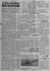 Пролетарии всех стран, соеди н я й т е с ь ! заШбгиевимсХЫ колхозы О р г а н С е в е р н о г о Р К Б К П ( б ) и р а й о н н о г о С о в е т а Д-0.г1-Ут а т о в трудящихся Новос ибирс кой области ВОСКРЕСЕНЬЕ 19 АВГУСТА 1951 г . №60 (1363) Цева 1Ь коп. Товарищи к о л х о з н и к и ! Проведем декадник с 20 по 30 августа по завершению годового плана поставок зерна государству. В с о д р у жестве с м еханизат орами завоюем почетное место в областном соревновании районов. Повысить роль сельсоветов на уборке и хлебозаготовках Проведение уборки хлеба в сжатые сроки и без потерьи д ст о в ср ен о н ч о н г о о е п в л ы а п на олн х е л н е и б е оза г г о о с т у о д в а о р к —есть яркое выражение силы и жизненности колхозного строя, выражение новых д р о и в о ы ти х зм у а спе с х о о в в етс и кого горя к ч р ег е о сть п т я а р н т у ств Б а. орьба за выполнение этой важнейшей задачи стала делом в н с ы е е го С с о о в в е е т т ы ск , ог п о ри н зв а а р н о н д ы а. е Ме в с ы т- • п к о о д во н д ят ст ь вом вол п ю а н р а т р о о р д г н ан ую иза п ци о й дру в з б п а о е г р т о и у т . о о д вок Д у , б е о п п р у р к т о и а в т о ы д у я р т ож и б а о я льш и и х ую хле р а б к а о т и в принимают активное участие в организационно-массовой работе. Л ка и ю чн т ым кол п х р оз и н м ик е о р в омв на тр б уд ор е ьб у у вле з а досрочное выполнение плана хлебозаготовок. т т а ор с с П л к р у о и ж й м и е т р р о а м б Б о о х т л о ы ь р ш о с ш е е л - е К ь й у ск л о и о г к о р о г в а С с н о к и в и з е й а сельсовет (председатель ского Совета т. Александ с р е о л в ь ) . В этом Совете все члены п н о ы лком н а а и с д ам еп ы у х таты отве з т а с к т р ве е н п н л и ы е с х п у у ч т а а с т т ы ках Ив б а о н рьбы Ива з н а ович хле П б о . по Д в е , Иван Степанович Попов, Кули- ков Федор Семенович, Степанов * Михаил Степанович в колхозе «Память Ленина» закреплены з в м а е я т т а с ь уш А К н и и д л р р к о е а в й м а и » . Ни В д к е о п л у а т к е а в о т и л ы х ч оз Е с е е г л о ь р « с и Н о н а и Егор Фомич Бакун обеспечили бесперебойную работу сушилок, доведя их производительность в два раза больше, чем з в е али хор р о а ш нь о ше р . аб В ота э ю т т ом в ж а е о к у н о б и о л р х д к о а е т го а роха З и ы л р ь я н н а о д в е а п , утаты пр се ед л с ь е с д о а в т е е ль культурно просветительной з т м у а и л т с ь о с т в и а и т к е ол С а х к о о в т з и ет вн а за о н г т я о . л уч И п а в с е о т р л и в и о я н е . д м В е е п с к р у т о е о в социалистическом нии за досрочную х с л о е р б е о в с н д о а в ч а у . Сейчас колхозники сельхозар- толи «Память Кирова» решили обратиться ко всем колхозникам района об объявлении декда ы завершения хлебопоставок. На сессиях сельских Советов л д д о е е ж л п а е у н н т н и а о т я й ы п р о о а т б ч у о л и т у т е ч ы ш в и а е ю н в и н т ю с о я сят р о п а р п б е р о д о ыт Совета. Некоторые депутаты неплохо проводят работу. Так, б б О р о р и т л а г о е а в т ды а б М р а и р в г и да я ир к о о М л м х и п о х о з а л е й е л в о о в д н ч а е « с Н ко о р й в а а я жизнь», является примером э в м н о я д е и р о т г н и е а л ч я но с г б р о р е , и ди гад з ы а с . б в о о В е т й л л и ю в б б о о р гр и е о г у в а к р д о е ы . Депутат Биазинского сельсовета ц г т а о . ть м Те в ре с в е е ь л щ к ь е о п в о , и у р с а п б е о в т к а а о я е м т сом п о р л п о ь д о с м а к в о о й бригаде в подработке зерна.Де- путаты этого же сельсовета тт. Казанцева и Копылова выпускают стенные газеты и боевые лист Н к о и , . к сожалению активная работа некотор
