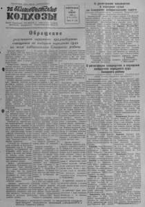 П ро лет арии всех стран, с о е д и н я й т е с ь ! затш&иОШа КОЛХОЗЫ Орган Северного РК ВКП(б) и районного Совета депутатов трудящихся Новосибирской области ВОСКРЕСЕНЬЕ 2 5 НОЯБРЯ 1 9 5 1 г . № 95 ( 1 3 9 2 ) Цепа 15 КОП. О регистрации кандидатов в народные судьи по Северному избирательному о к р у г у Решение исполнительного комитета Северного р а й онного Совета депутатов трудящихся Исполнительный комитет Се- ствуясь статьями 2 , 2 3 , 2 6 , 2 7 , 2 9 О б р а щ е н и е участников окружного предвыборного совещания по выборам народного с у д а ко всем и збират елям Северного района Товарищи избиратели! 1 6 декабря 1 9 5 1 - г о д а т р у д я щиеся РСФСР пойдут на избирательные п у н к т ы для того, чтобы выбрать в народные с у ды достойных сынов и дочерей пашей Родины. Избирательная кам п ан и я по выборам народных судов будет проходить в обстановке широко развернувшейся великой борьбы за мир во всем мире, возглав ляемой советс ким народом и г е ниальным знаменосцем мира товарищем Сталиным. Успешно выполнив послевоенн у ю п я ти л е т к у советский н а род добился огромны х успехов в деде восстановления и р а з в и т и я народного хо зяйства и к у л ь турного строительства. Осуществляя ст алинскую программу строительства коммунизма трудящиеся нашей страны с огромным воодушевлением борются за быстрейшее сооружение В е л и ких строек коммунизма, им ею щ и х большое значение в создании м атериально-т ехнической базы коммунизма. В соответствии с К о н с т и т у цией СССР народные суды б у д у т избираться сроком на три года на основе всеобщего, п р я мого и равного избирательного права при тайном голосовании. Советский суд является ор га ном социалистического государства, призванным защищать от в с я к и х посягательств общественное и государс твенное у с т р о й ство, социалистические систему хо зяйства, собственность и пра вопорядок и интересы граждан. Наш суд является важным средством к о м м у н и с т и ч е с к о г о восп и та н и я трудящ их с я . Советс кий суд кореиным образом отличается от продажного б у р ж у а з н о г о суда. В. И. Л е н и н у к а з ы в а л , что б у р ж у а з н ы й суд изображает собою защиту п о рядка, а на самом деле я в л я е т ся «слепым, то н ки м орудием беспощадного подавления э к с п л у а т и р у е м ы х , отстаивающим и нте ресы денежного м еш ка» . П р ям у ю противоположность ре акционному б у р ж у а з н о м у суду представляет собою советский суд — самый демократический суд в мире. Наш суд сл у ж и т интересам социалистического государс тва, он связан с н а р о дом и представляет его волю, вы р а ж е н н у ю в справедливых с ове тс ких законах. Советское правительство и коммунистическая п ар ти я уделяю т большое внимание делу дальнейшего укре п лен ия социалистического государс тва, советской законности , постоянно заботятся об улу чш е ни и работы судебных органов. На предстоящих выборах па- родных судов, к а к и в предыдущие избирательные к а м п а н и и , партия большевиков выступает в блоке, в союзе с б е с п ар т и йны ми рабочими, кр е с ть я н а м и , сл у ж ащ и м и , интеллигенцией. Товарищ Сталин в исторической речи 9 февраля 1 9 4 6 года следующим образом о х а р а к т е р и зовал значение блока к о м м у н и стов и б е с п ар ти йны х ! «Живя в общем коллективе ови вместе боролись за у к р е п ление могущества нашей стра ны , вместе воевали и проливали кровь па фронтах во имя свободы и величия наше