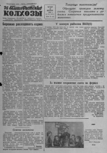 Пролетарии вс ех ст р а н , с о единяйтесь! ЪйШбшевистсХке КОЛХОЗЫ Орган Северного РК ВКП(б) и районного С о зе та депутатов трудящихся Новосибирской области Бережно расходовать корма Зимнее стойловое содержание скота—очень ответственное дело. Главное в нем—обеспечить скот равномерным, бесперебойным питанием. Нужно отказаться от мысли, что недостатки в зимнем к п о о р л м н Б и л л е т а ь г н о и п и л о е л т ж у о и ч м н в . ы от й ны и х сх м о о д жн з о им в о о в с к и скота во многом зависит от уровня руководства н п ы ра м вл ж ен и и во й тн к о о в л од хо ст з в о о в, м зо с о о о б т щ с е т х е о н с р и т о в к н е о ы н в и ветеринарных работников. С г о о зд з а а н п и а е са н к а ор ф м е о р в ма и х до п с р т а а в т и о л ч ь н н о о е л и о х ви и я споль б з л о а в го а п н о и л е у — чн о о с й новн з ы и е мо у в с к и скота. Экономное и бережное расходование фуража, л ч н и и а т в я е а л н п ь и о н ю д о го д с т а э о с к в т о к н а о в м о к з и м о т р о ь ж мо н к в о о с р к т п м ь р а с а к в и з а и н р л м а ь в т т з и ы о в н К ж н о е а с ш т с ь о е в ж г р о ж а е л м и е я в н , о и т ю н по ы , в х ы н . с е ит в ь се пр к о о д л у х к о района выполняют правила бережного и разумного расходования кормов. Далеко не во всех колхозах приступили к измельчению и запариванию кормов, к сдабриванию перед д х а о ч з е а й х: их им ж . иво М т а н к ы с м им . а Так Г , о в рь к к о о л г о з (п а ре т д о с в е . да Д т и е к л о ь в) п , ра « в Б л у е т н ь ия Ст к ал ол и х н о а » (председатель тов. Залиппа), «Борьба за мир (председатель тов. Мишин) до сего времени не выделены фуражиры. Корма не взвешиваются. Кормушки не поделаны. При даче скоту сено бросается под ноги. Ряд руководителей колхозов к н а ы к й тов О . кт О я б б у р х ь о ) в , (к т о о л в х . оз « Д К о р л а о стов (колхоз «Новый путь»), тов. А да гры С з ов ко ет в ов^ (кол п х р о а з ви и л м ь . но 6-го по с н ъ я е л з и в в в ы а ед ж х е н н о д и с н я т е ь й зи и у м с о о т т в а в к н е и о т в с с и т к л в о и е т н а но х и с о т з ь я с й п с п р к е о о р е расходование кормов, в в а а л н и и Б е о . з л а ь п ш а о р е ива з н н и ач е ен и и х е и в орг с а д с н т а и о б з й р о л и о - ловом содержании скота имете водопой. 5Кивотным необходима вода и поение их должно быть организовано в каждом колхозе строгов определенные часы ( о к с н у о н г о л д й а н с я н , о г н аз а п е п р т е и е ч м а е т р а н н о о н м т о у му 2 рас в п д о е р к р я а а д б й р я 1951 года). Раздача кормов т г а о кж п е о д ч ол а ж са н м а . пр К о о и р з м водит н ь е с о я бх с о т д р и о м о сдабривать поваренной солью из расчета: крупному рогатому с к о т у — 5 0 с ш в а и д н я ь м ям—Г п О о 1 гр 0 г а р -1 м ам 5 м м ов о , в гр в а ов м д ц е о а н м в ь, п и а ло одну голову. На каждой животноводческой ферме необходимо организовать правильное расходование кормов. Создать возможность самозапа- ш р по и е л в и ь а , з н о и с в я и ат л ь о со с к л н о о ы м р е м ы о , я з м а д п ы л а я рн и и ч к е и г я о ,т щ р и ан к и и с - б м е о с в та в рки. ко Д л л хо я за з х а , пари гд в е ани и я ме к ю ор тс я д т л о о о ч г к р н о П е м о о в о м а б и е х и щ л в е и о и н д , с ы и п я . ол с ь л д е з л о д я в у а е т с т ь к ота д к л р я у д г о л лж о п с н у ы о быть светлыми, с чистым д но ухо в м, те б ч е е з ни с е квоз 2 н — як 3 ов. ч Е а ж с е о д в н в е ж о в и з вотным надо предоставлять про гулку на чистом воздухе. Для этого около скотных дворов ж ц у и с е т н а р л Р н а у и ы и к ст в е о ы а в т о ь д п и л т о е щ с л п а и е д ц к и и к 